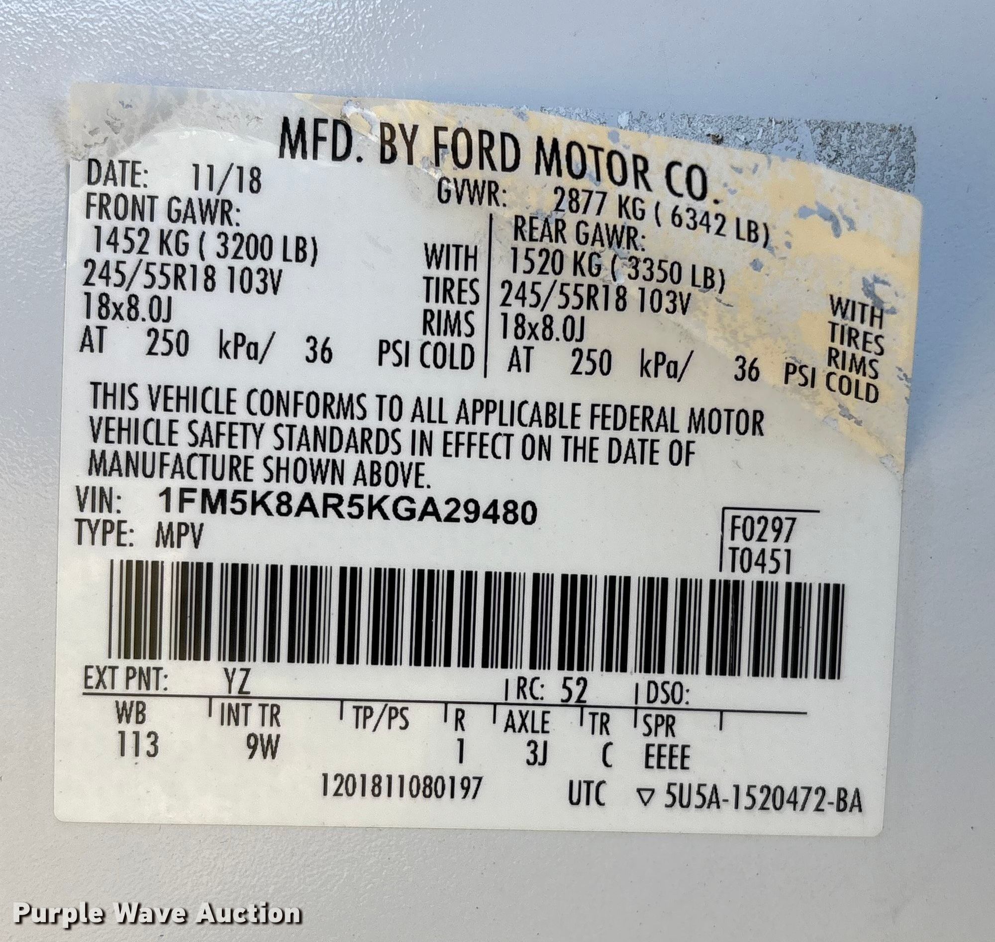 - VIN: 1FM5K8AR5KGA29480