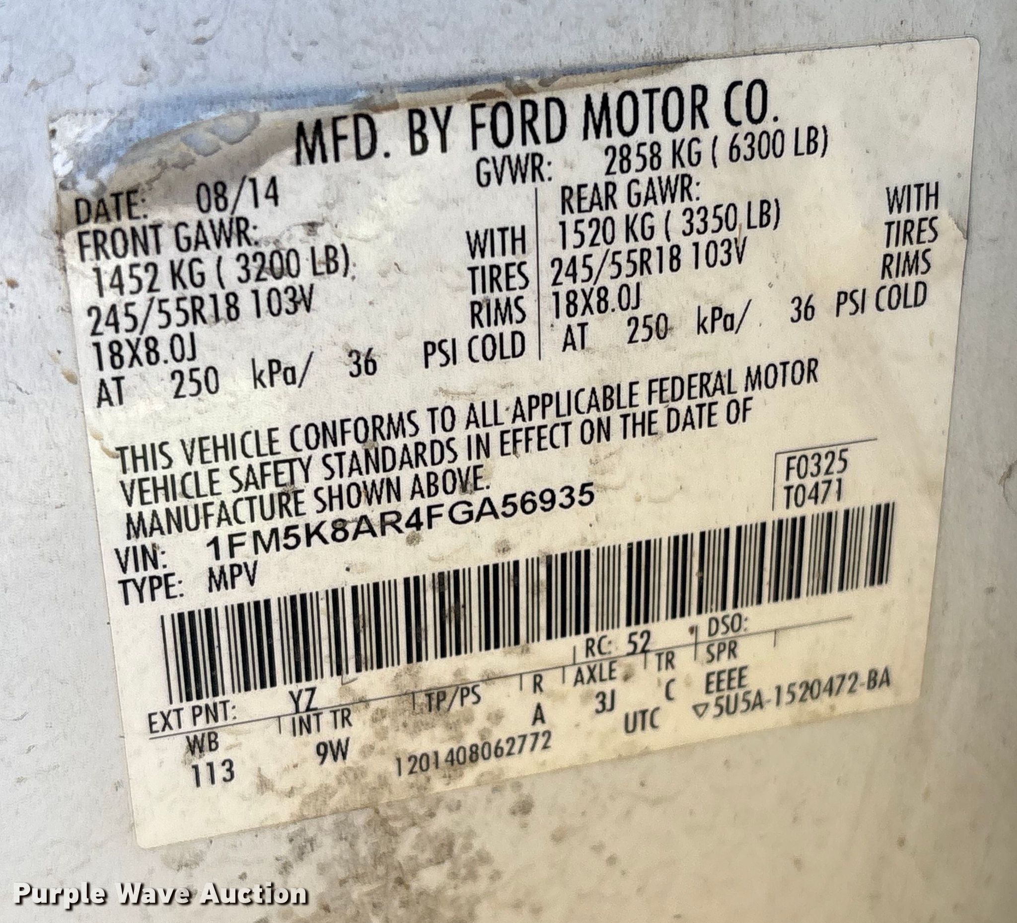 - VIN: 1FM5K8AR4FGA56935