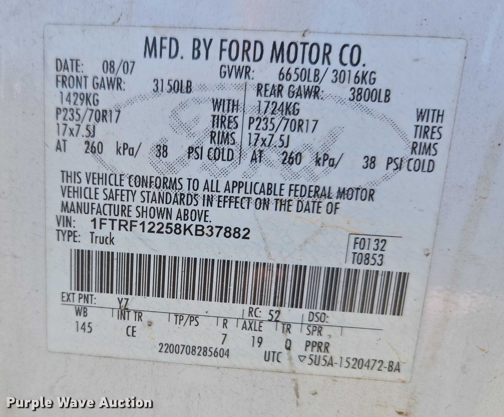 - VIN: 1FTRF12258KB37882
