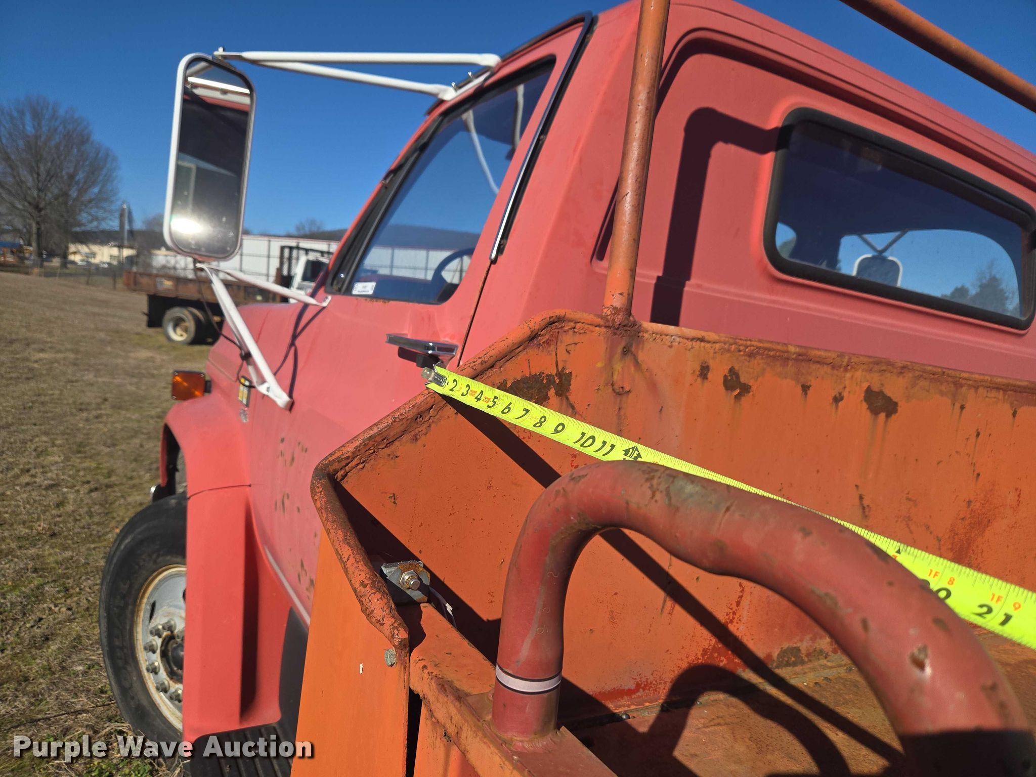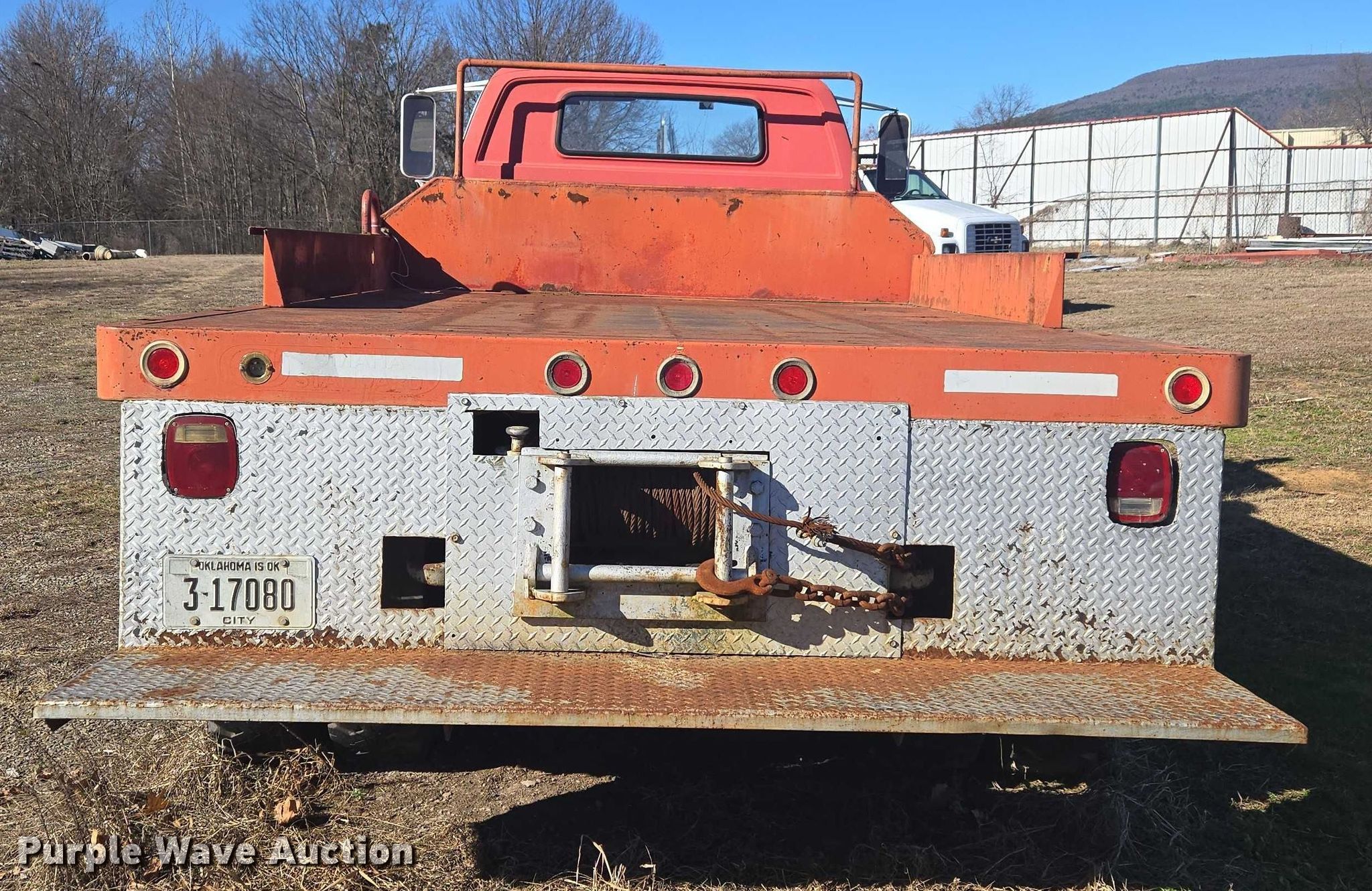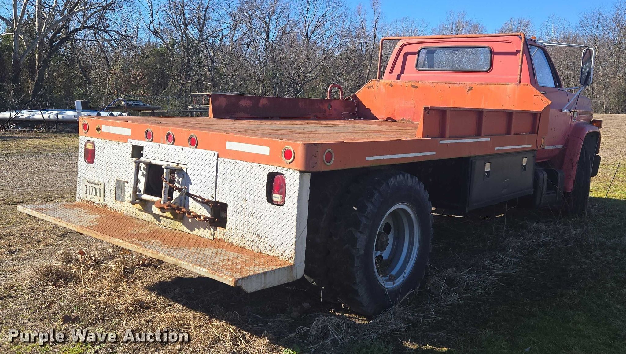 1981 Chevrolet C6 flatbed truck. Miles: 15,446 on odometer, VIN: 1GBG6D1B5BV142679. Engine GM, Displacement: 6.0L, Cylinders: 8, Fuel type: Gas. Transmission Manual, Speed: 5. Chassis Axles: Single, Suspension: Spring, Brakes: Hydraulic, PTO, GVWR: 22,000 lbs. Interior Heat. Features Bed Flatbed, Omaha Standard, Length: 13' 7", Width: 7' 5", Winch. Tires Size: 9.00-20. Notes Key not included, Rear view mirror missing, Unknown operating condition. Oklahoma title. Title distribution may be delayed up to 30 days from verification of funds. City of Poteau. Poteau, OK 74953