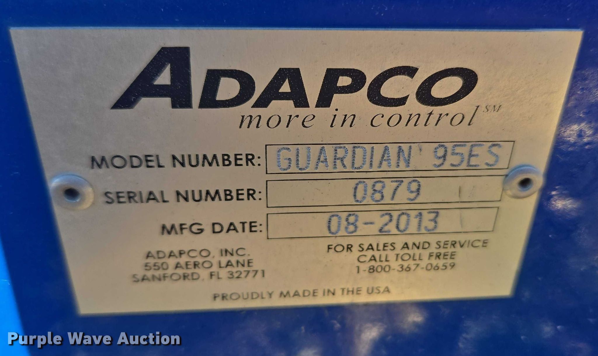 Purple Wave is selling a used Tools in Oklahoma. This item is a 2013 Adapco Guardian 95ES mosquito fogger with the following: Serial: 0879