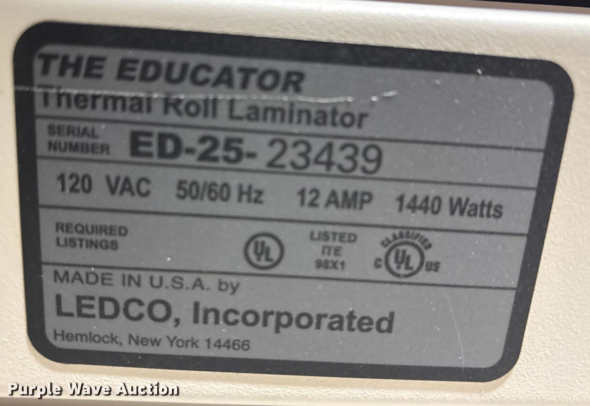 Purple Wave is selling a used Office Supplies and Equip. in Oklahoma. This item is a The Educator laminator with the following: Serial: ED-25-23439, (5) boxes of laminate