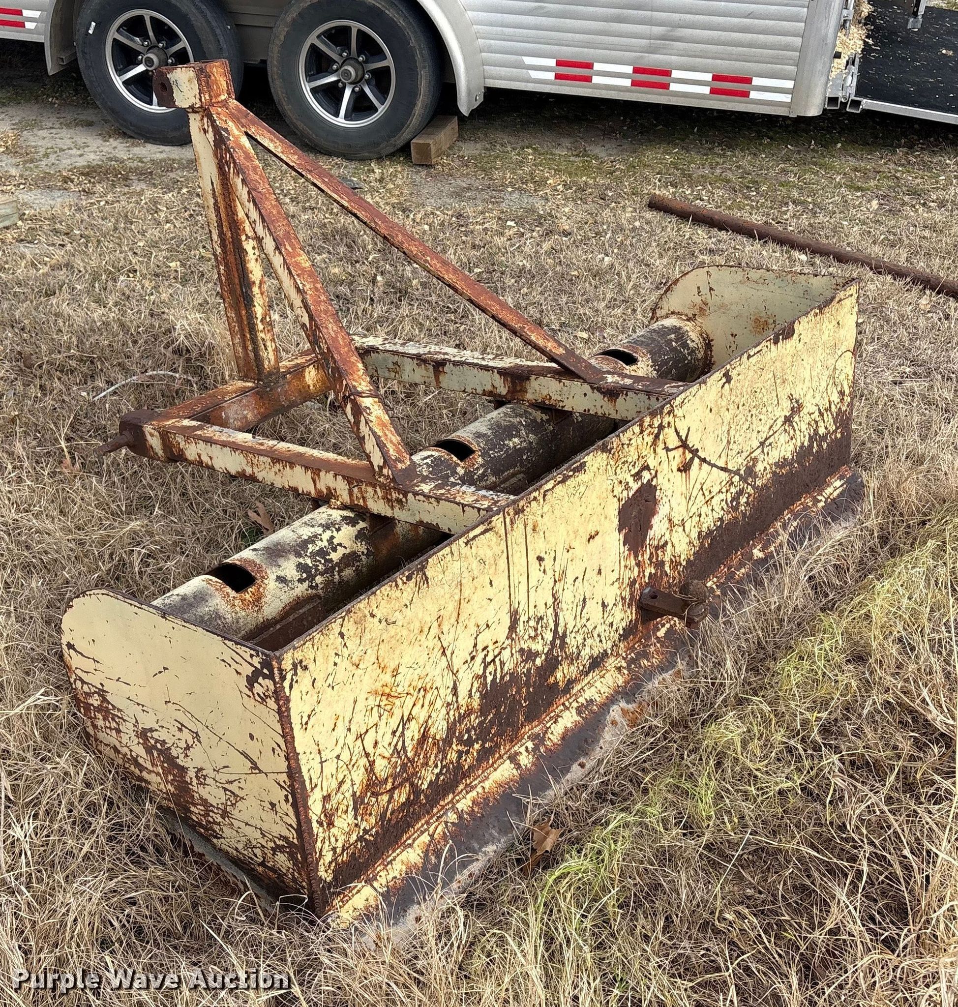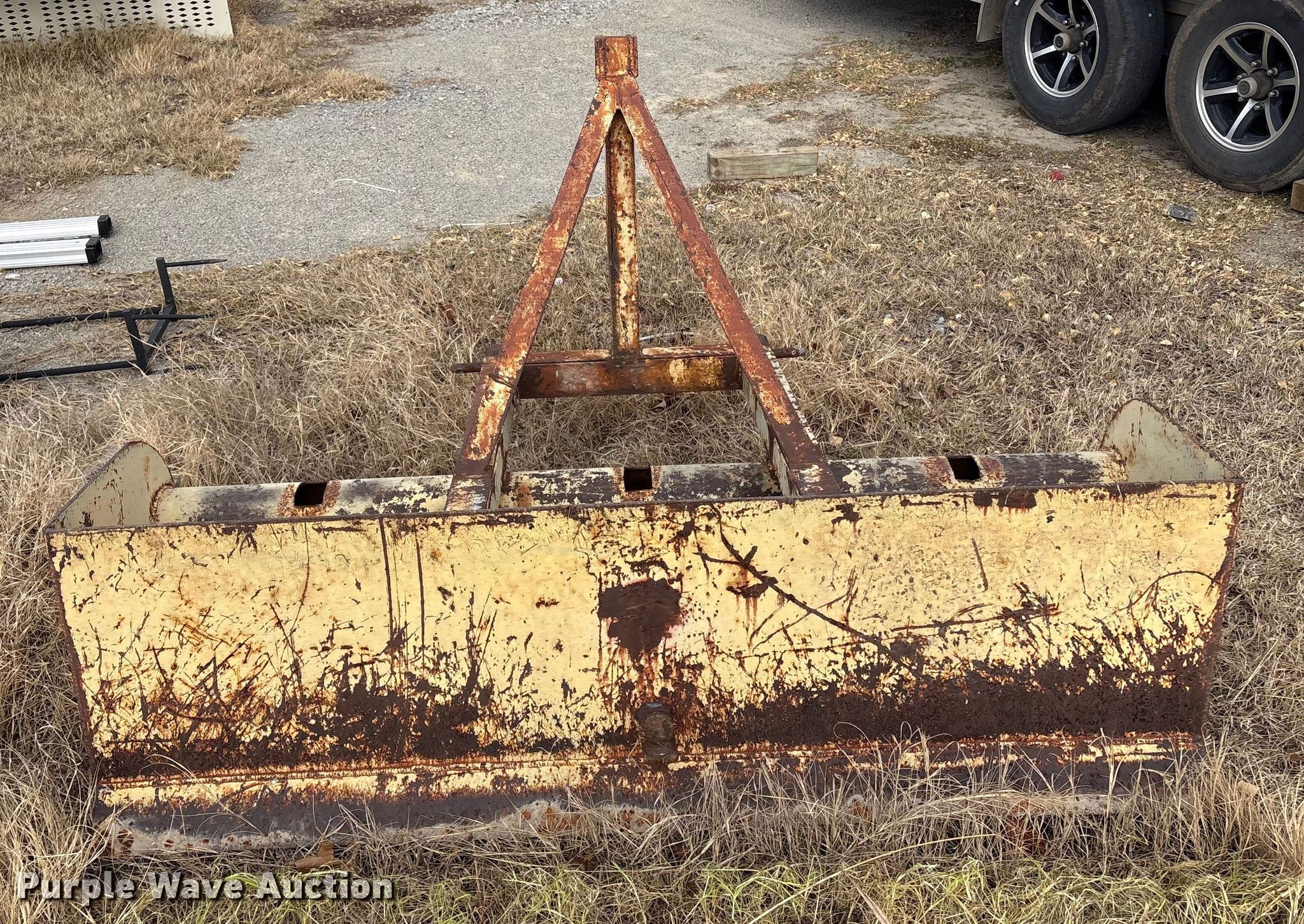 Purple Wave is selling a used Ag Tractor Loader or Attach. in Oklahoma. This item is a Three point box blade with the following: Width: 67"
