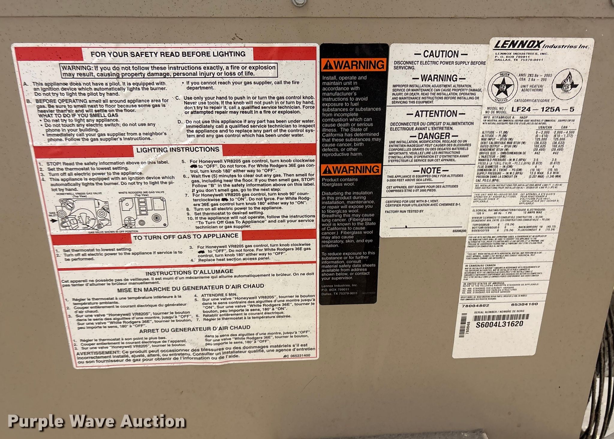 Purple Wave is selling a used Appliances in Oklahoma. This item is a (4) Lennox heaters with the following: Unknown operating condition
