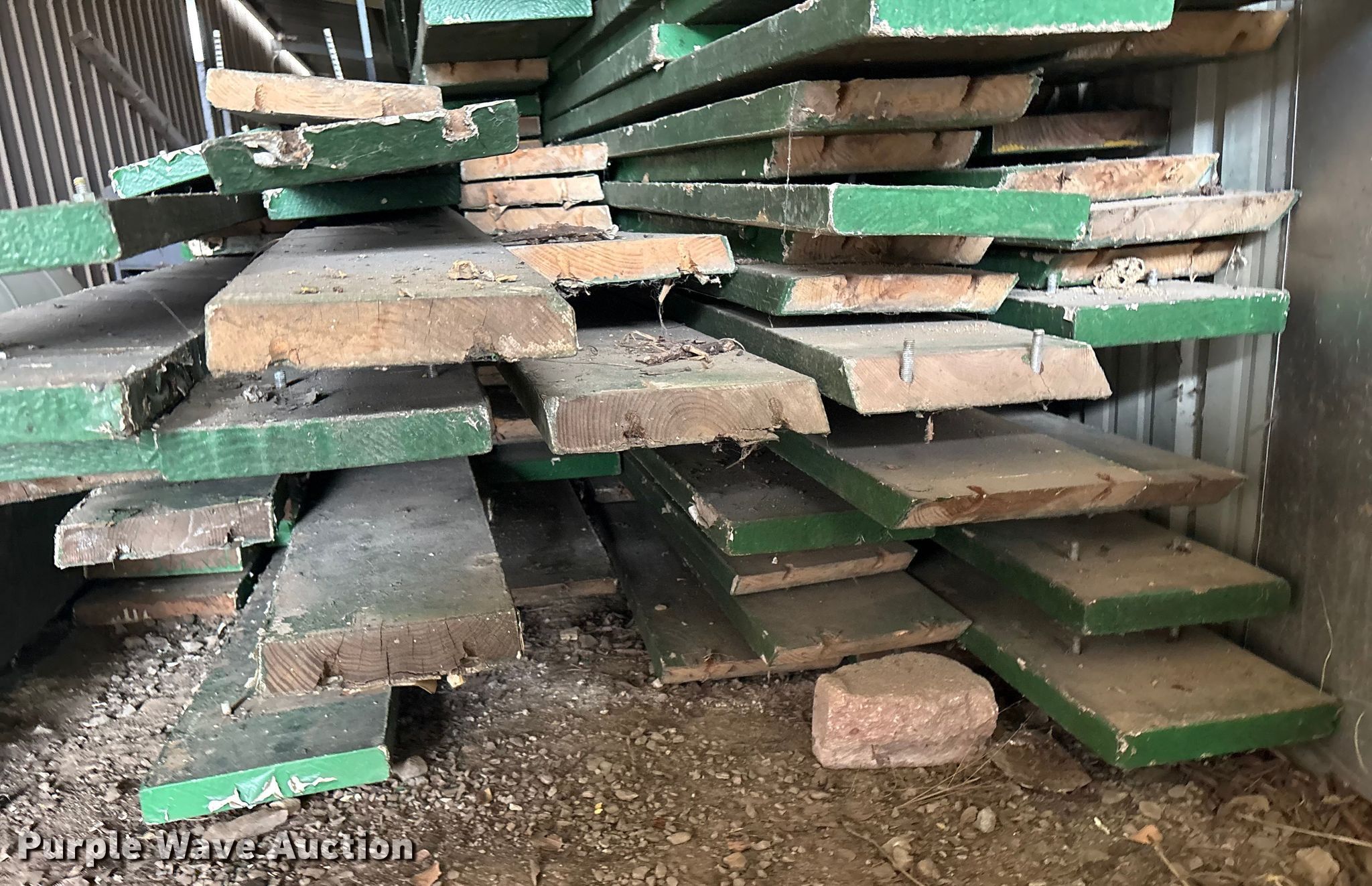 Purple Wave is selling a used Building Materials in Oklahoma. This item is a Approximately 100 bleacher boards with the following: 1.5" x 9", Lengths vary