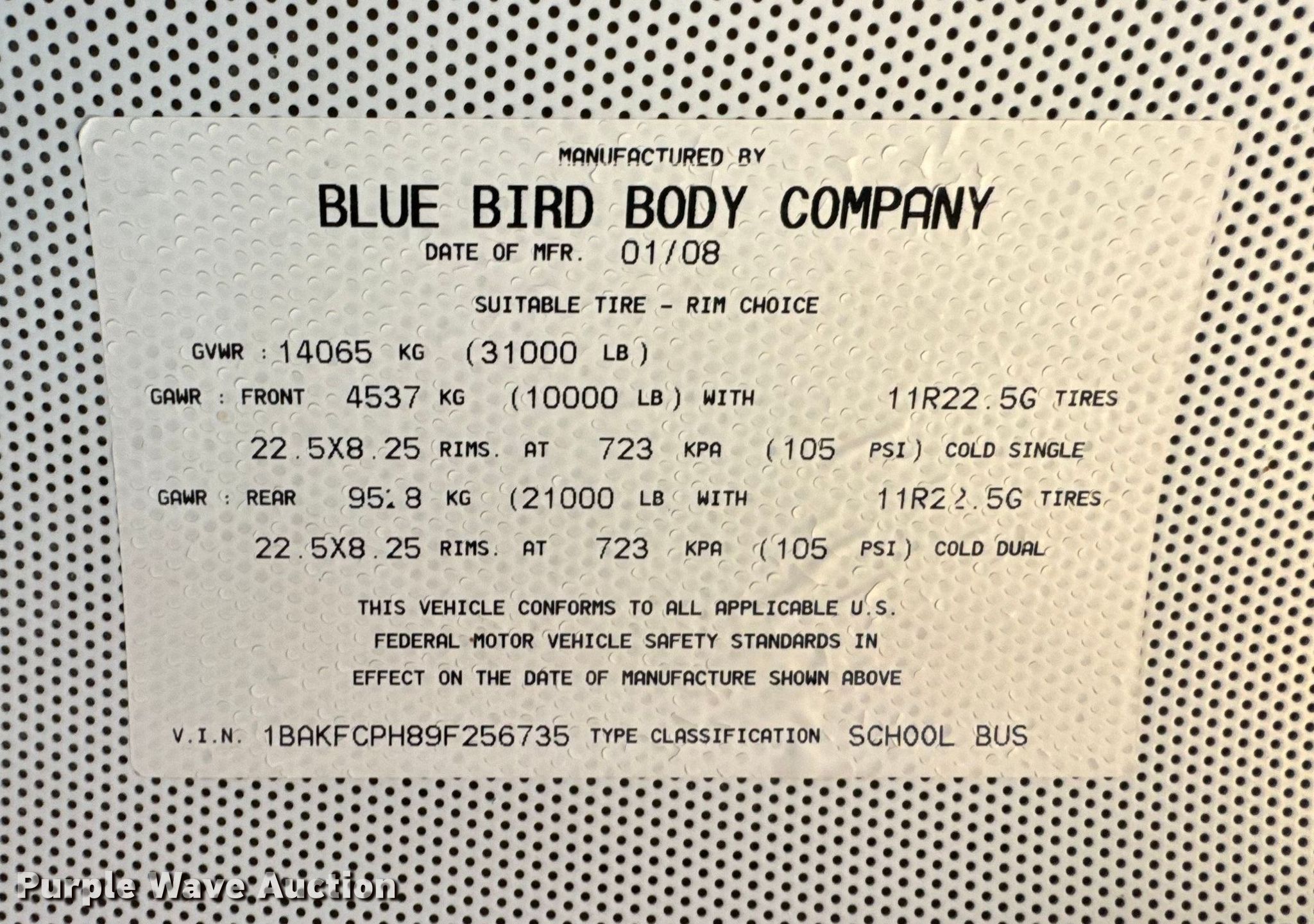 - VIN: 1BAKFCPH89F256735