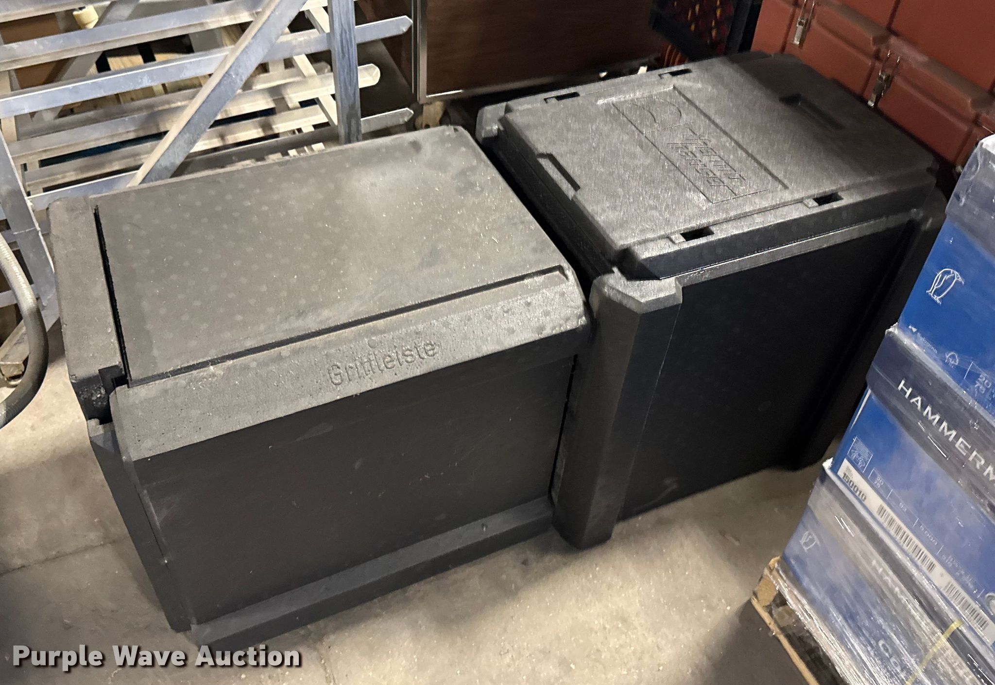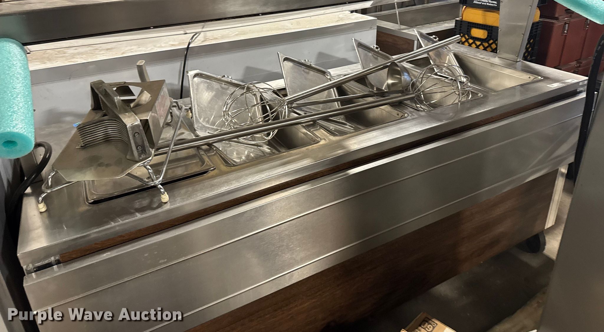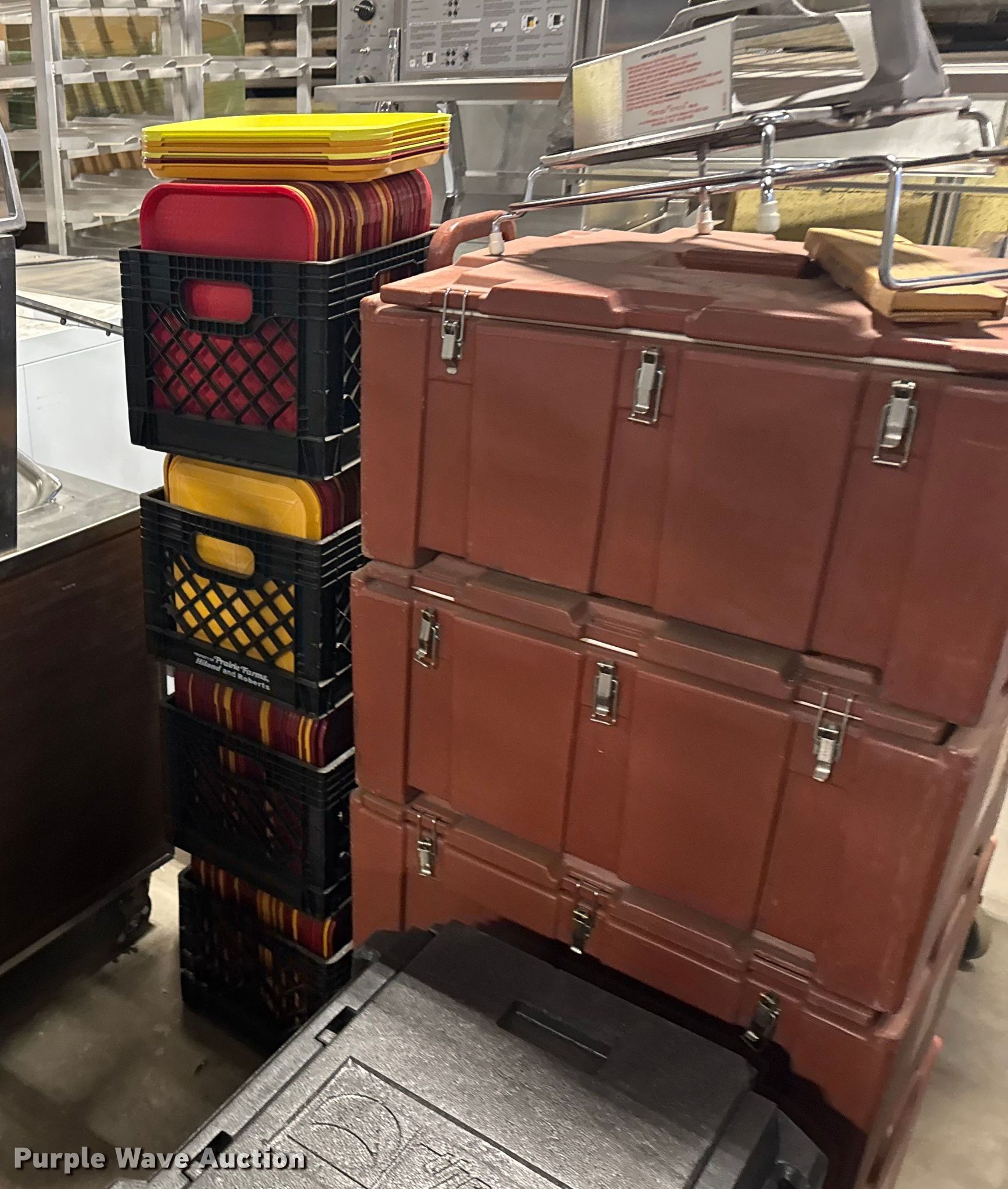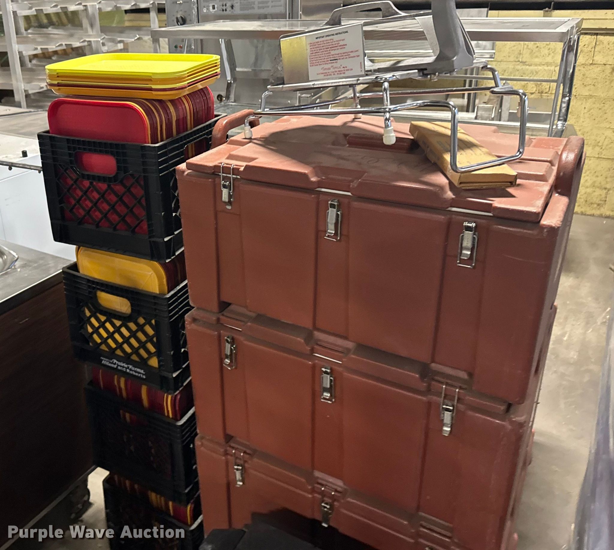 Purple Wave is selling a used Restaurant Equip. in Kansas. This item is a Restaurant equipment with the following: Mixer, Food warmers, Can racks, Meat slicers, Trays, Pots and more