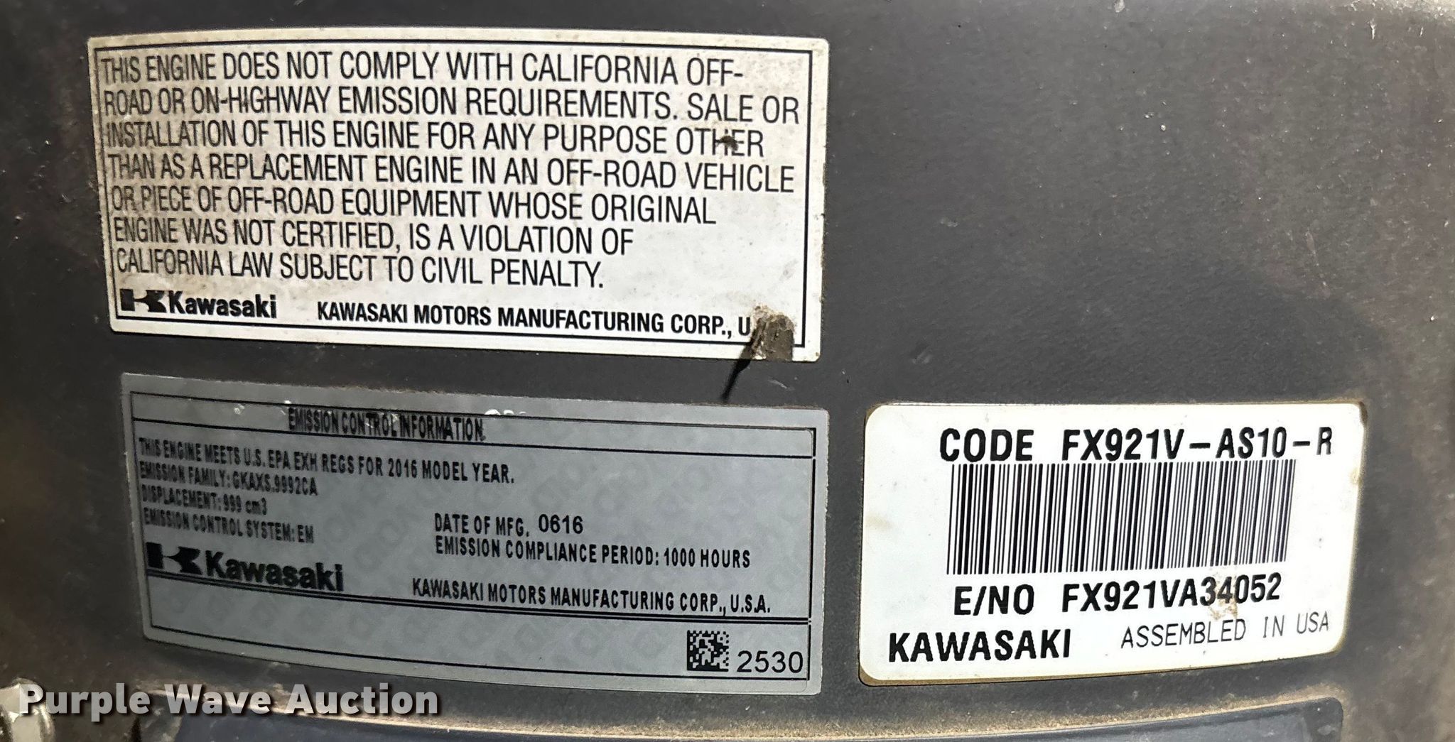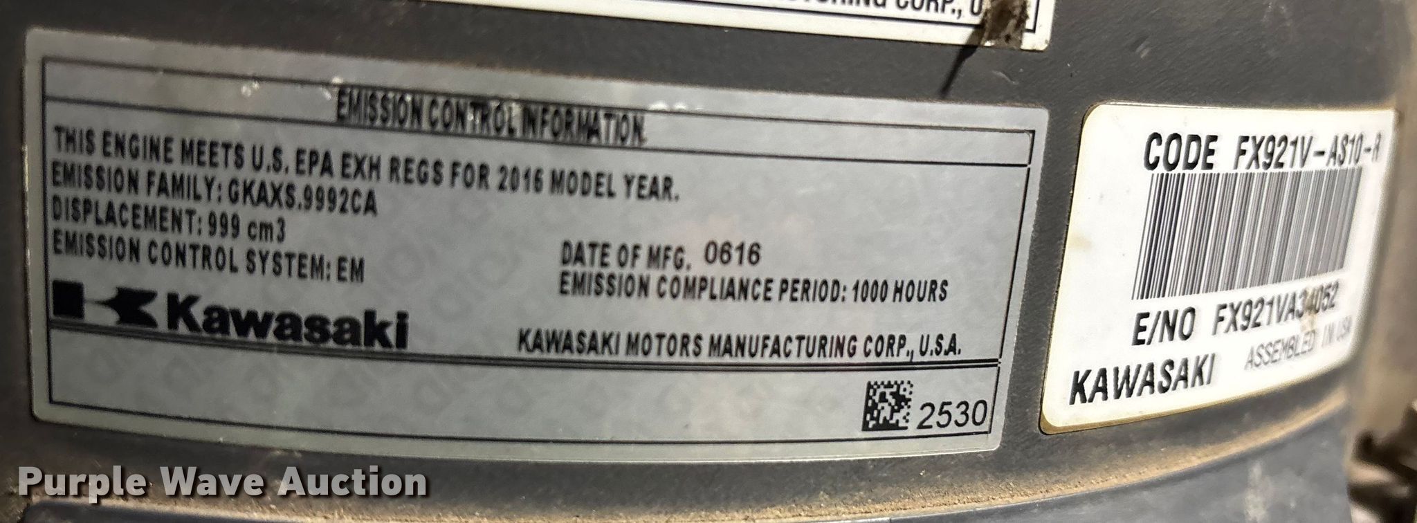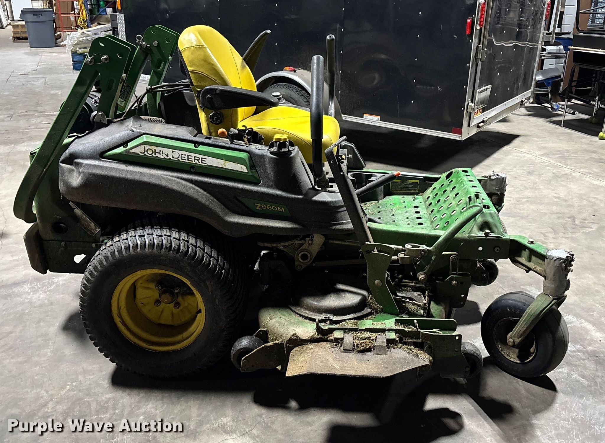 2016 John Deere Z960M ZTR lawn mower. Hours: 1,646 on meter, Cutting width: 60", Serial: 1TC960MGJGT041740. Engine Kawasaki FX921V, Serial: FX9120VA34052, Displacement: 921 cc, Cylinders: 2, Fuel type: Gas. Transmission Hydrostatic. Operators station OROPS. Features Mower deck Width: 60", John Deere 7iron. Tires Front: 13x6.30-4.50, Rear: 24x12.00-12. Notes Transmission issues , Jump start required during on-site data collection, Non-operational unit. Raytown C-2 School District. Raytown, MO 64133