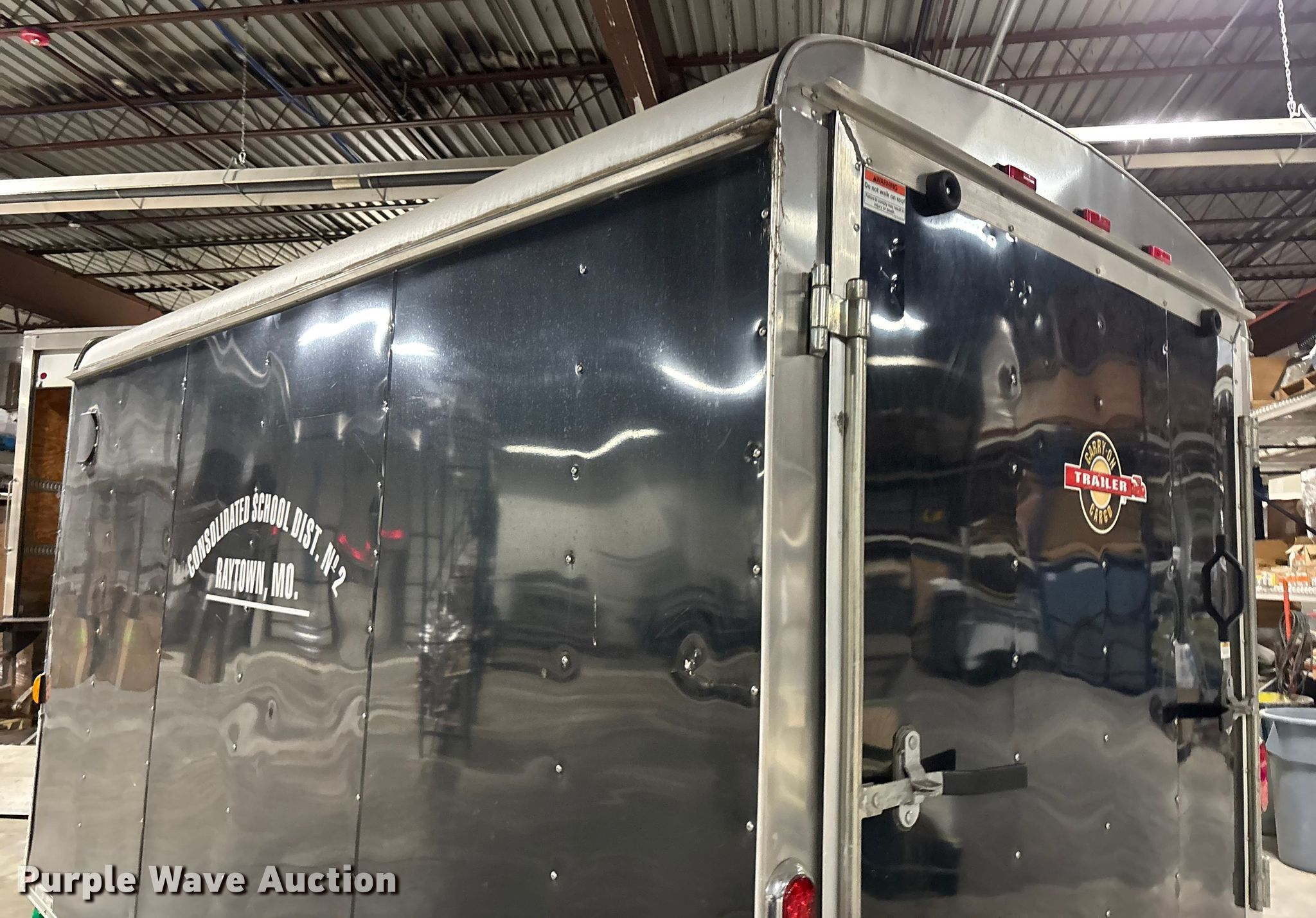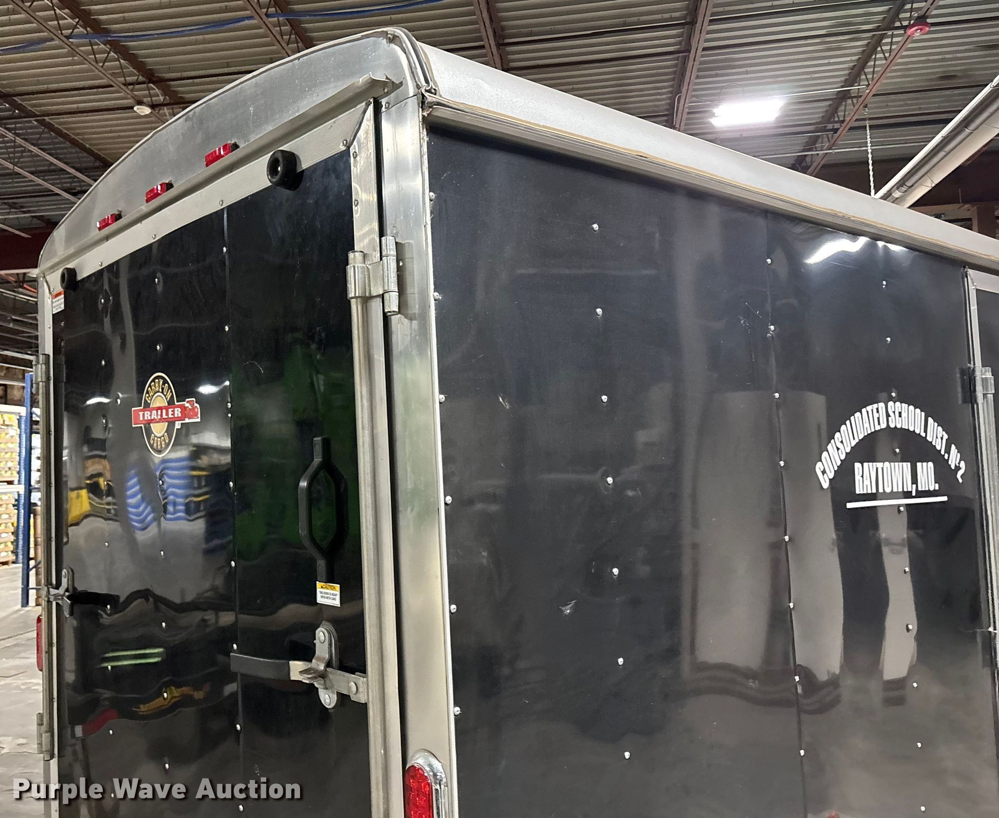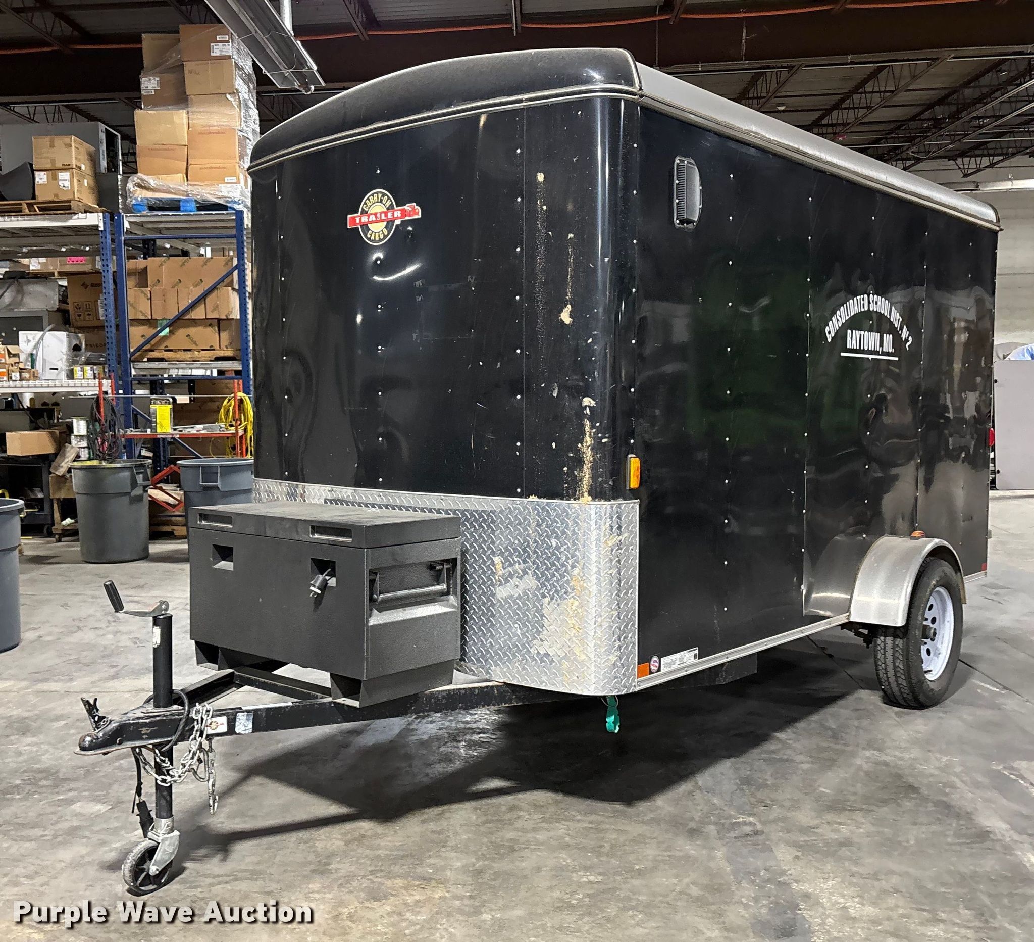 2012 Carry-On 6X12CGR enclosed cargo trailer. VIN: 4YMCL121XCM010545. Dimensions Overall Length: 16', Width: 88", Body Length: 12', Width: 6', Rear door / ramp 72" L x 60" W. Features Deck type: Wood. Chassis Ball hitch: 2", Landing gear: Single, Suspension: Spring, GVWR: 2,990 lbs, GAWR: 3,500 lbs. Tires Steel wheels, Size: 205/75D15. Missouri municipality owned asset. No title will be provided. Transfer of ownership documentation will be by notarized bill. of sale and a manufacturer's statement of origin in accordance. with MSR 301.260. Bidders are responsible for verifying if this. is sufficient to obtain title in their jurisdiction prior to bidding. Raytown C-2 School District. Raytown, MO 64133