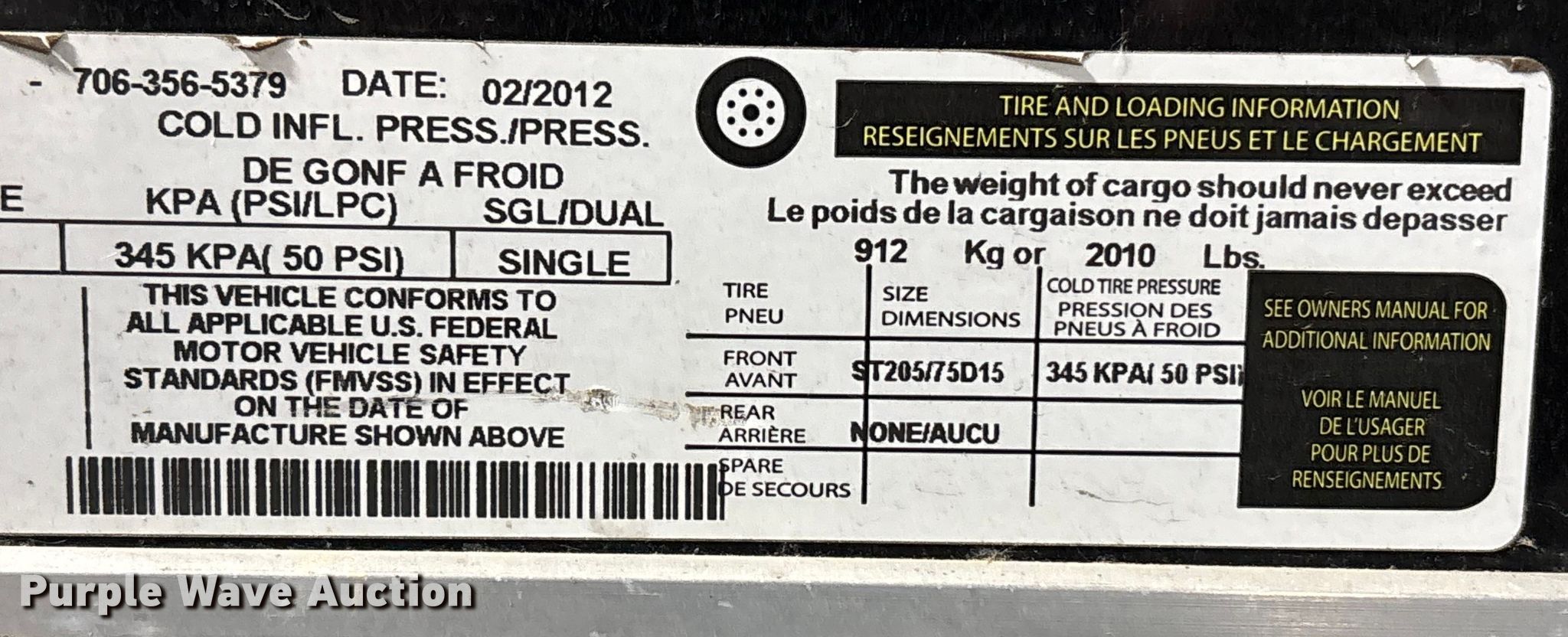 Purple Wave is selling a used Enclosed Cargo Trailer in Missouri. This item is a 2012 Carry-On 6X12CGR enclosed cargo trailer with the following: VIN: 4YMCL121XCM010545