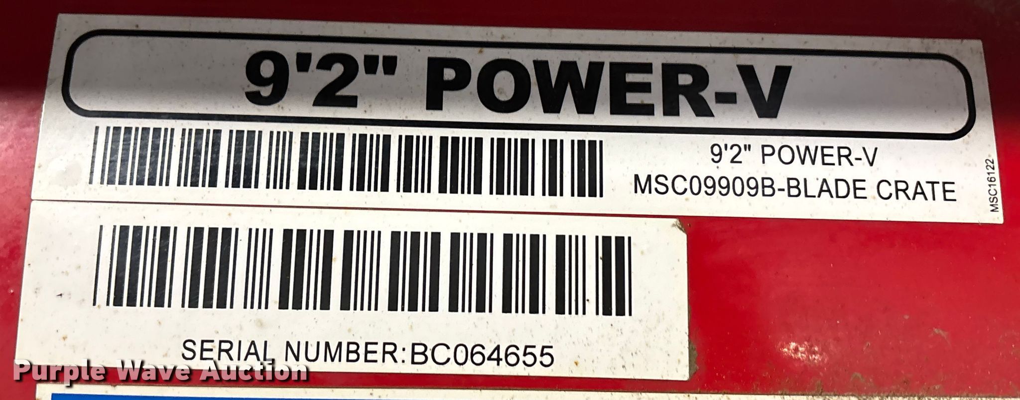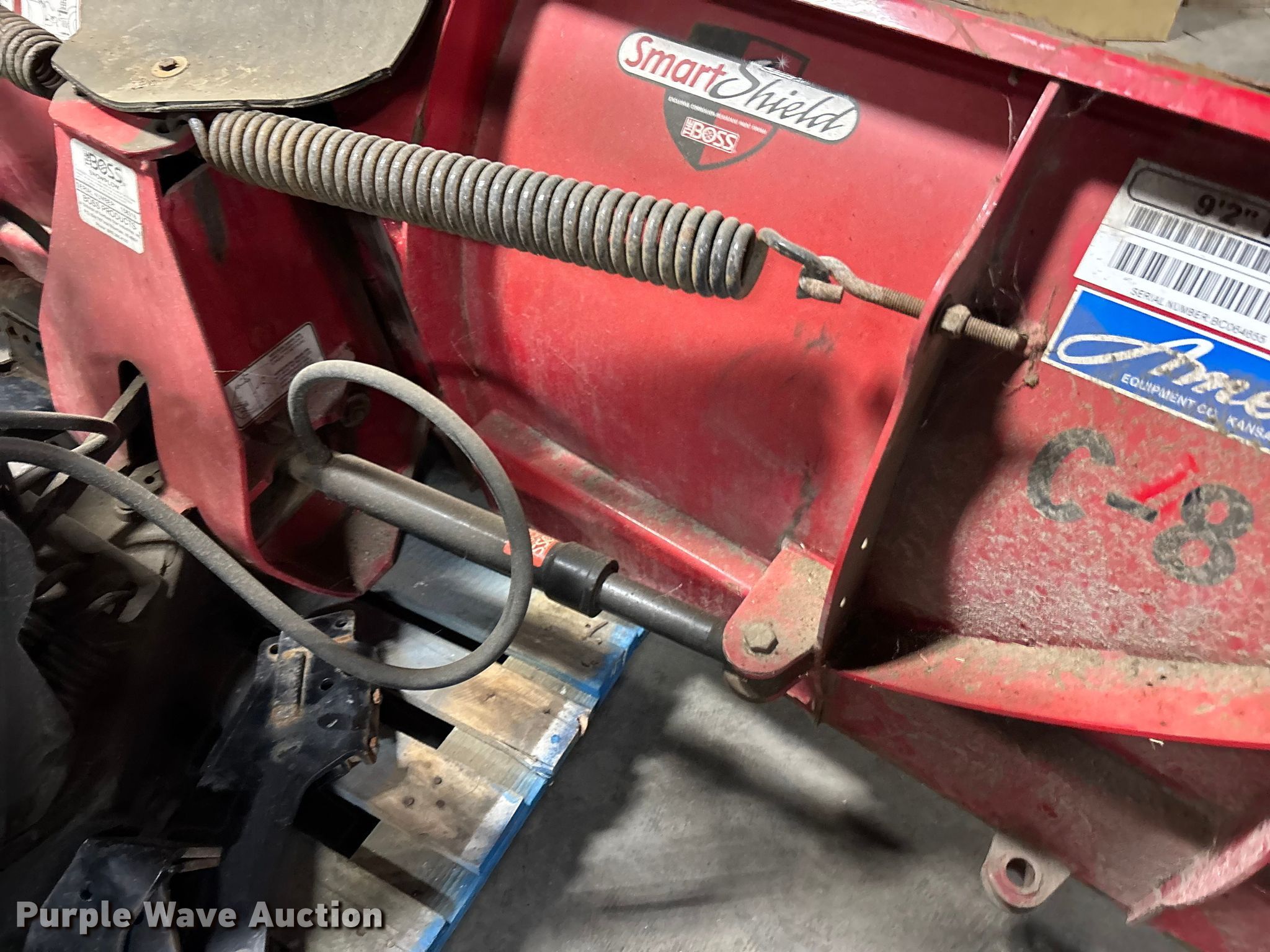Purple Wave is selling a used Automotive Parts or Acces. in Missouri. This item is a The Boss Power V snow plow with the following: Serial: BC064655, Width: 9' 2"
