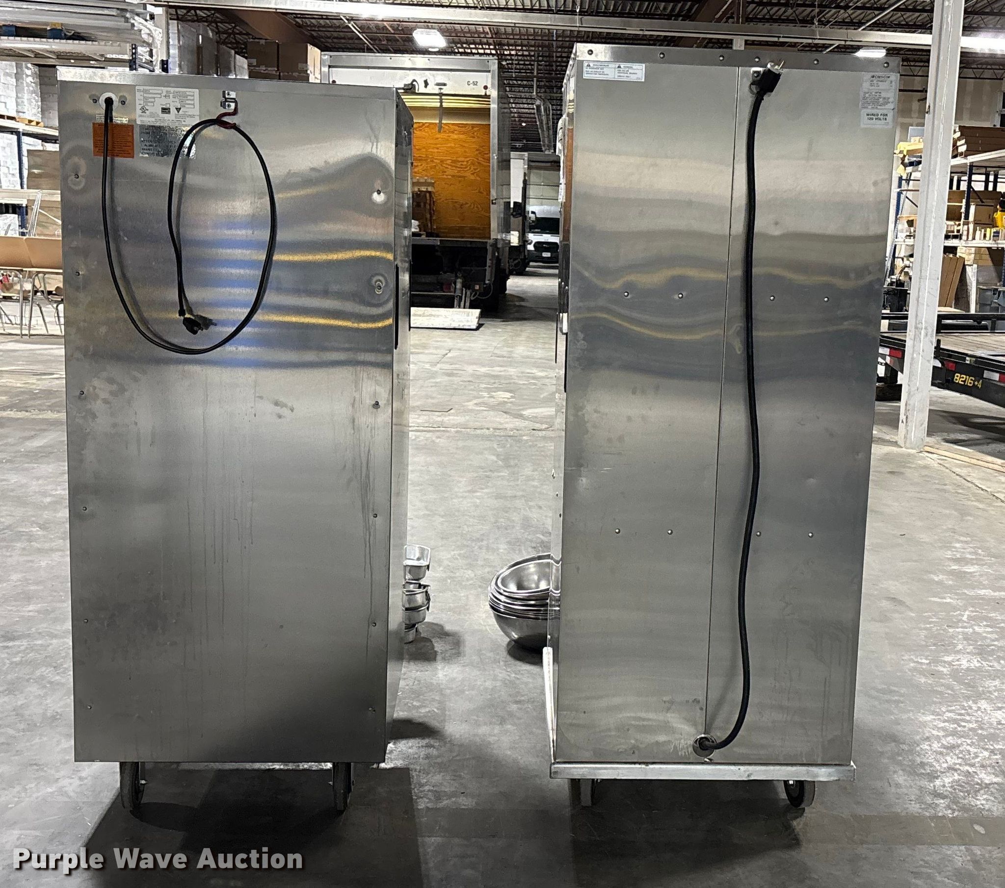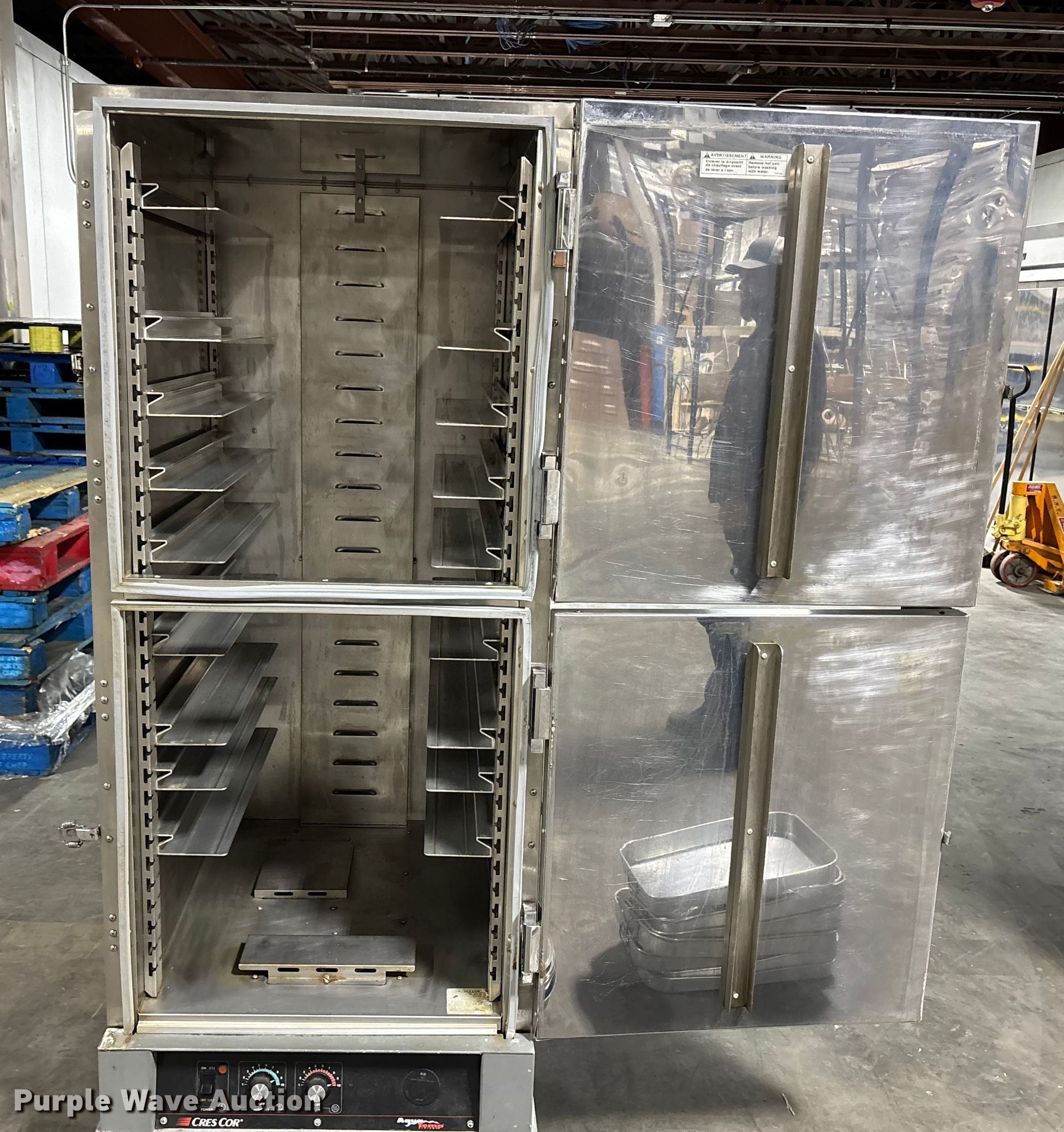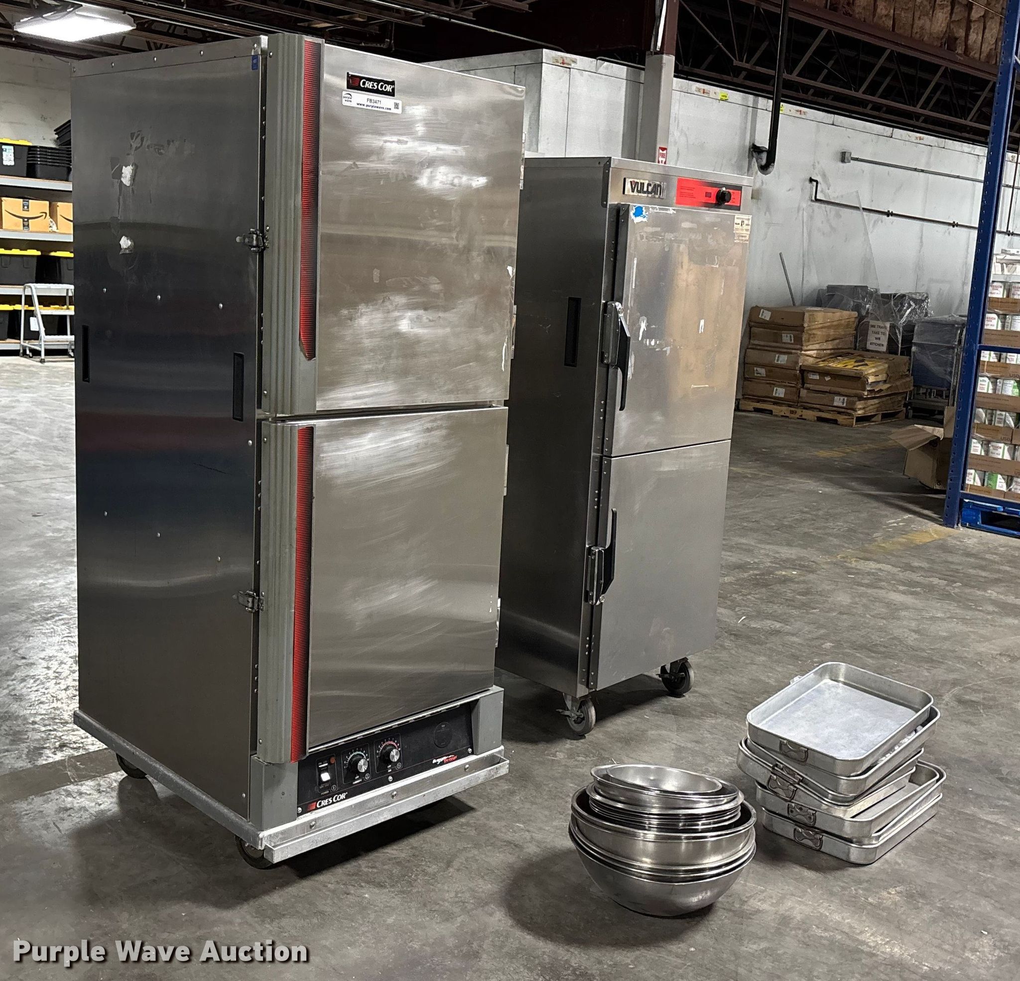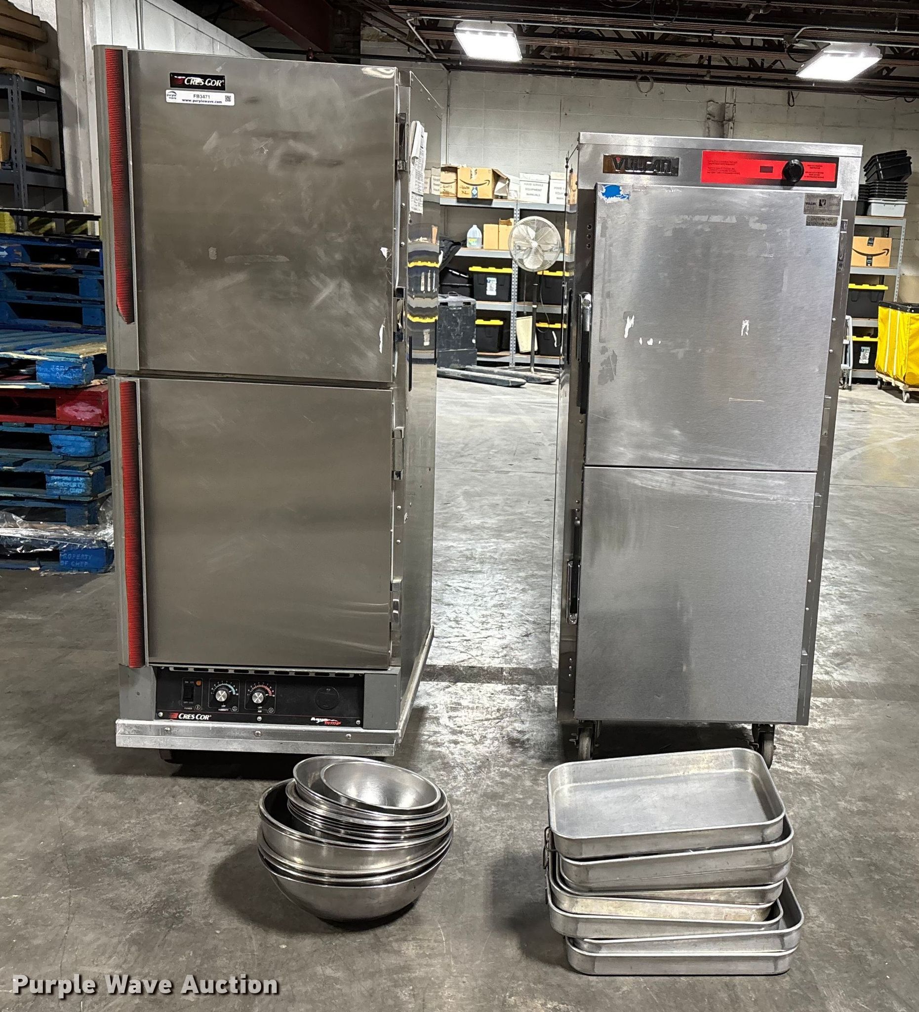 Purple Wave is selling a used Restaurant Equip. in Missouri. This item is a (2) food warmers with the following: Vulcan warmer VBP15|, Cres Cor H137WSUA12, Volts: 120, (8) pans, (13) bowls