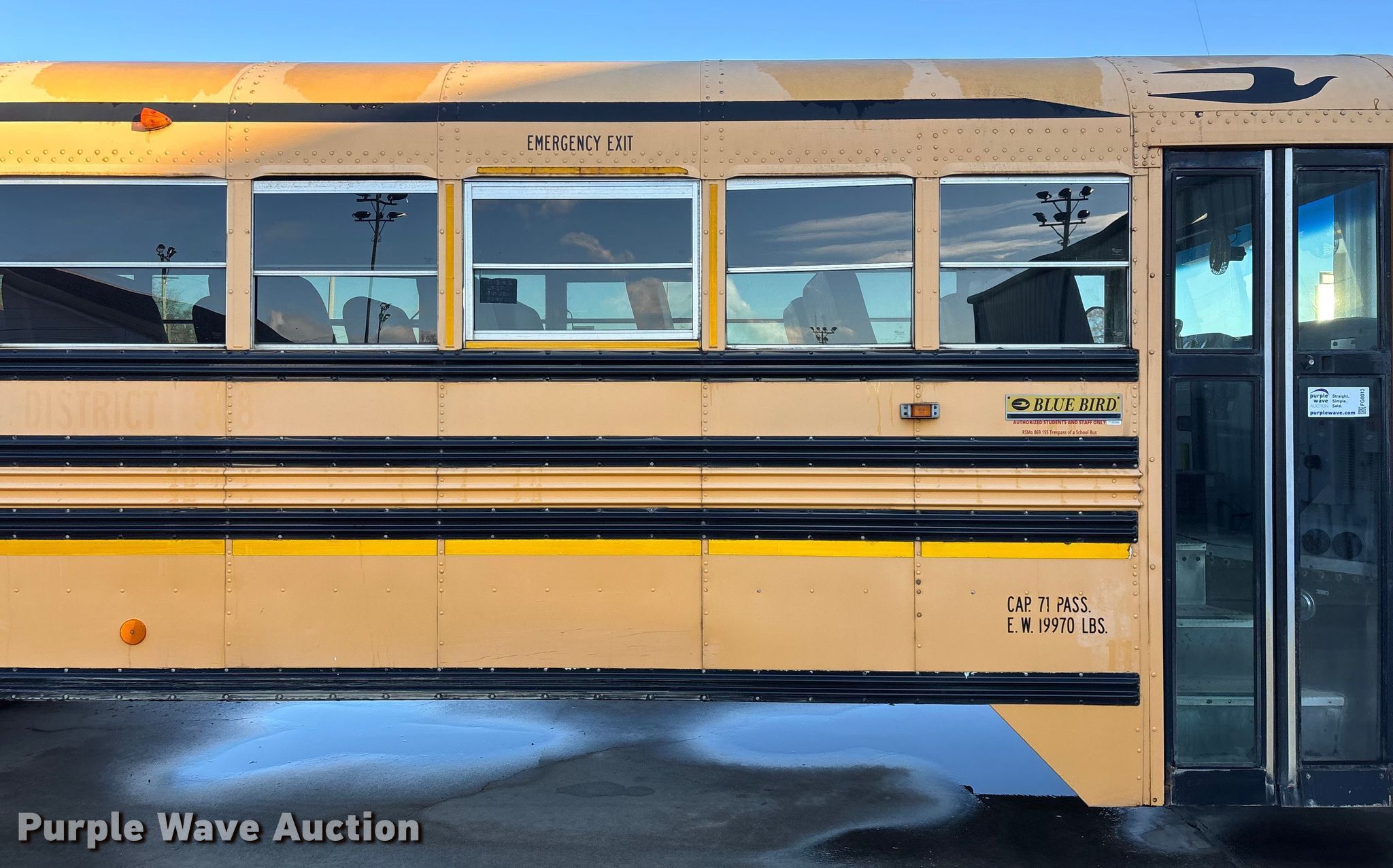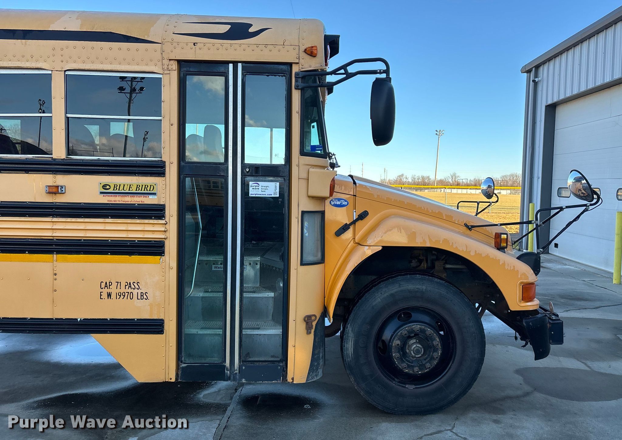 Purple Wave is selling a used Bus in Missouri. This item is a 2007 Blue Bird Vision school bus with the following: Miles: 130,525 on odometer, Hours: 6,866 on meter, VIN: 1BAKGCKH27F240158, Unit #: 19