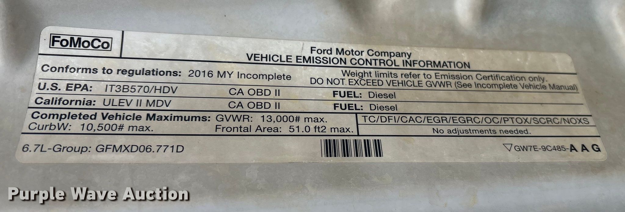 2016 Ford F350 Super Duty Ext. Cab flatbed pickup truck. Miles: 87,458 on odometer, VIN: 1FD8W3DT0GEB06237. Engine Displacement: 6.7L, Cylinders: 8, Fuel type: Diesel. Transmission Automatic, Four wheel drive. Interior AC, Heat, Heated mirrors, Power windows, Power locks, Cruise control, Brake controller. Features Bed Flatbed, Length: 9' 6", Width: 96". Tires Size: LT245/75R17. Notes Engine issues, may need replaced , Non-operational unit, Unit must be towed or hauled. Nebraska title. Title distribution may be delayed up to 14 days from verification of funds. Platte County Highway Department. Platte Center, NE 68653