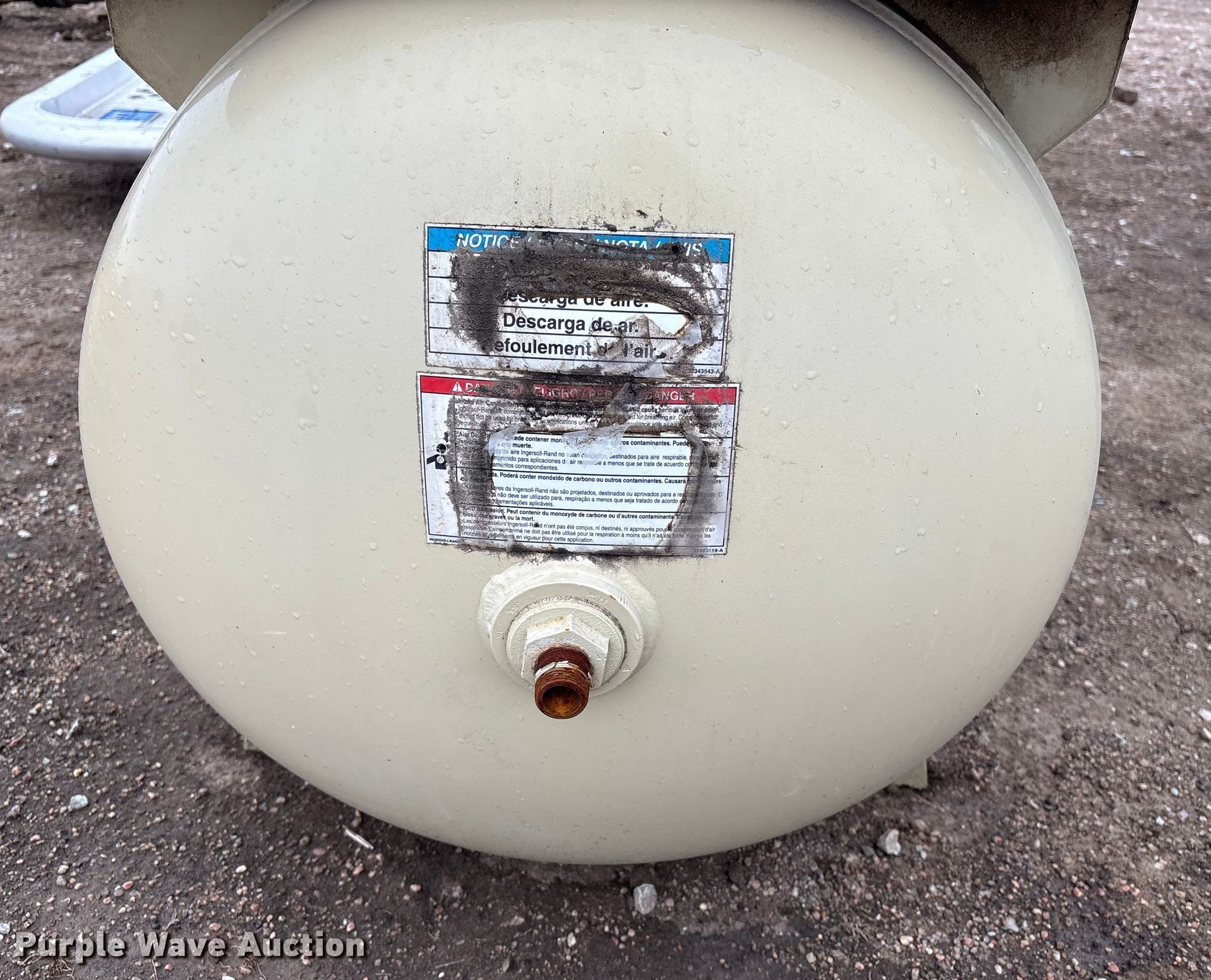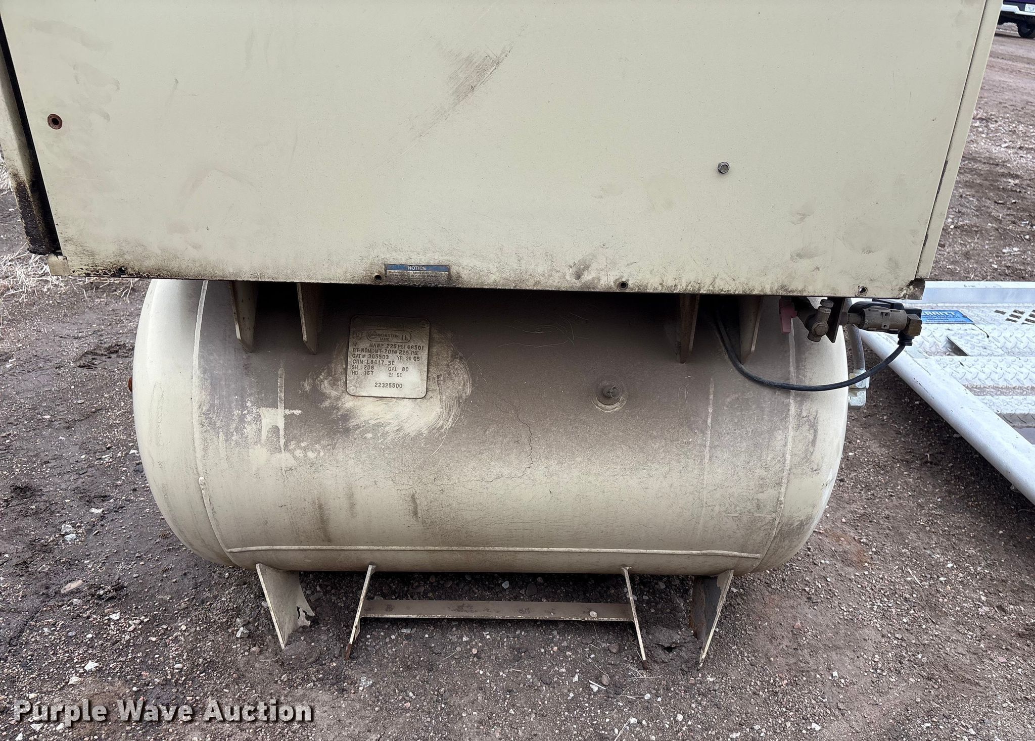 Ingersoll-Rand UP6-10TAS-210 W/D air compressor. Serial: UP2024U05264. Features Tank capacity: 80 gallons. Notes Unknown operating condition. Platte County Highway Department. Platte Center, NE 68653