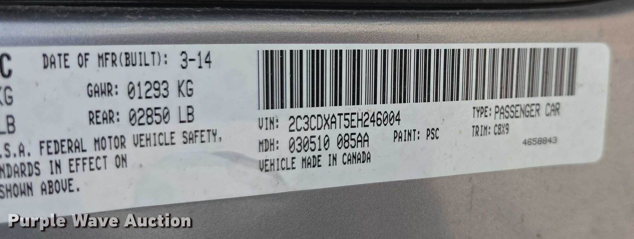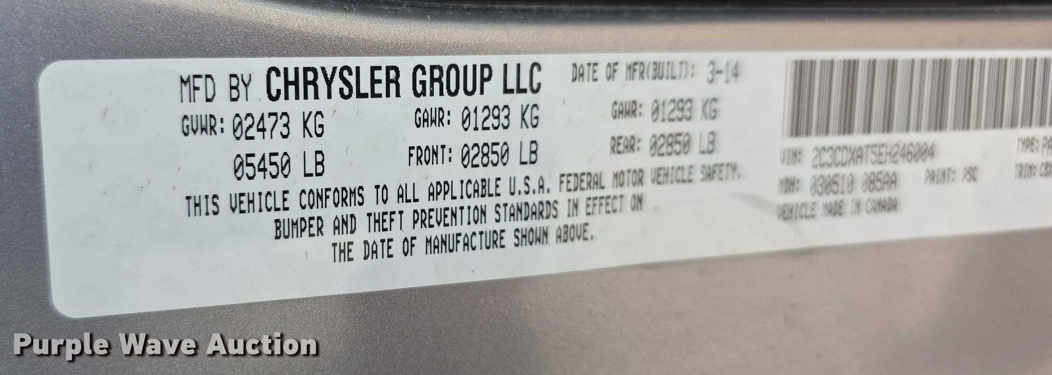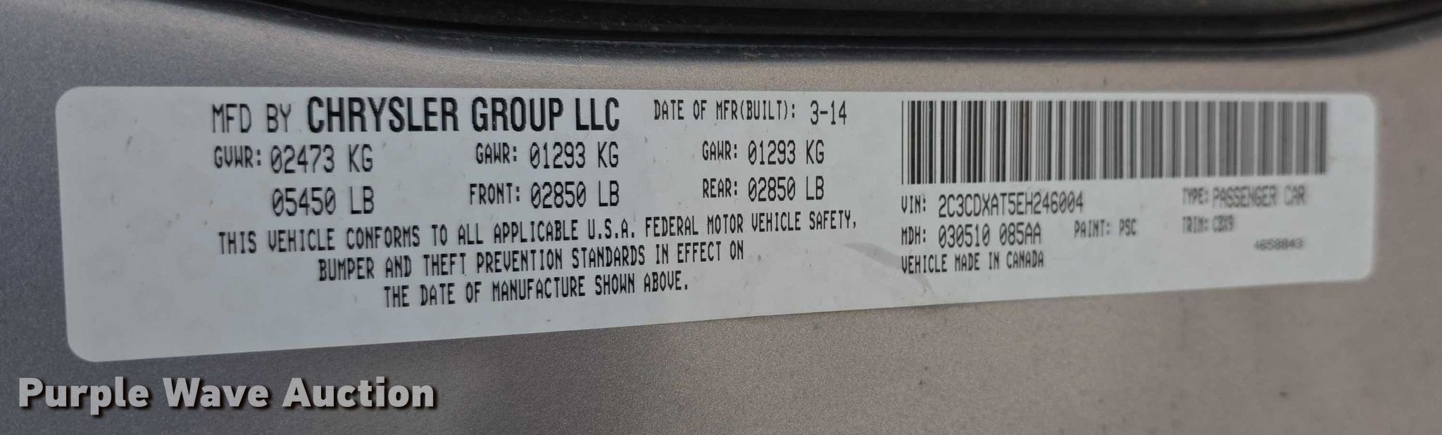 - VIN: 2C3CDXAT5EH246004