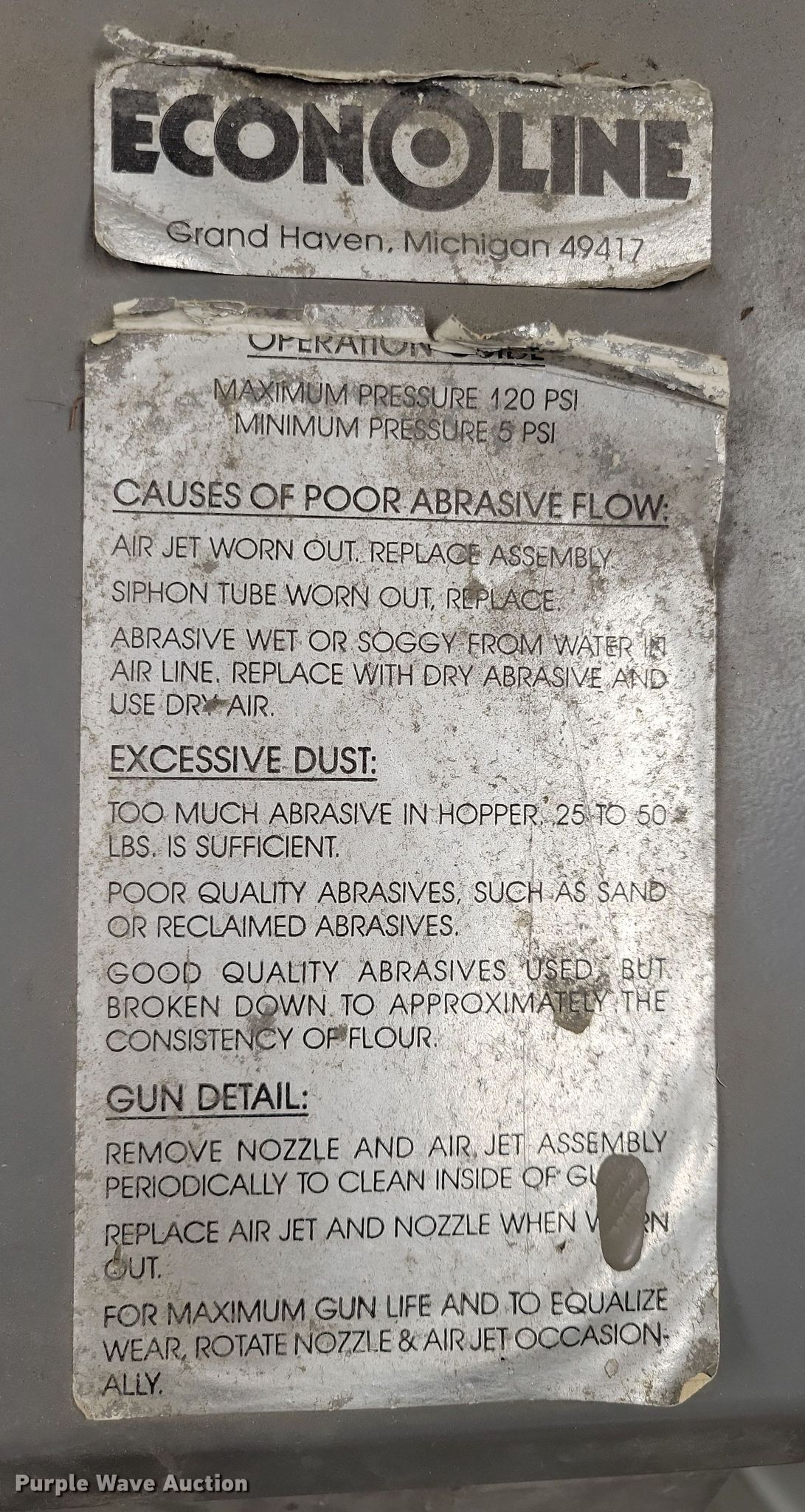 Take a look at this used Econoline sand blaster being sold on February 17th, 2026 in the Tuesday February 17 Government Auction made by Econoline. Take a look at all of the item information below or take a look at similar auctions for Shop Tools.