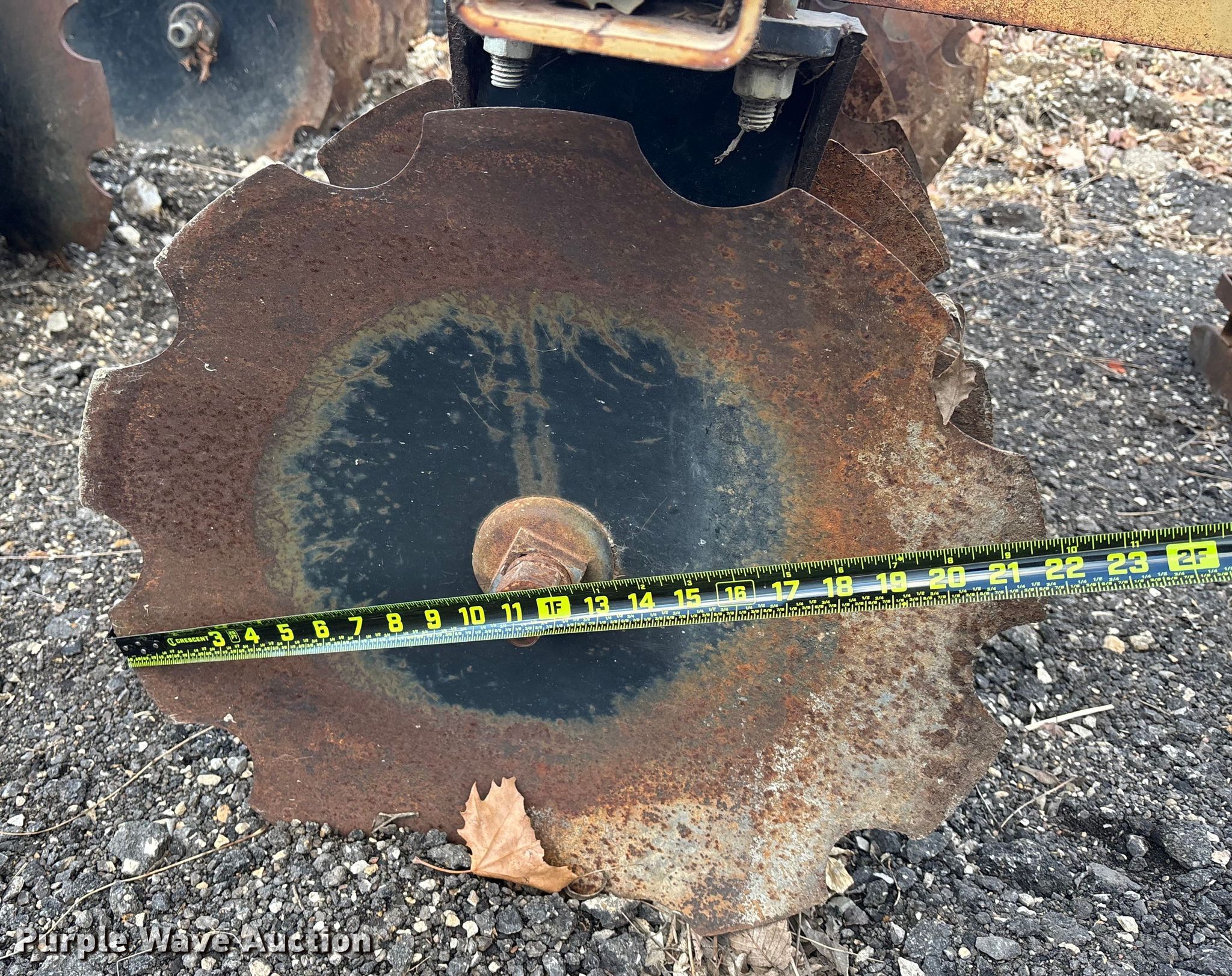 Land Pride off-set disk. Overall width: 8'. Features Front blades Diameter: 22", Spacing: 8", Rear blades Diameter: 22", Spacing: 8", Attachments Hitch: Three point. Shawnee County, KS. Topeka, KS 66612