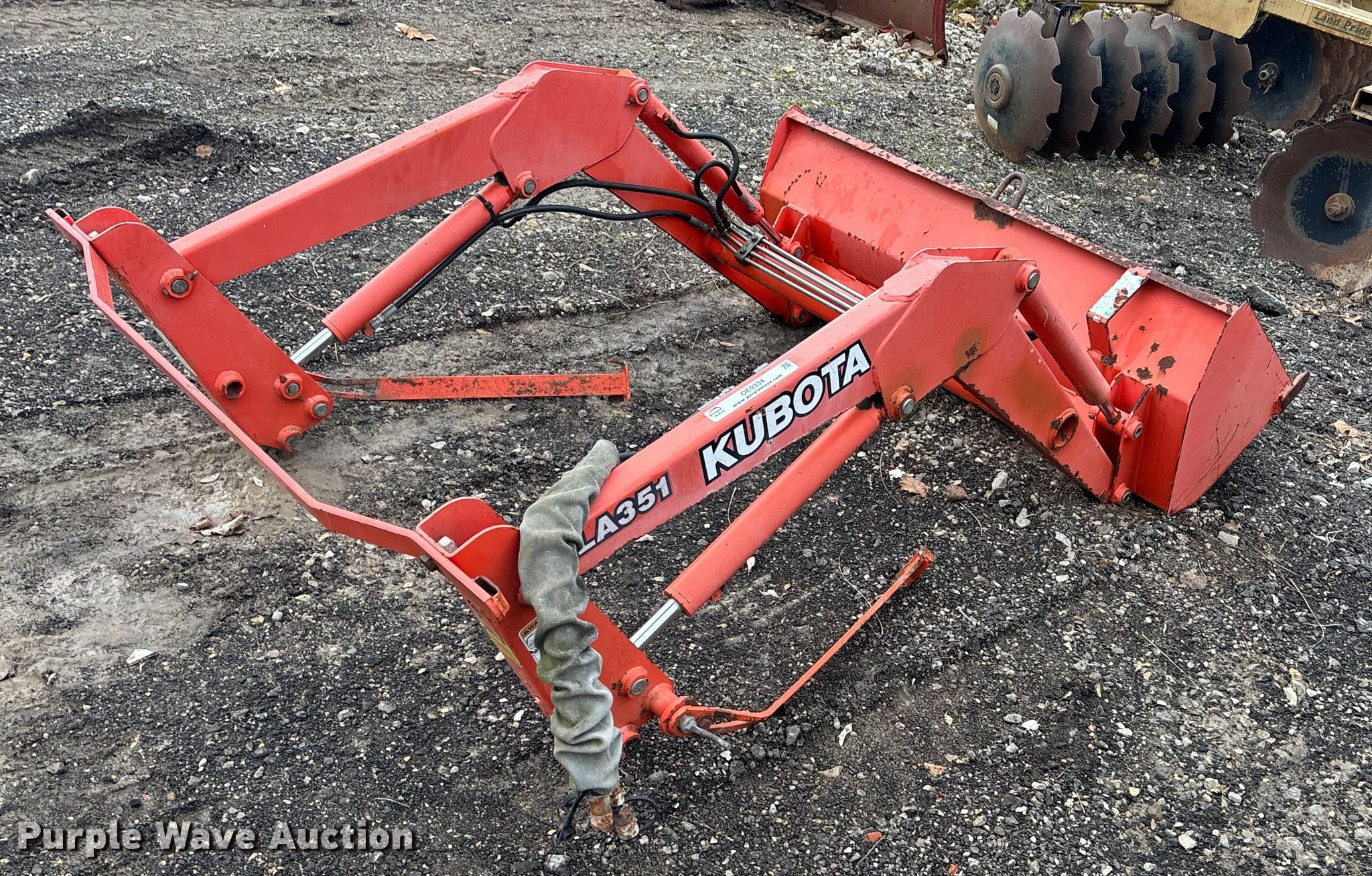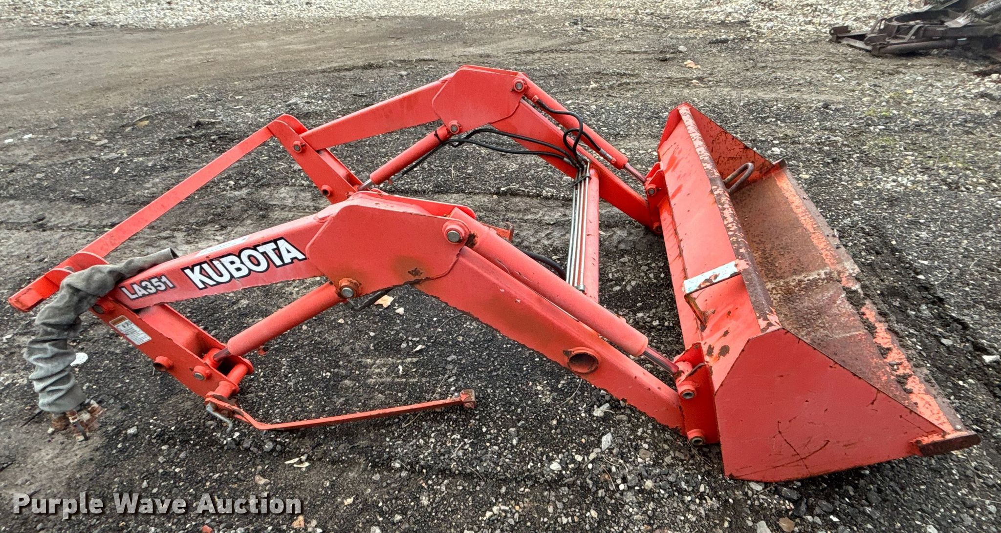 Purple Wave is selling a used Ag Tractor Loader or Attach. in Kansas. This item is a Kubota LA351 loader with the following: Serial: 12471