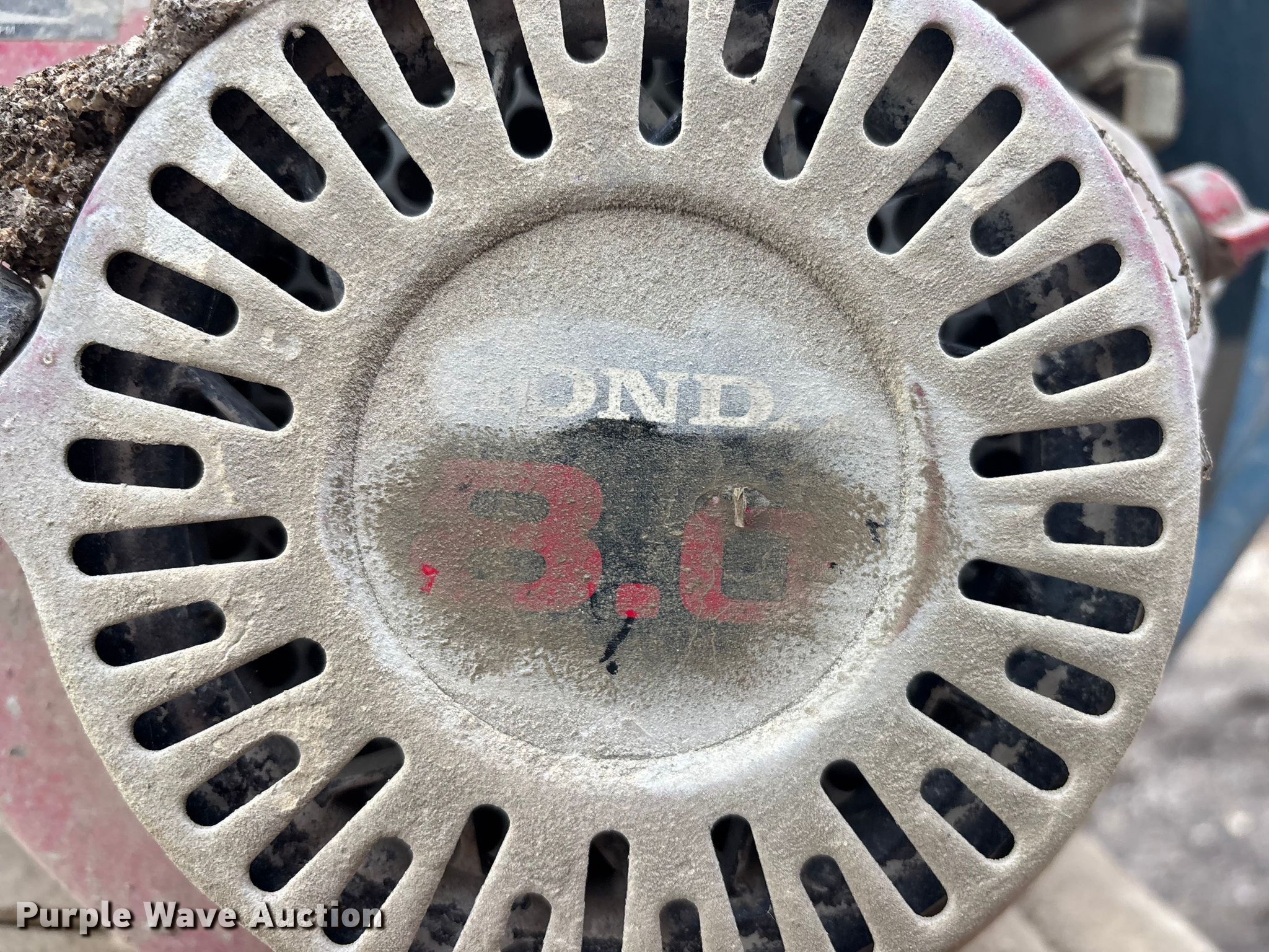 Stone 950M concrete mixer. Serial: 162006486. Dimensions Overall Length: 9', Width: 56". Engine Model: Honda, Cylinders: 1, Fuel type: Gas. Features Capacity: 9 cu.ft., Manual tilt. Tires Size: 175/80R13. Shawnee County, KS. Topeka, KS 66612