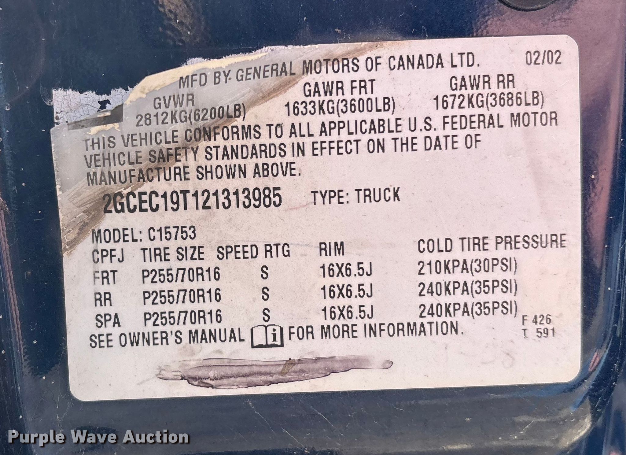 - VIN: 2GCEC19T121313985