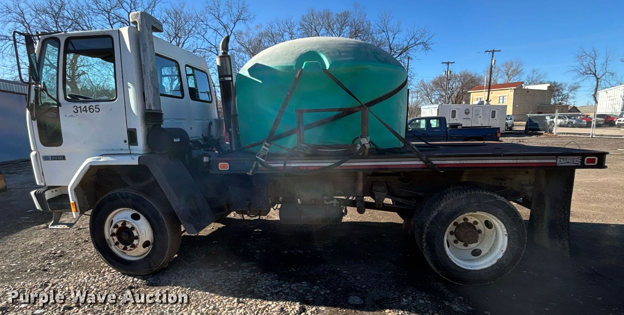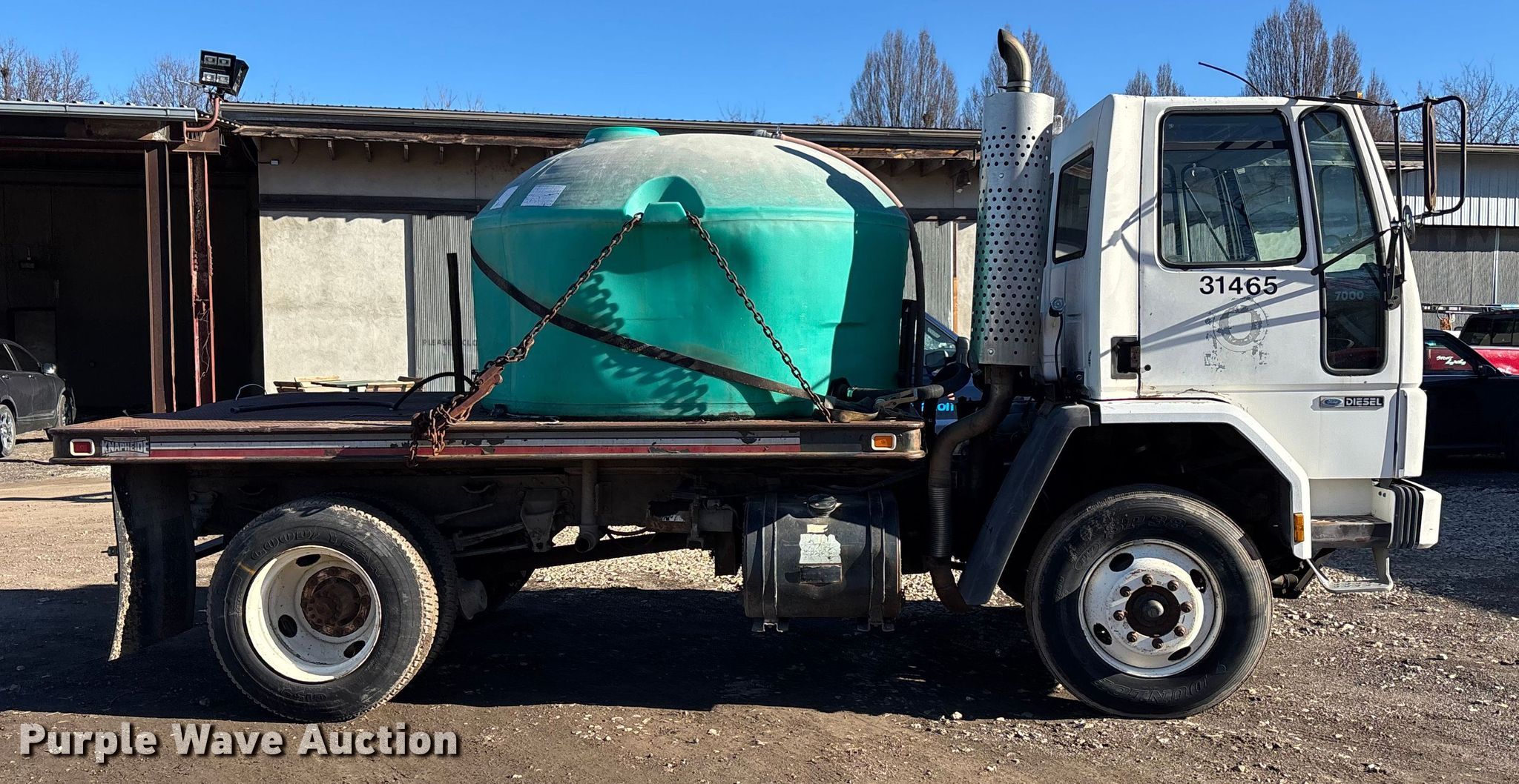 1992 Ford CF7000 dump flatbed truck. Miles: 46,395 on odometer, VIN: 1FDWH70P6NVA37388. Engine Displacement: 6.6L, Cylinders: 6, Fuel type: Diesel. Transmission Automatic. Chassis Axles: Single, Suspension: Spring, Brakes: Air, PTO, GVWR: 24,800 lbs. Interior AC, Heat, Cruise control. Features Bed Dump flatbed, Knapheide 125A, Serial: 901030, Length: 13', Width: 8', Ram: Single, Water tank Capacity: 1,000 gallons. Tires Front: 295/85R22.5, Rear: 9R22.5. Notes Starter issues, must cross solenoid to start , Unknown operating condition of dump bed, Non-operational drivers door window. Kansas title. Title distribution may be delayed up to 14 days from verification of funds. Shawnee County, KS. Topeka, KS 66612