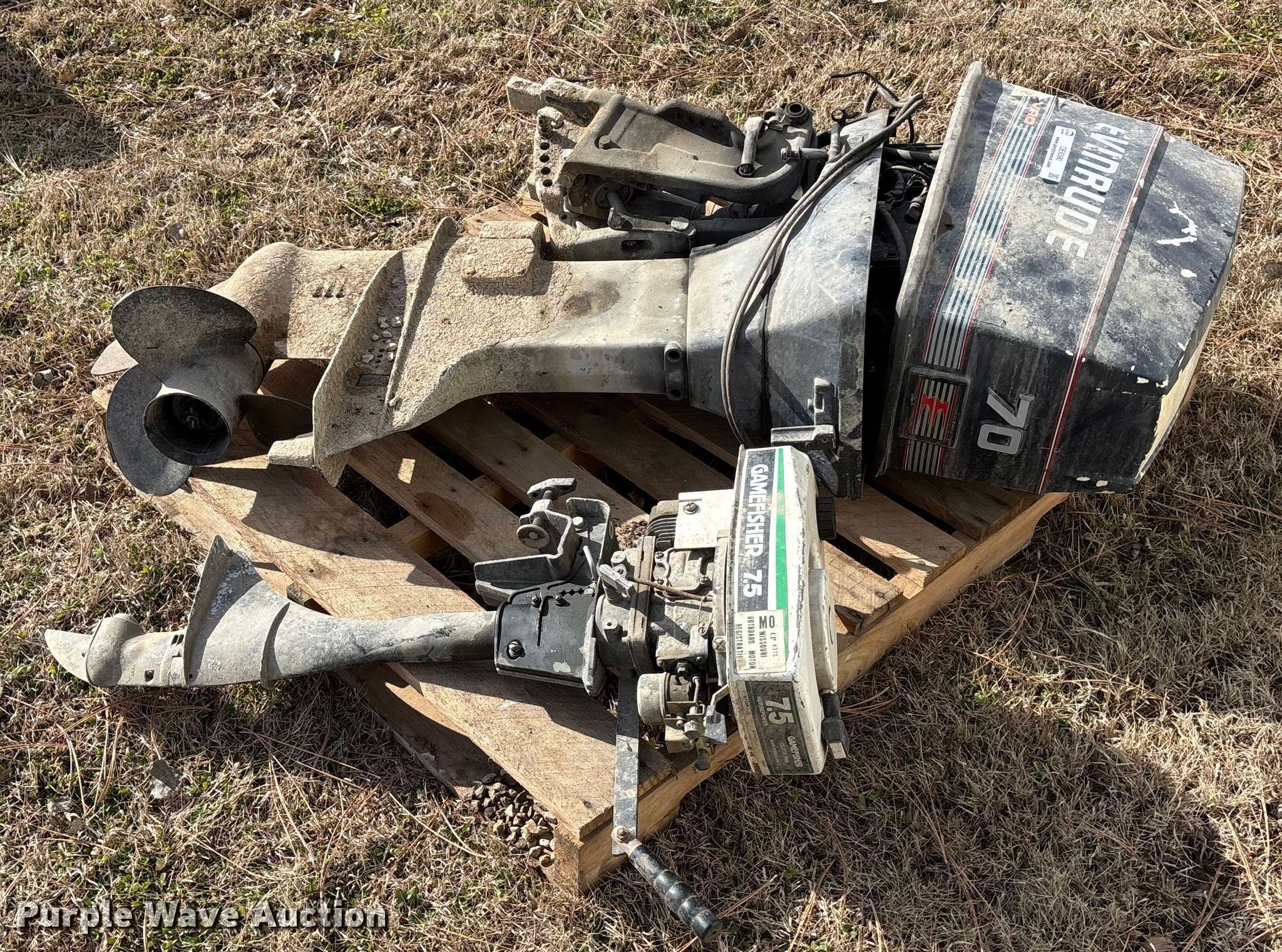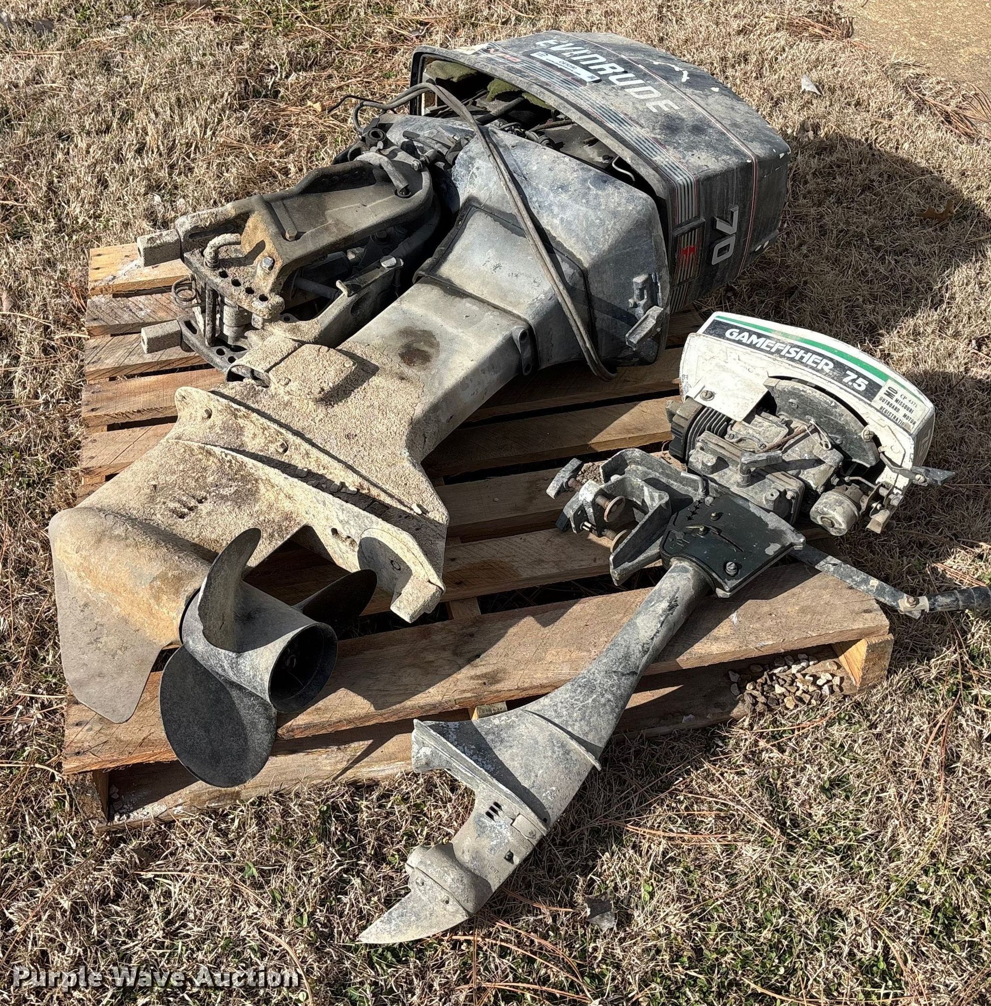 (2) boat engines. Engine. Engine type: Outboard, Evinrude VRO 70, Serial: E70TLESB, Cylinders: 3, Fuel type: Gas, Outdrive Propeller: Aluminum. Second engine Engine type: Outboard, Game Fisher 7.5, Serial: 640-14A, Cylinders: 1. Notes Engine issues, low compression , Unknown operating condition. Transfer of ownership documentation will be a bill of sale. Shawnee County, KS. Topeka, KS 66612
