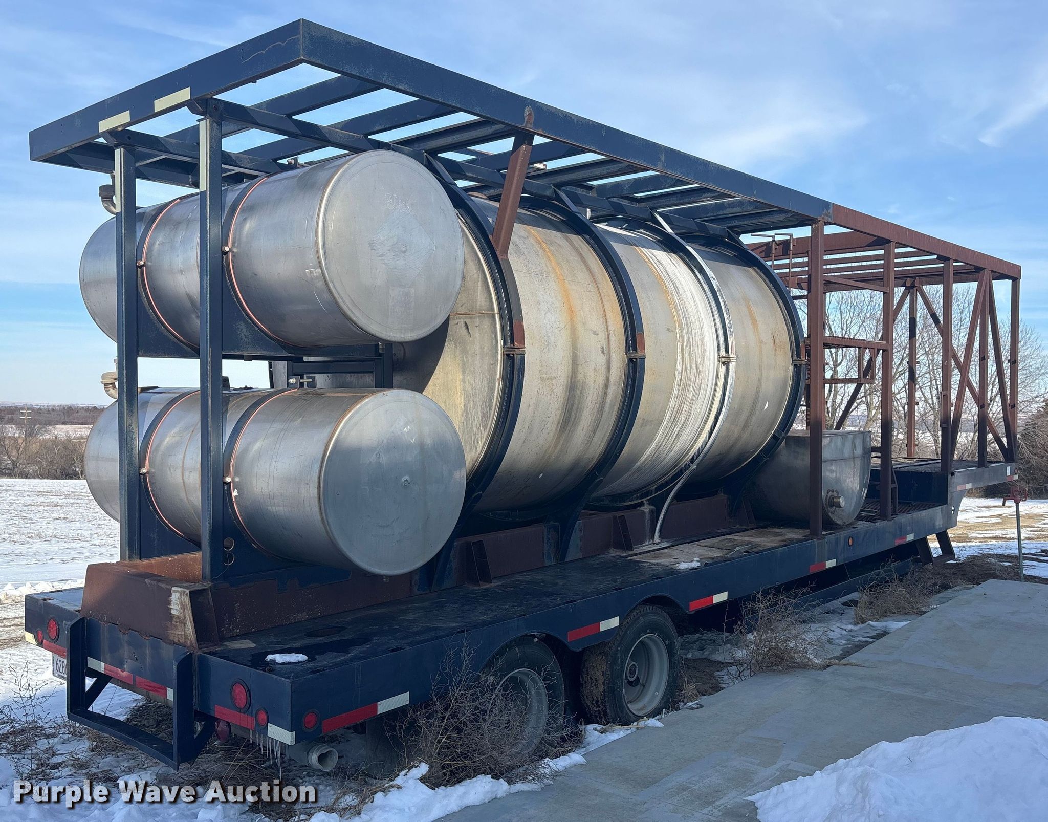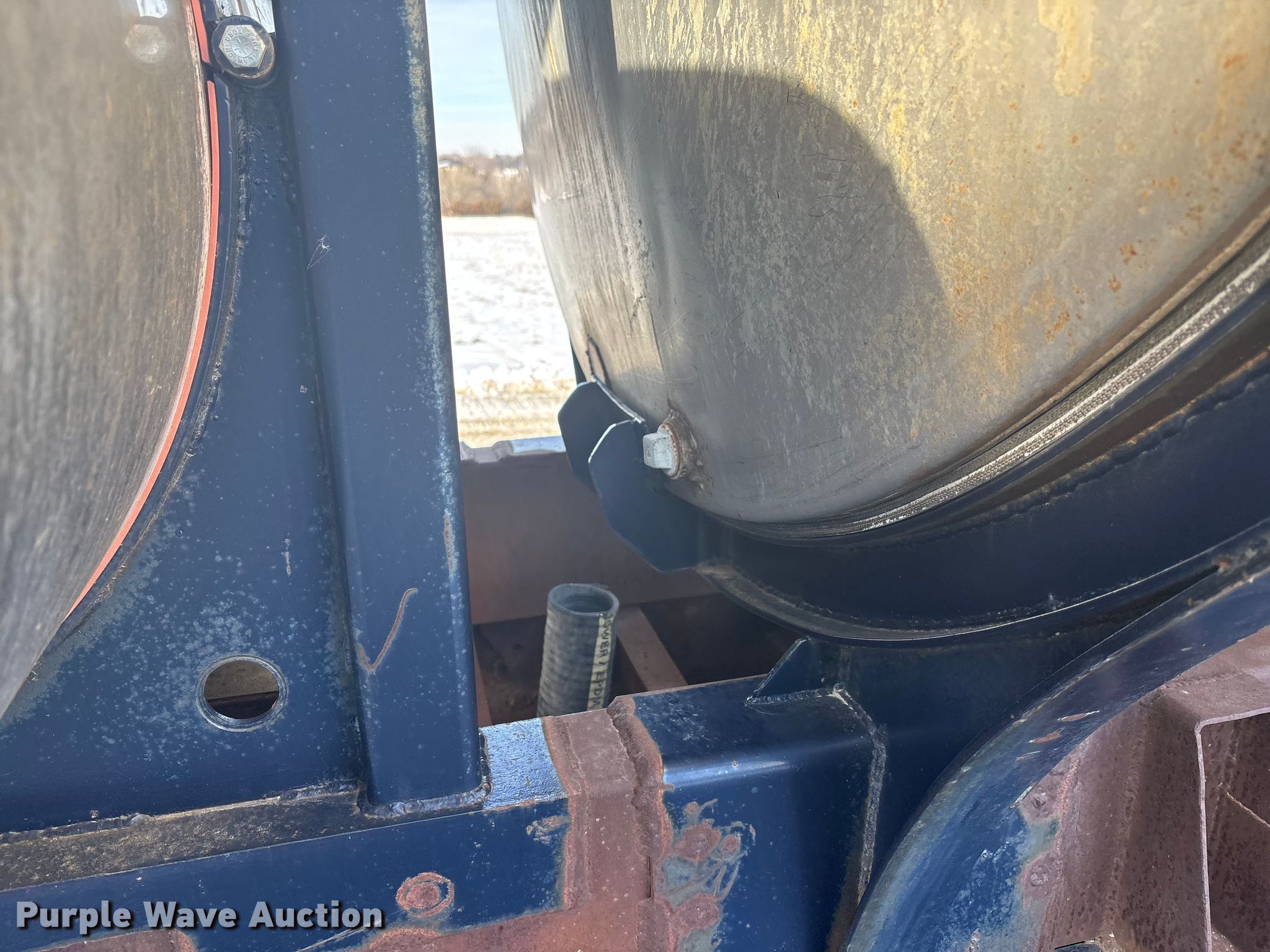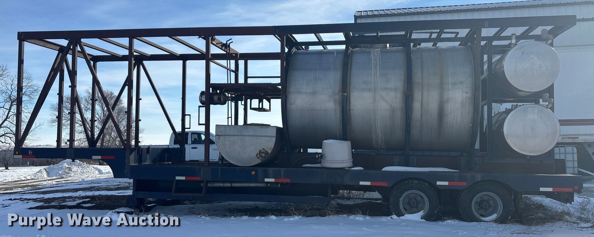 1961 Stan LB32 mixing trailer. VIN: 2973. Dimensions Overall Length: 33', Width: 96", Deck Length: 33'. Features Deck type: Steel, Wood, Approx. tank capacities: 400 gallons, 3000 gallons, 316 gallons each. Chassis Landing gear: Dual, Suspension: Spring, Brakes: Electric, Axles: Tandem. Tires Steel wheels, Size: 235/75R17.5. Kansas title. Title distribution may be delayed up to 14 days from verification of funds. Sky Copters Inc... Westmoreland, KS 66549
