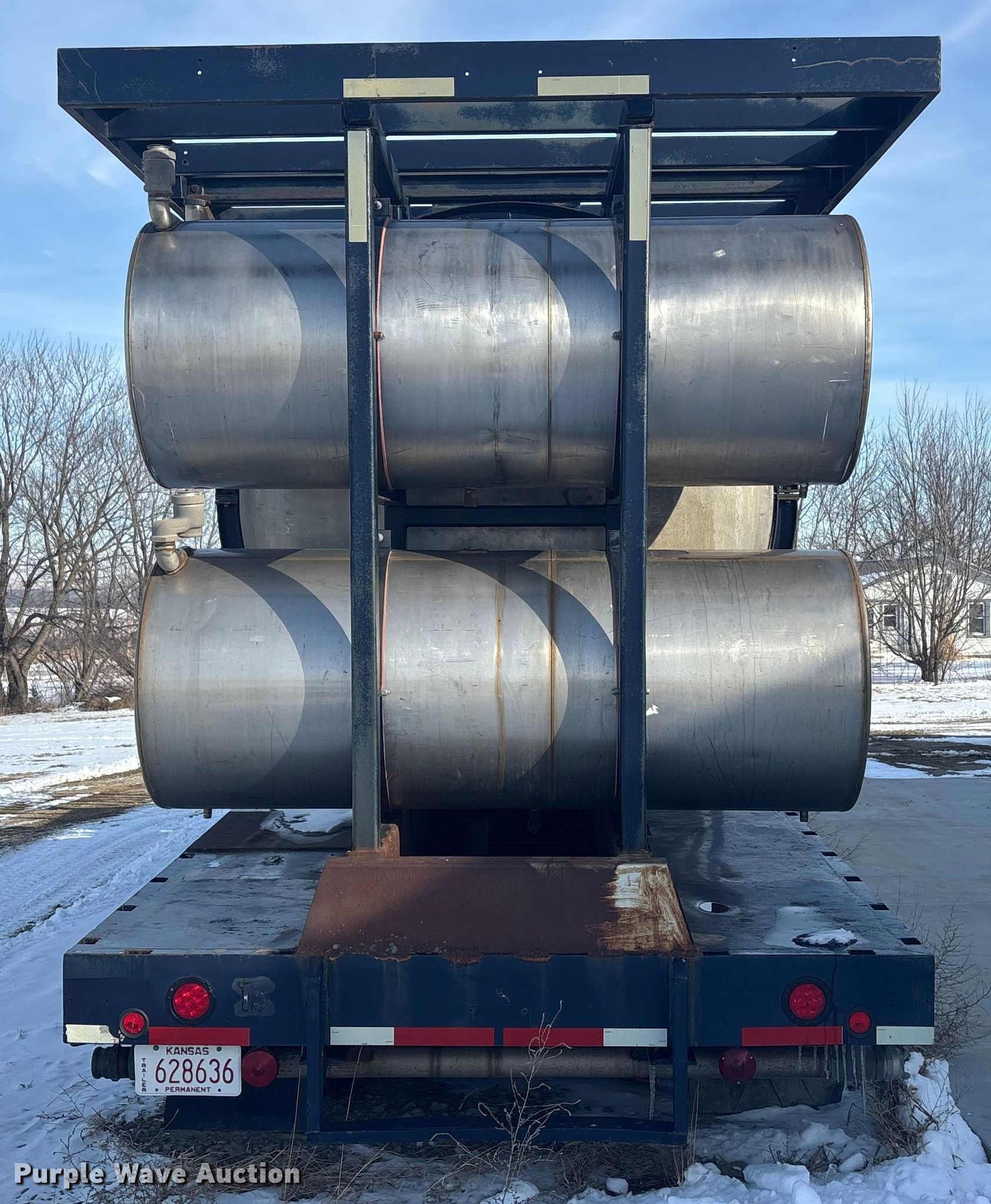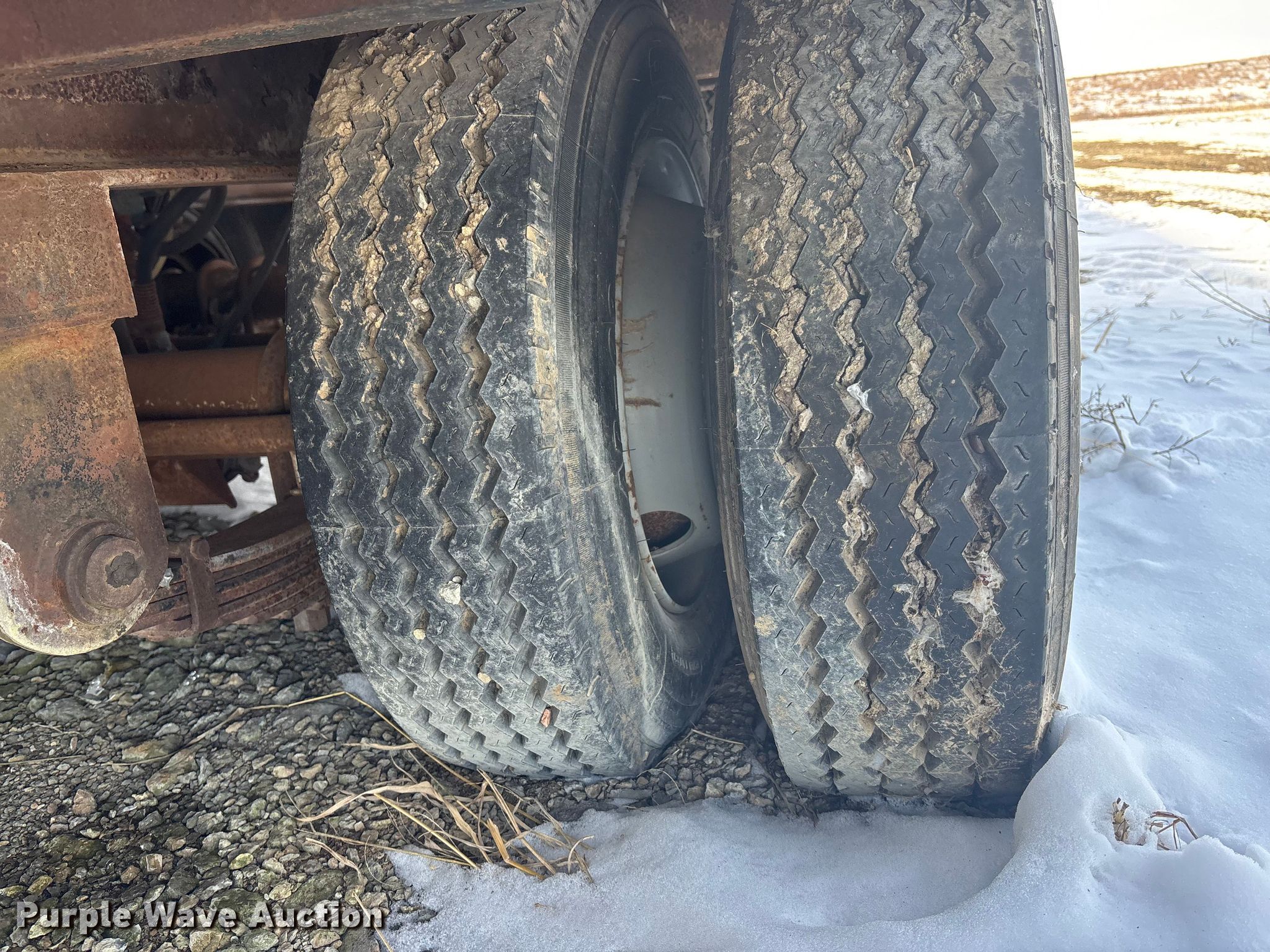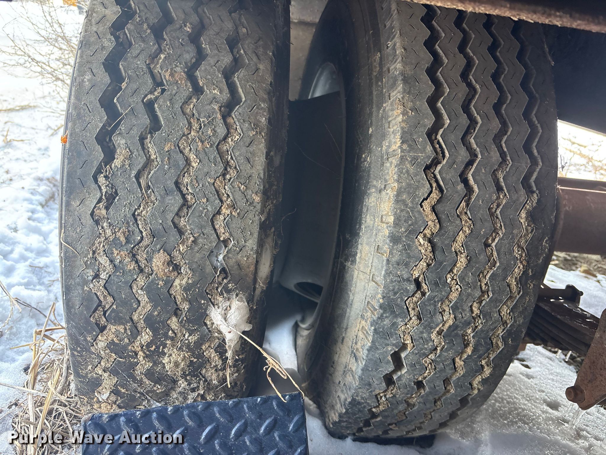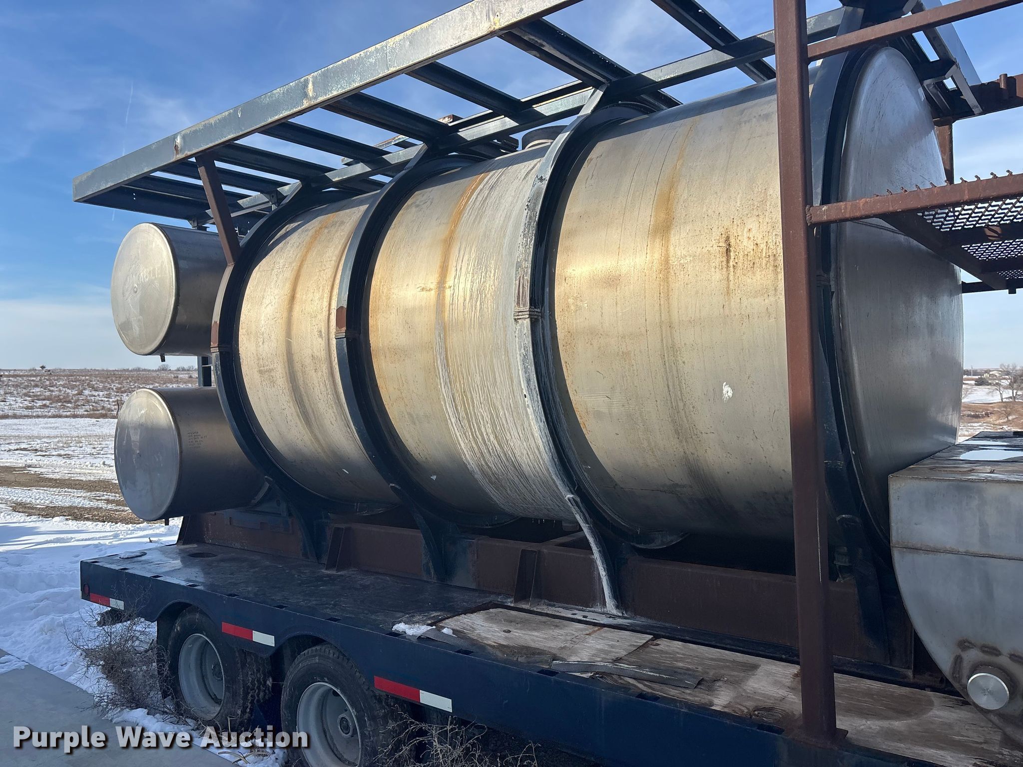 1961 Stan LB32 mixing trailer. VIN: 2973. Dimensions Overall Length: 33', Width: 96", Deck Length: 33'. Features Deck type: Steel, Wood, Approx. tank capacities: 400 gallons, 3000 gallons, 316 gallons each. Chassis Landing gear: Dual, Suspension: Spring, Brakes: Electric, Axles: Tandem. Tires Steel wheels, Size: 235/75R17.5. Kansas title. Title distribution may be delayed up to 14 days from verification of funds. Sky Copters Inc... Westmoreland, KS 66549