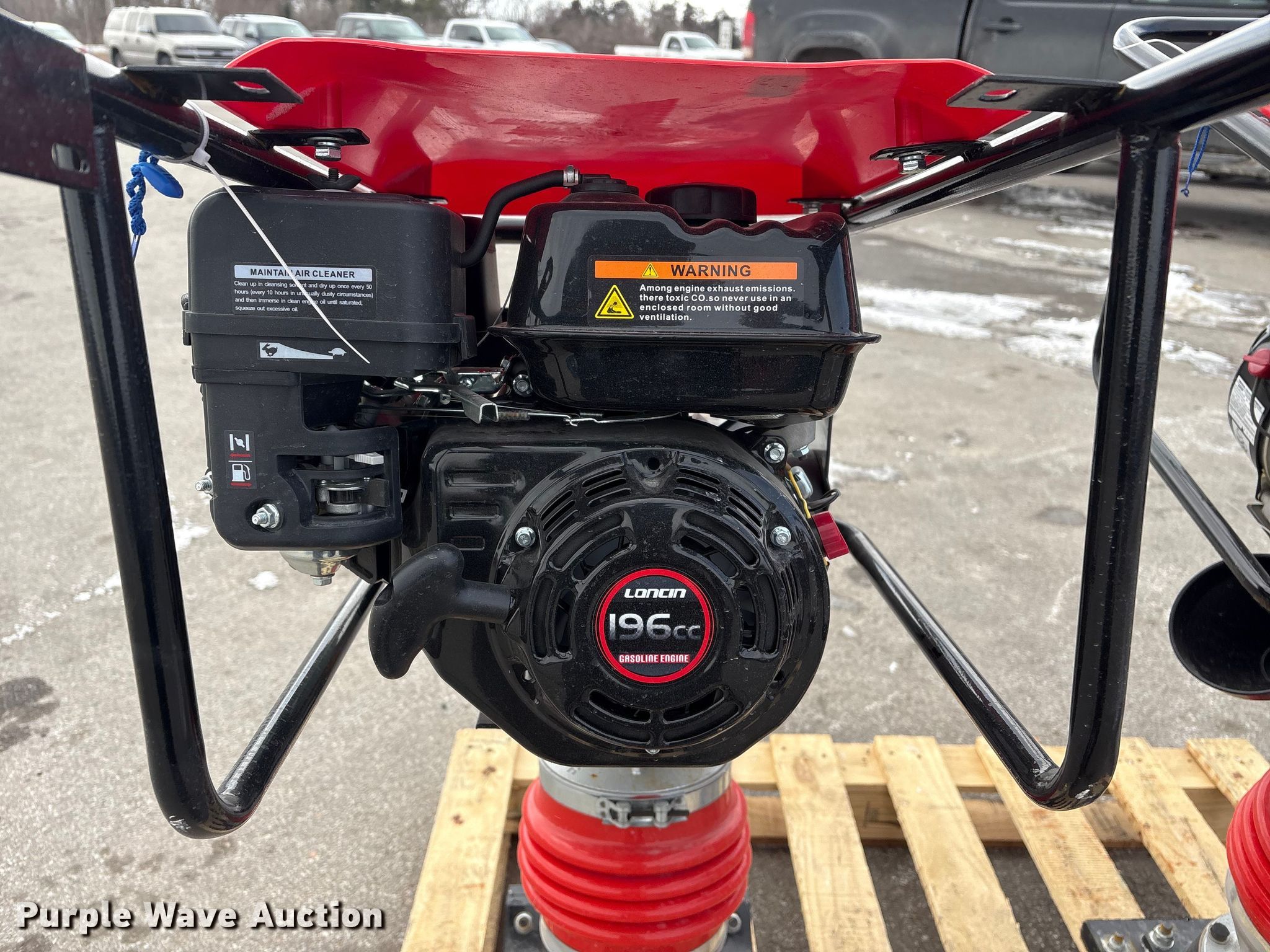 (2) 2025 Starvox HCD110 plate compactors. Serials: STV2025JT01010-4, STV2025JT01010-3. Engine Loncin G200FA, Serials: T0580025080197807, T0580025080197798, Displacement: 196 cc, Fuel type: Gas, HP: 6.5. Notes Unused. Jordan Truck and Equipment. Waterloo, NE 68069
