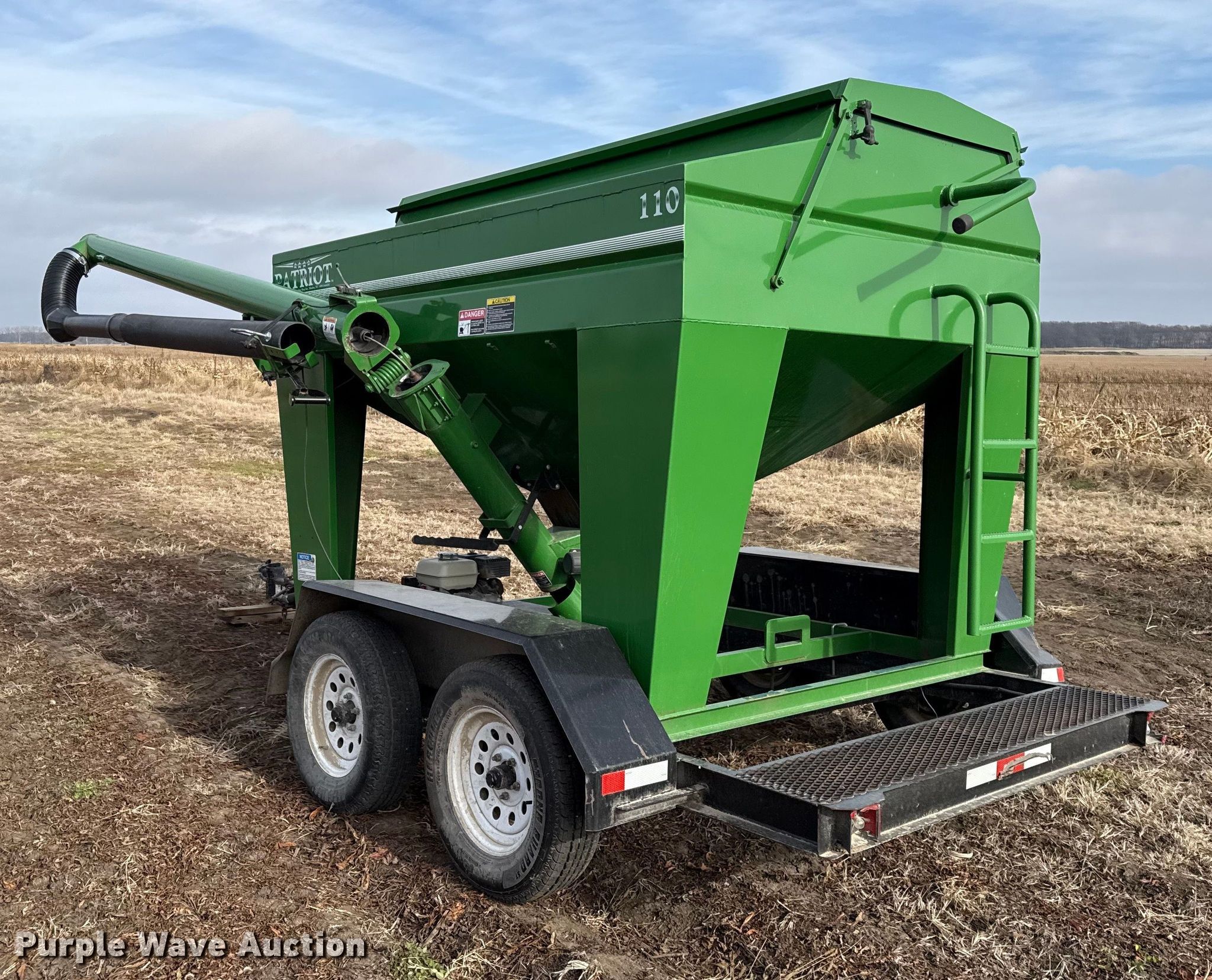 Minden Machine Shop Patriot 110 seed tender. VIN: MMS016086. Engine Honda GX160, Cylinders: 1, Fuel type: Gas. Features Capacity: 110 bushels, Auger diameter: 5", Shut-off gate: Manual, Ball hitch size: 2 5/16". Tires Size: 205/75R15. Hiegert Farms Retirement. Council Grove, KS 66846