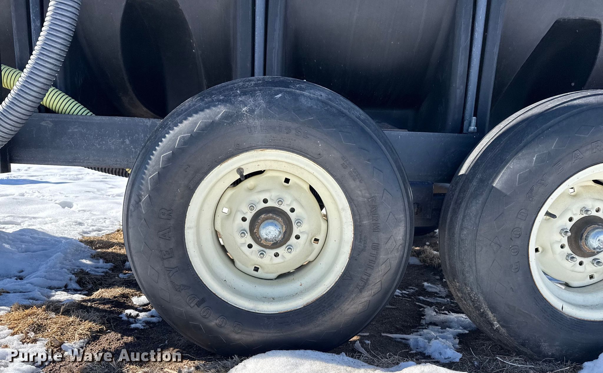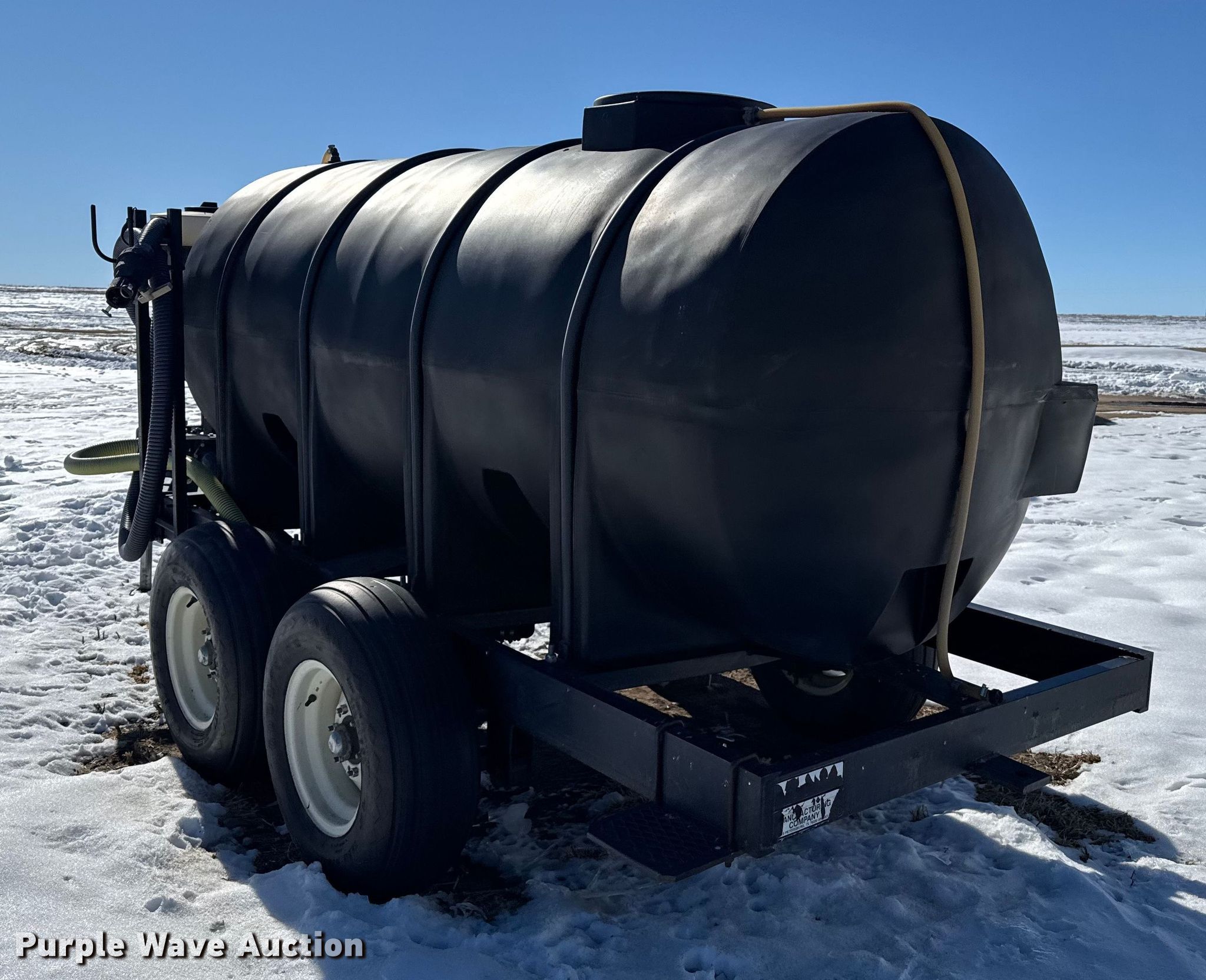 Nurse tank trailer. Dimensions. Overall Length: 16', Width: 79". Features Tank type: Poly Capacity: 1,000 gallons, Sight glass, Pump. Chassis Landing gear: Single, Suspension: Spring, Axles: Tandem. Tires Steel wheels, Size: 11L-15SL. This is worksite support equipment and will not come with a title. Transfer of ownership documentation will be a bill of sale. Kendall, KS 67857