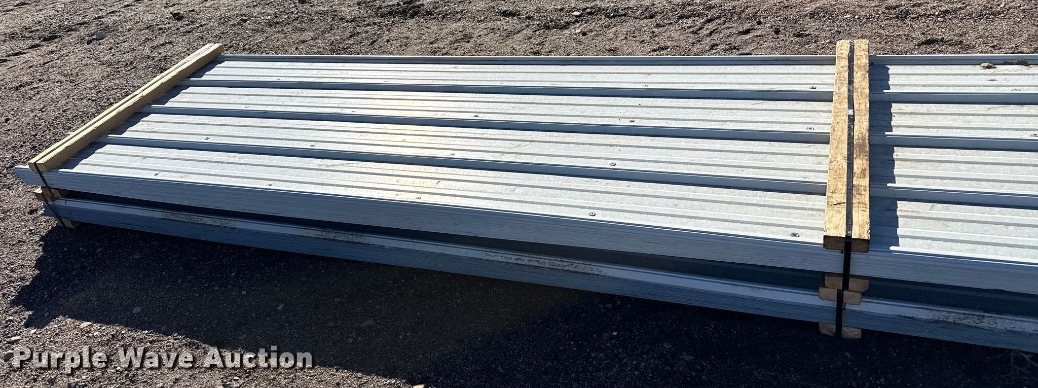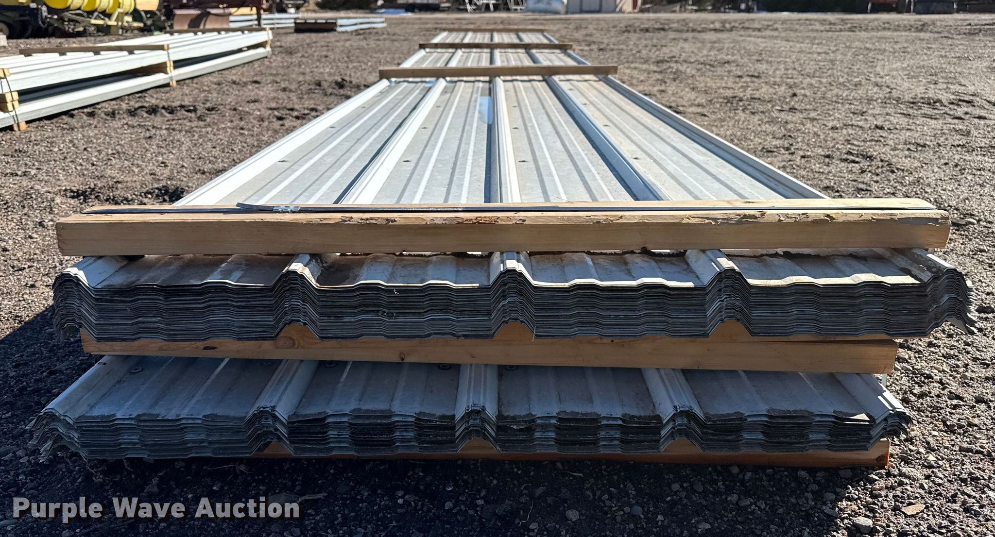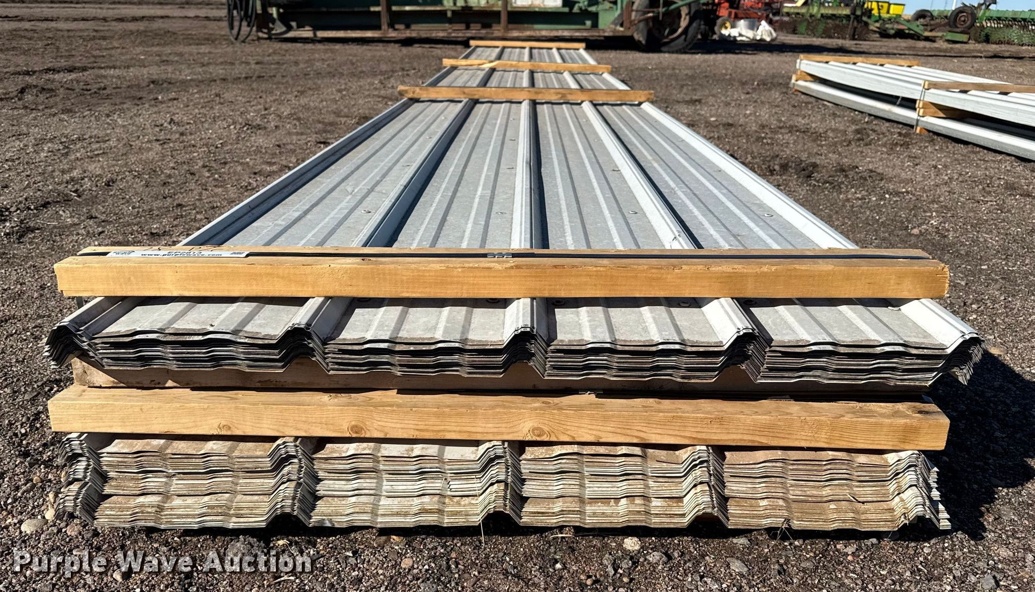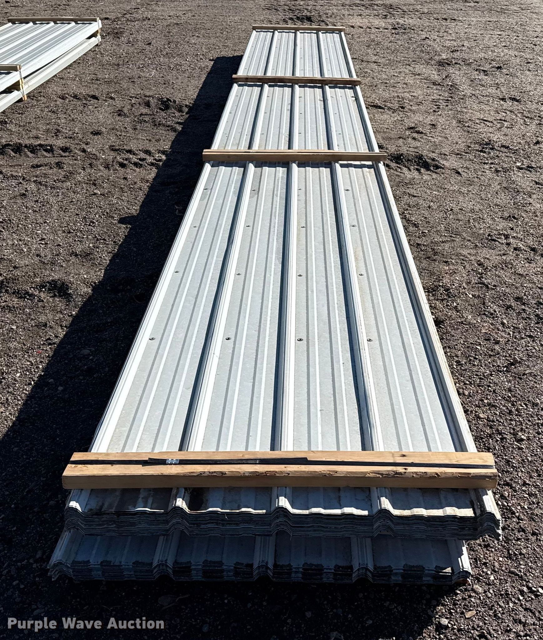 Purple Wave is selling a used Building Materials in Kansas. This item is a (78) sheets of metal siding/roofing with the following: 24' 6" L x 36" W