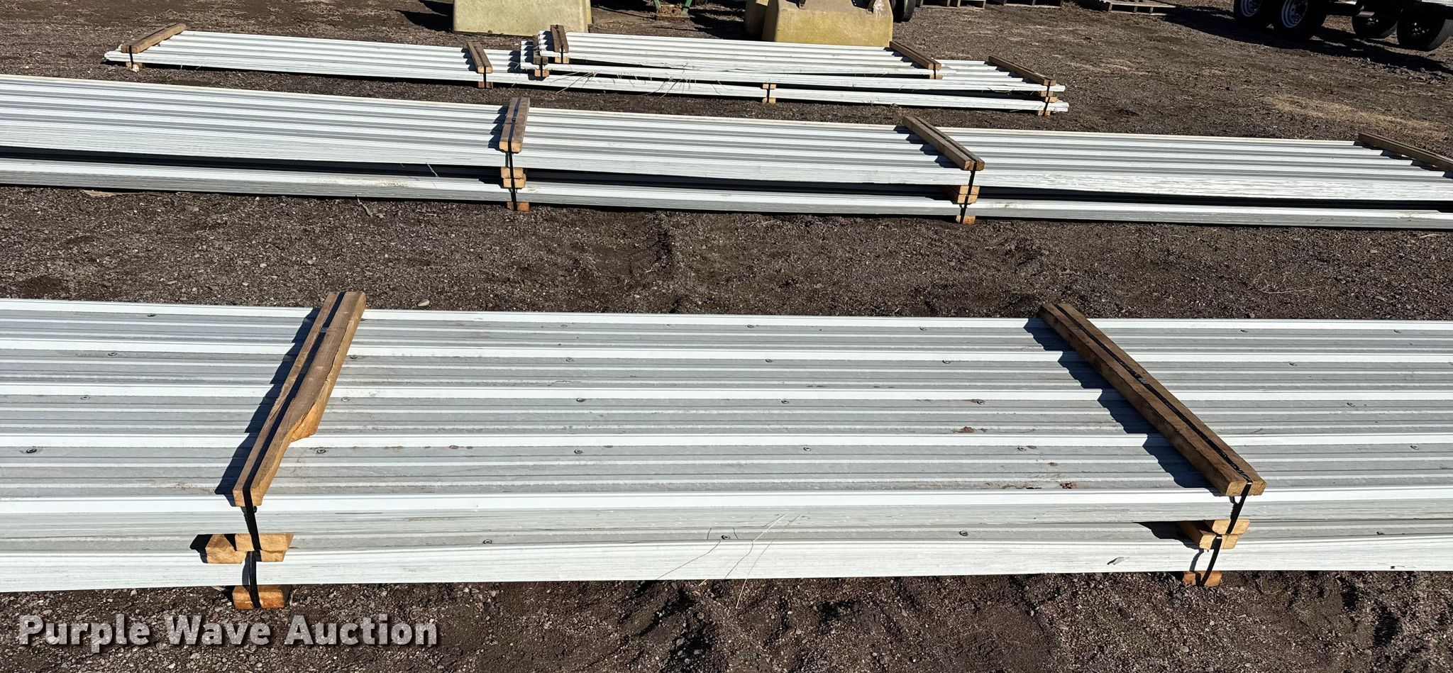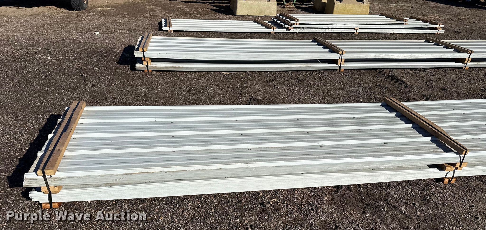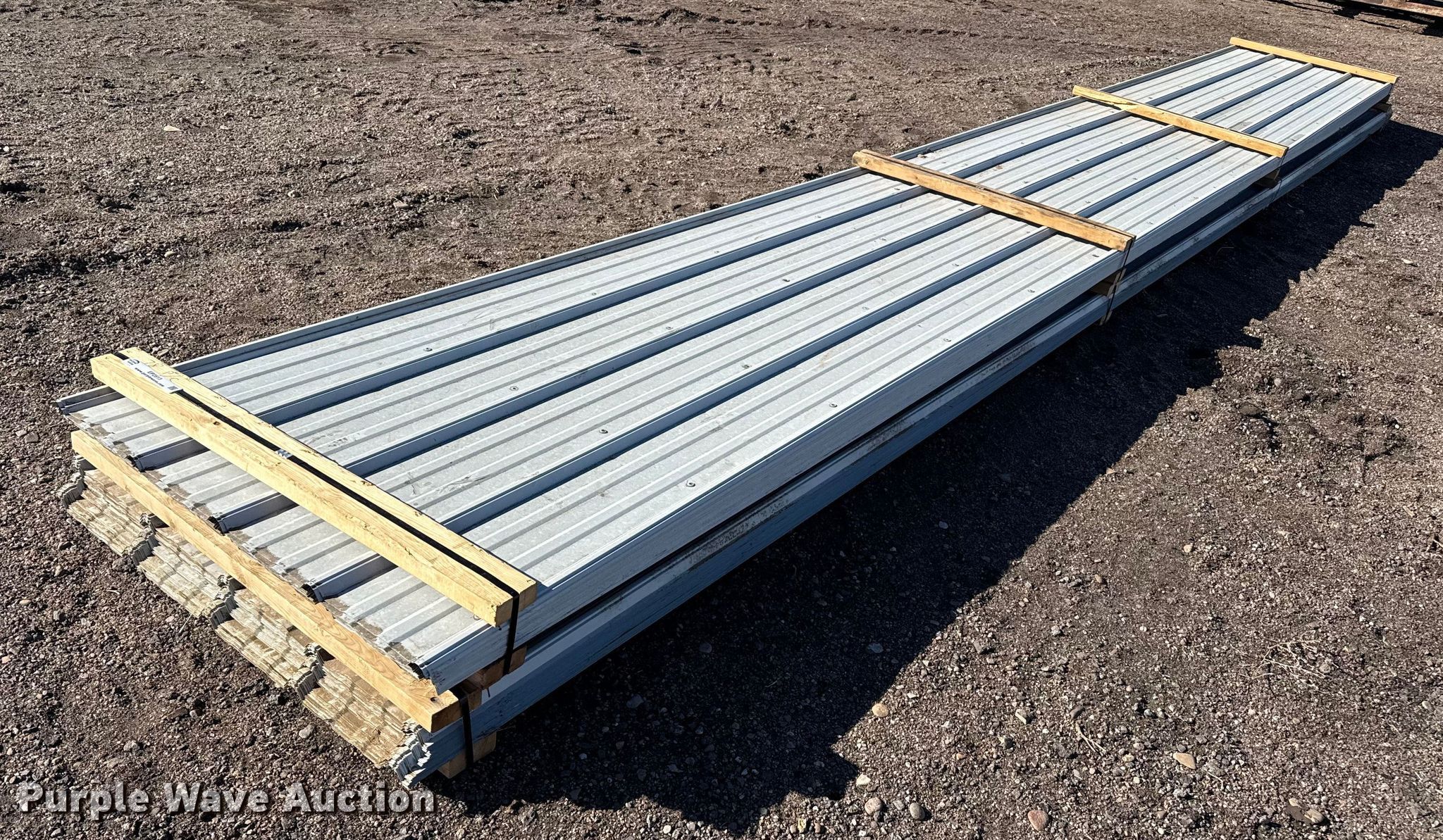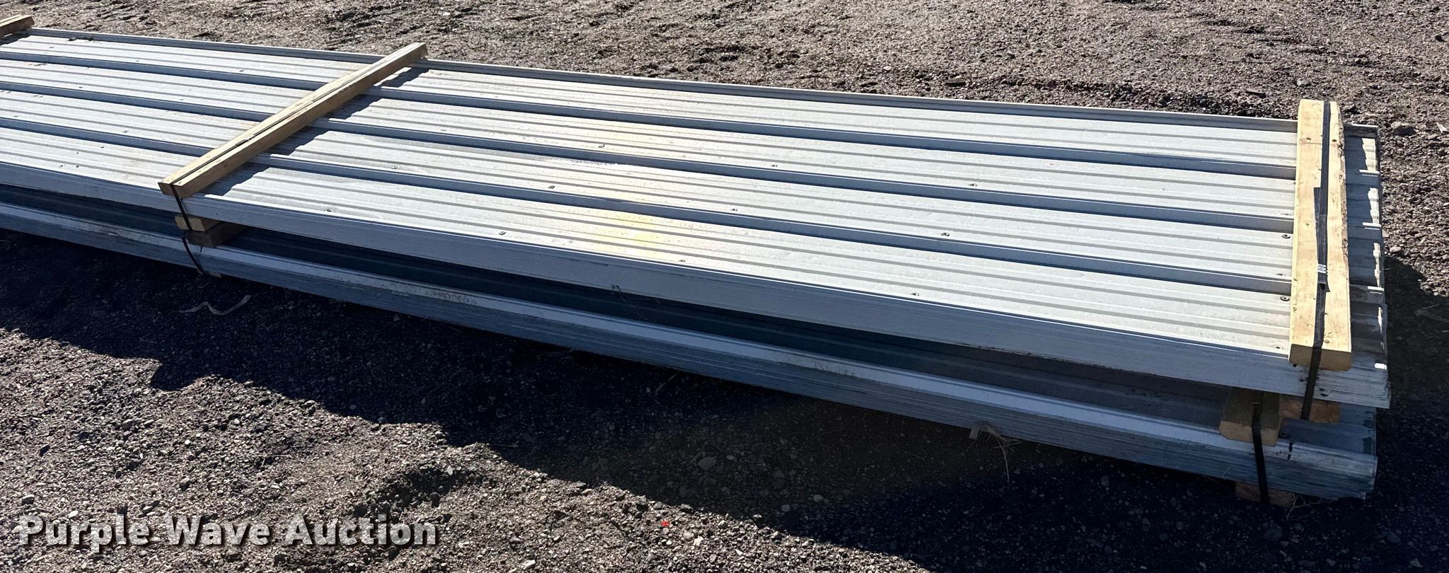 Purple Wave is selling a used Building Materials in Kansas. This item is a (78) sheets of metal siding/roofing with the following: 24' 6" L x 36" W