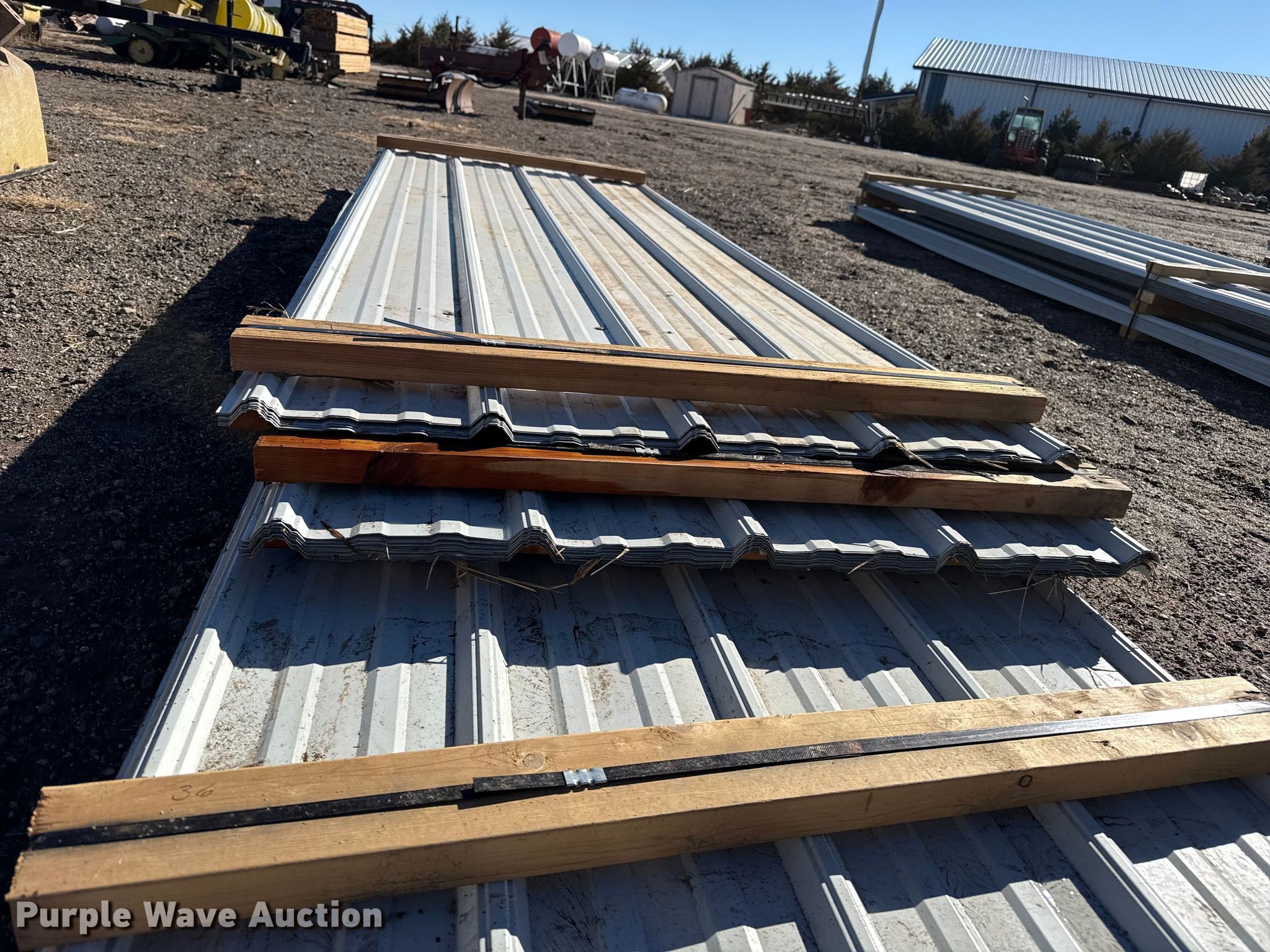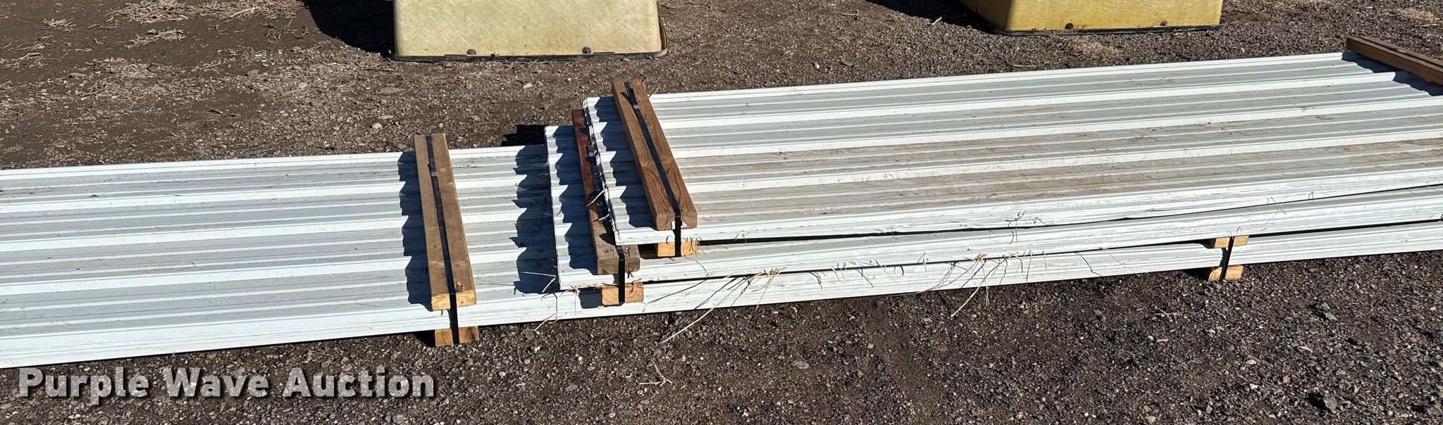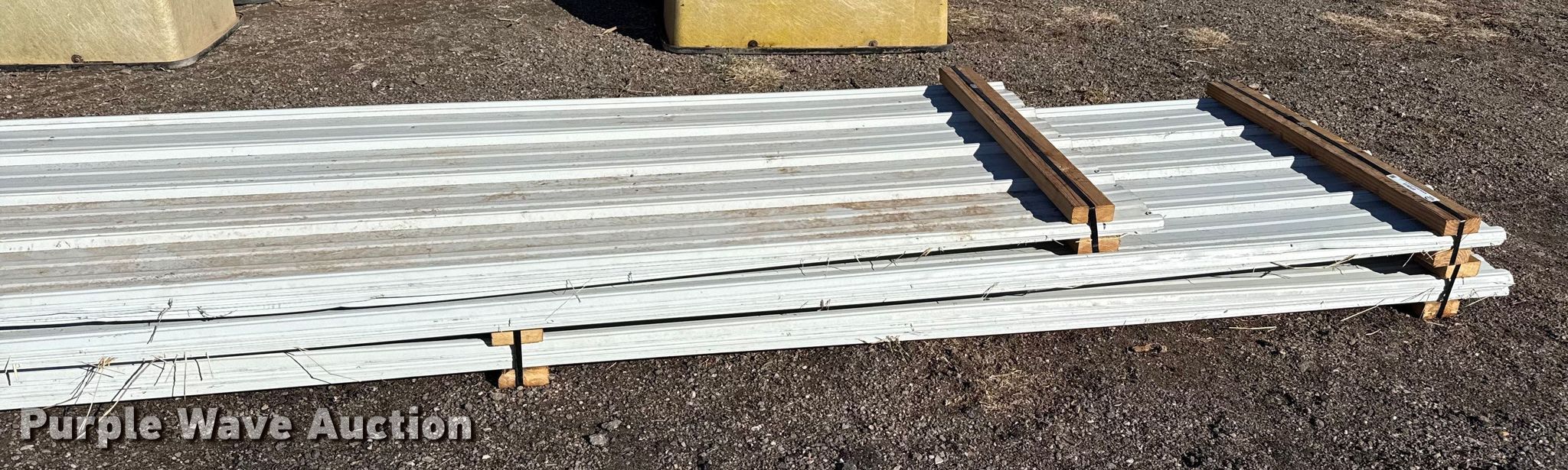 Purple Wave is selling a used Building Materials in Kansas. This item is a (70) sheets of metal siding/roofing with the following: (13) 9' L, (21) 12' L, (36) 20' L, Width: 36"