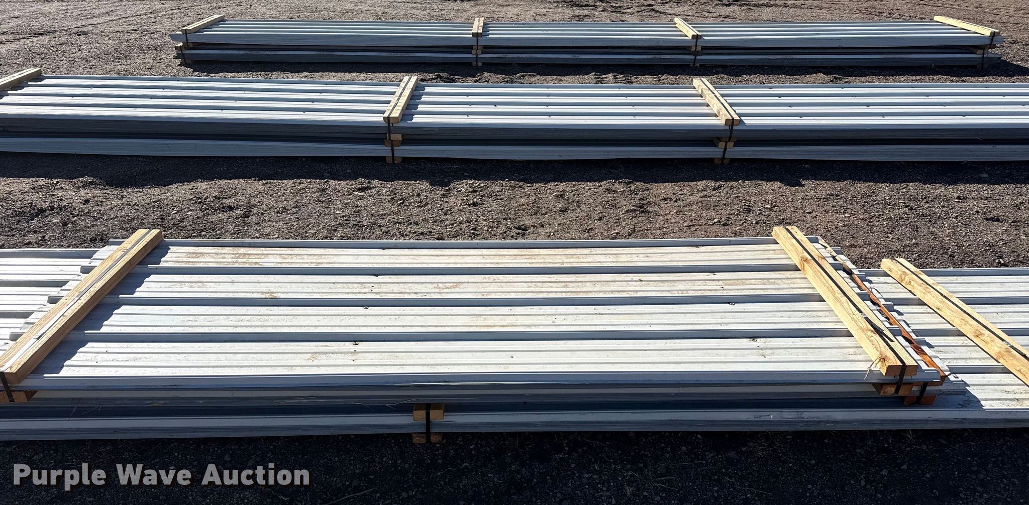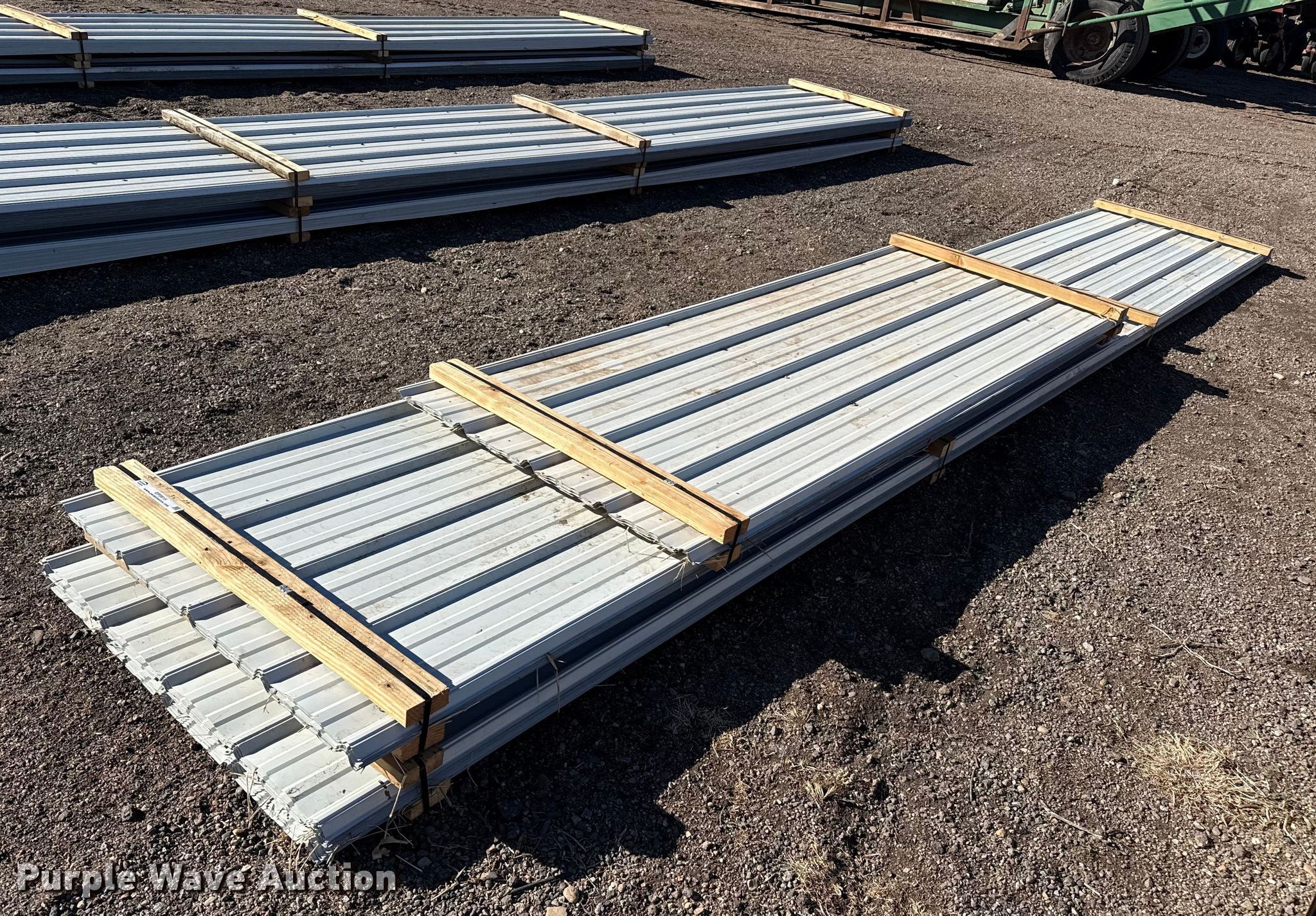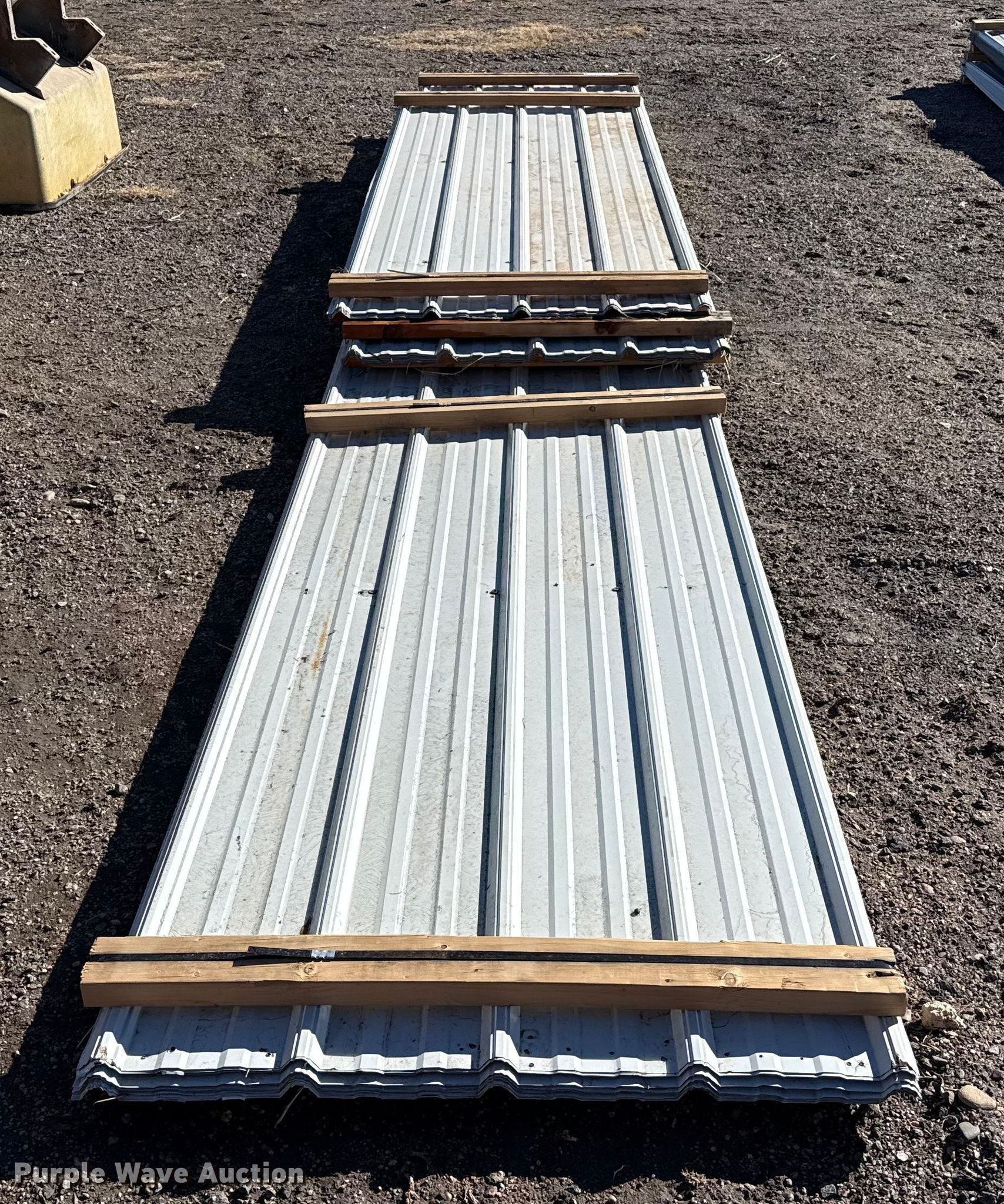 Purple Wave is selling a used Building Materials in Kansas. This item is a (70) sheets of metal siding/roofing with the following: (13) 9' L, (21) 12' L, (36) 20' L, Width: 36"