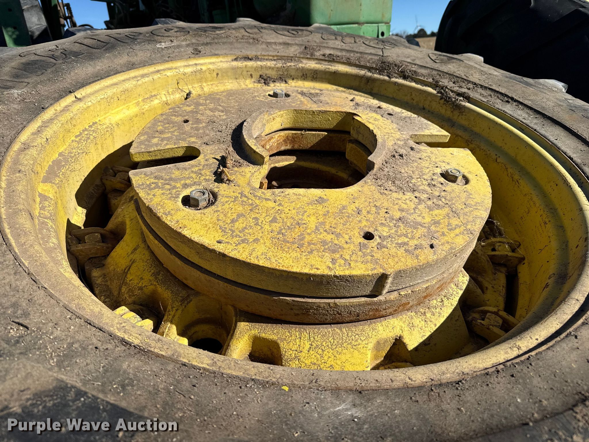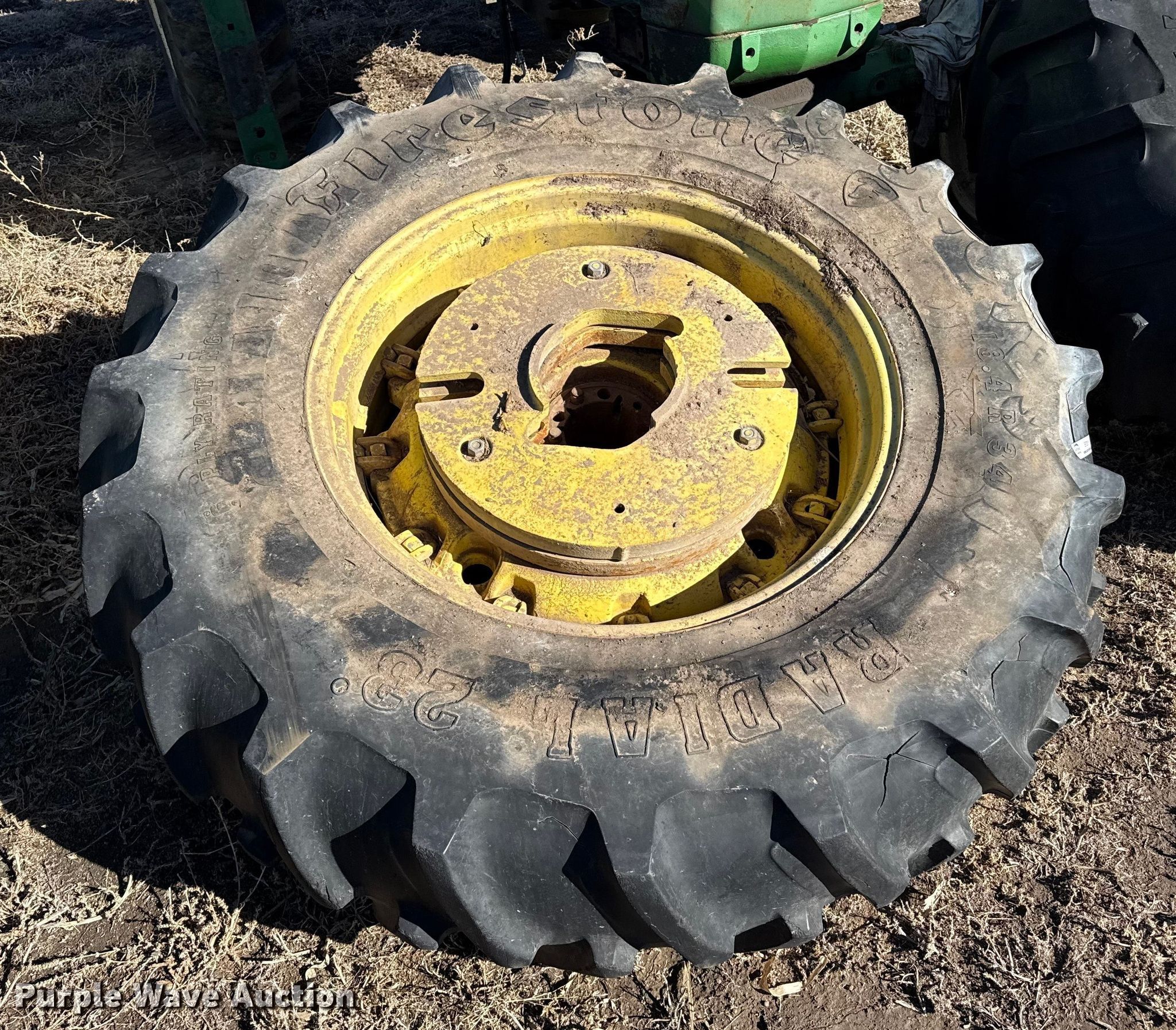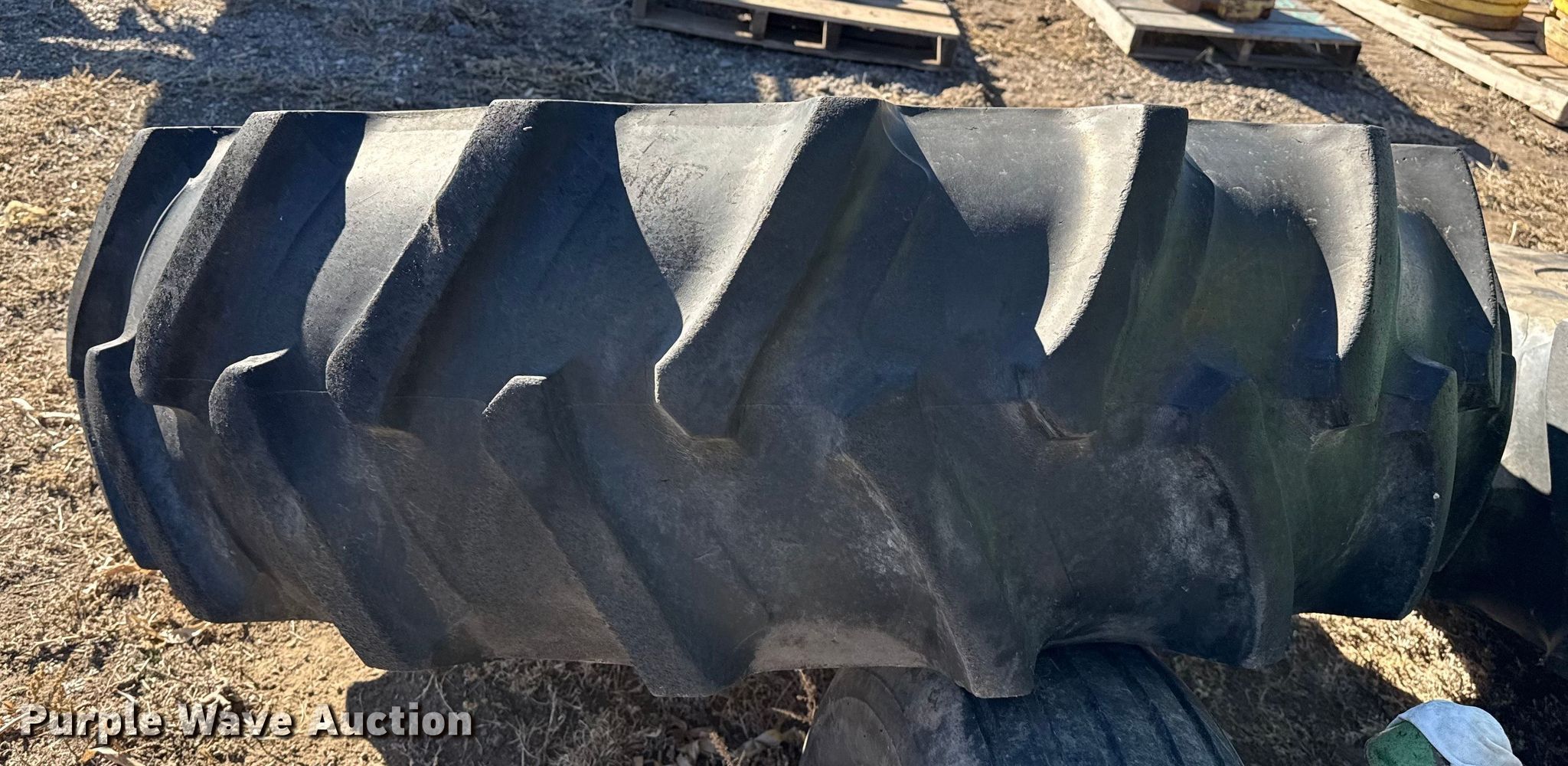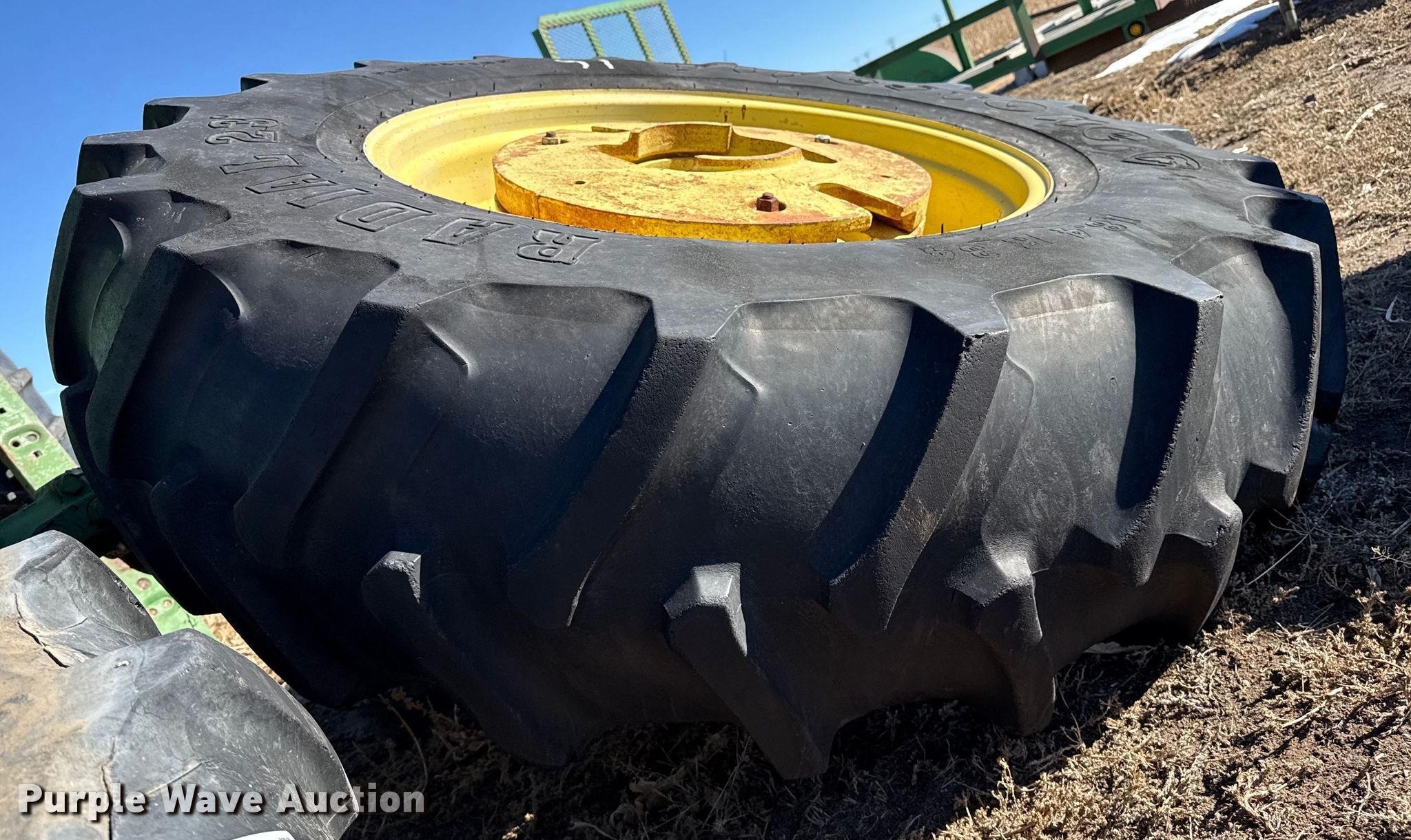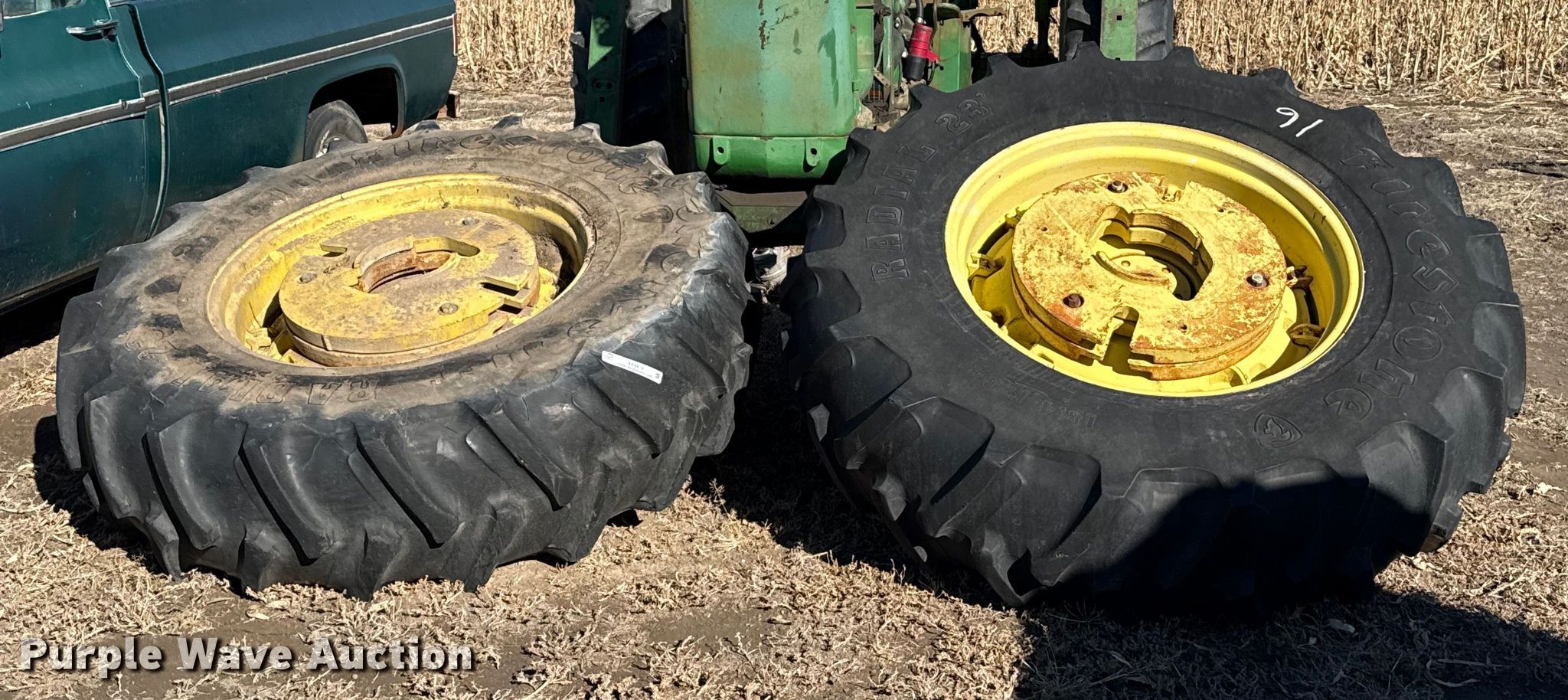 Purple Wave is selling a used Industrial Tires or Tracks in Kansas. This item is a (2) 18.4R34 tires and wheels with the following: (4) wheel weights, Fits John Deere 4020 tractor