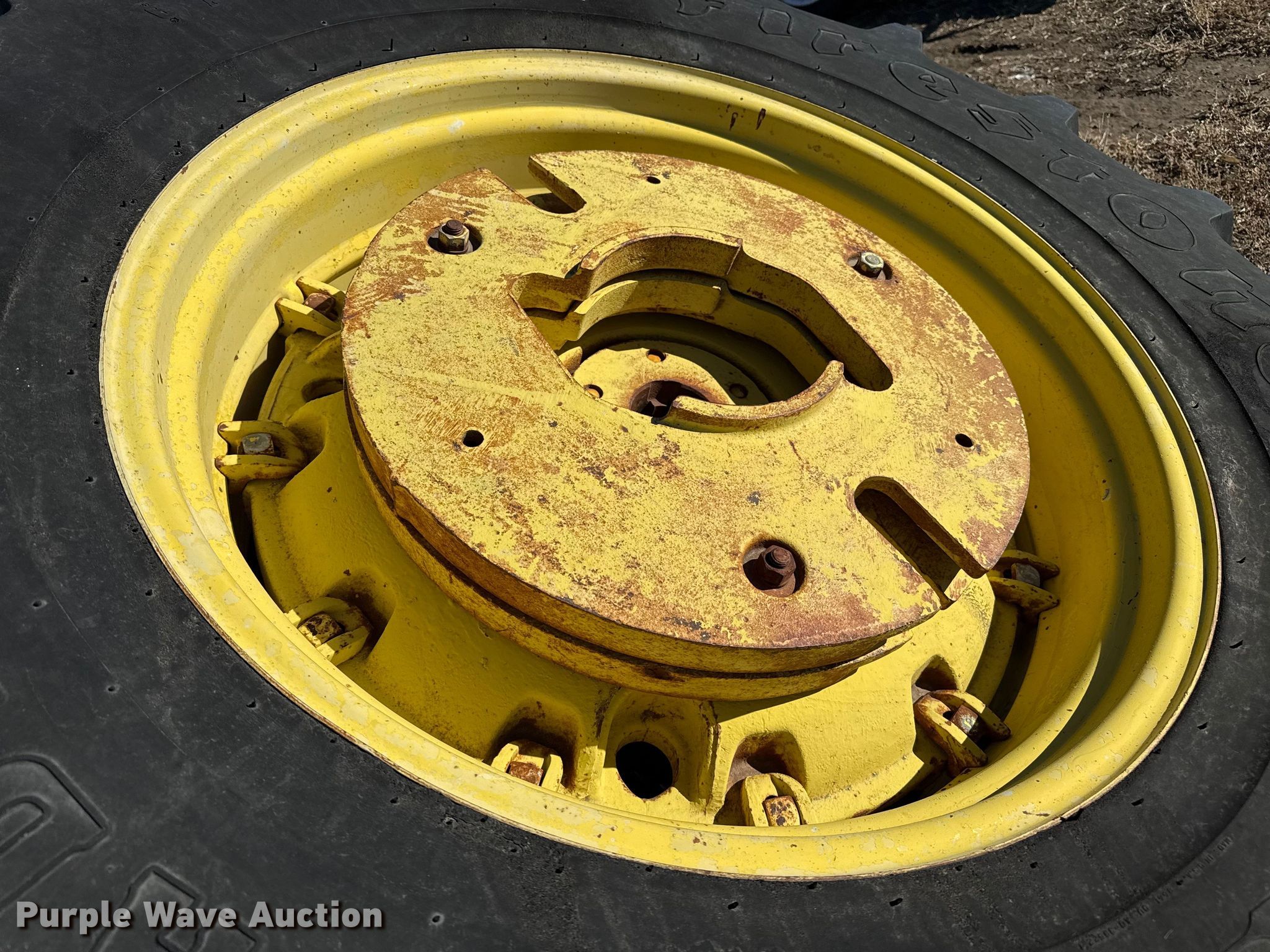 (2) 18.4R34 tires and wheels. (4) wheel weights, Fits John Deere 4020 tractor. Ulysses, KS 67880
