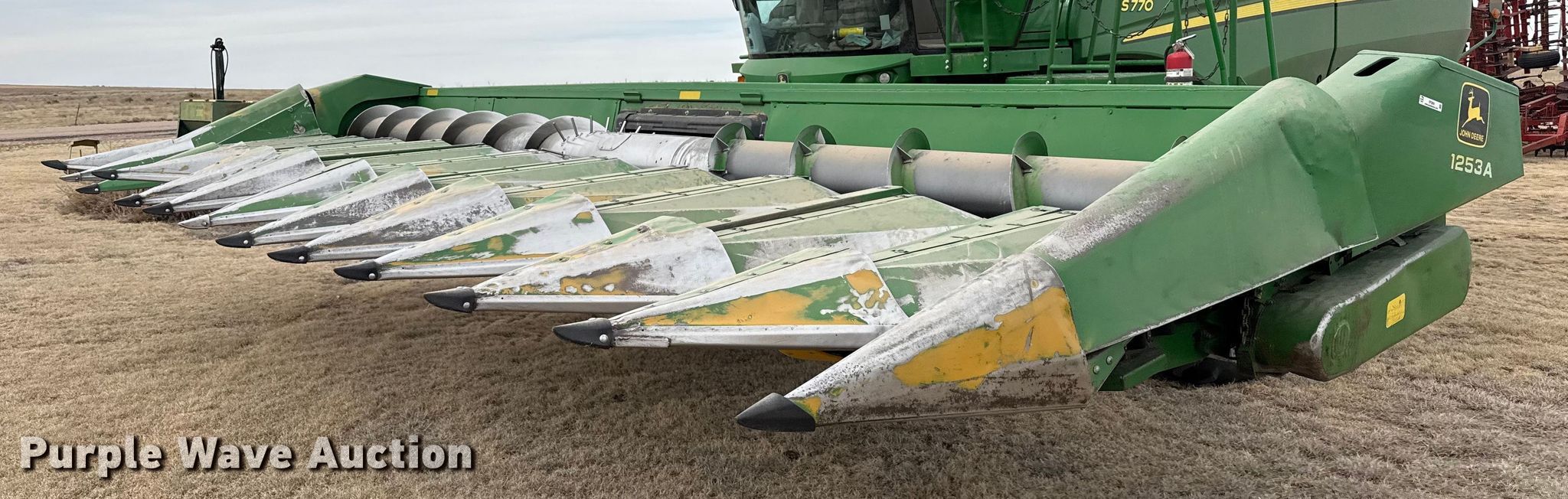 Purple Wave is selling a used Corn or Row Head in Oklahoma. This item is a John Deere 1253A all-crop head with the following: Rows: 12, Row spacing: 30", Drivelines: Dual