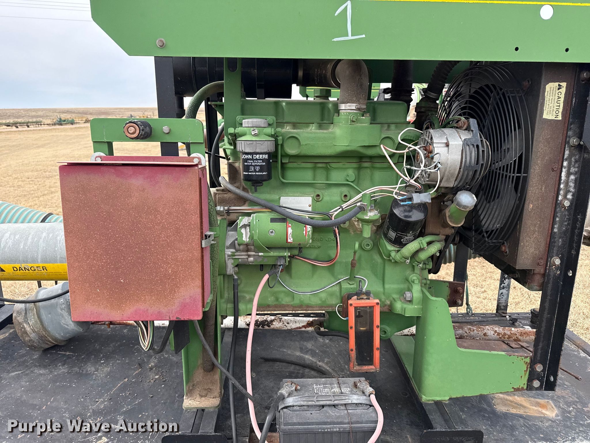 Lagoon pump trailer. Hours: 5,810 on meter. Dimensions Overall Length: 13', Width: 60". Engine John Deere, Serial: T040392566204, Cylinders: 4, Fuel type: Diesel. Features Fuel capacity: 180 gallons, Hoses Widths: 9", 5". Tires Size: 205/90R15. Notes Non-operational flow meter. This is worksite support equipment and will not come with a title. Transfer of ownership documentation will be a bill of sale. Optima, OK 73945