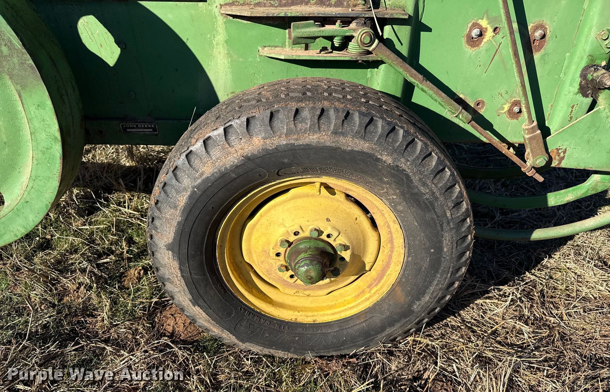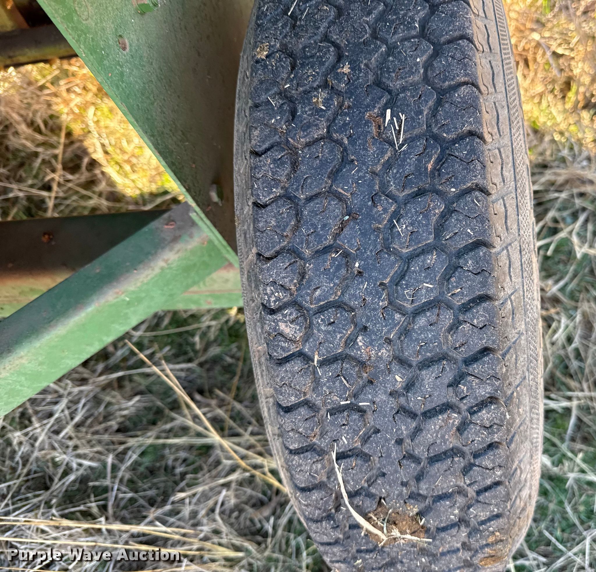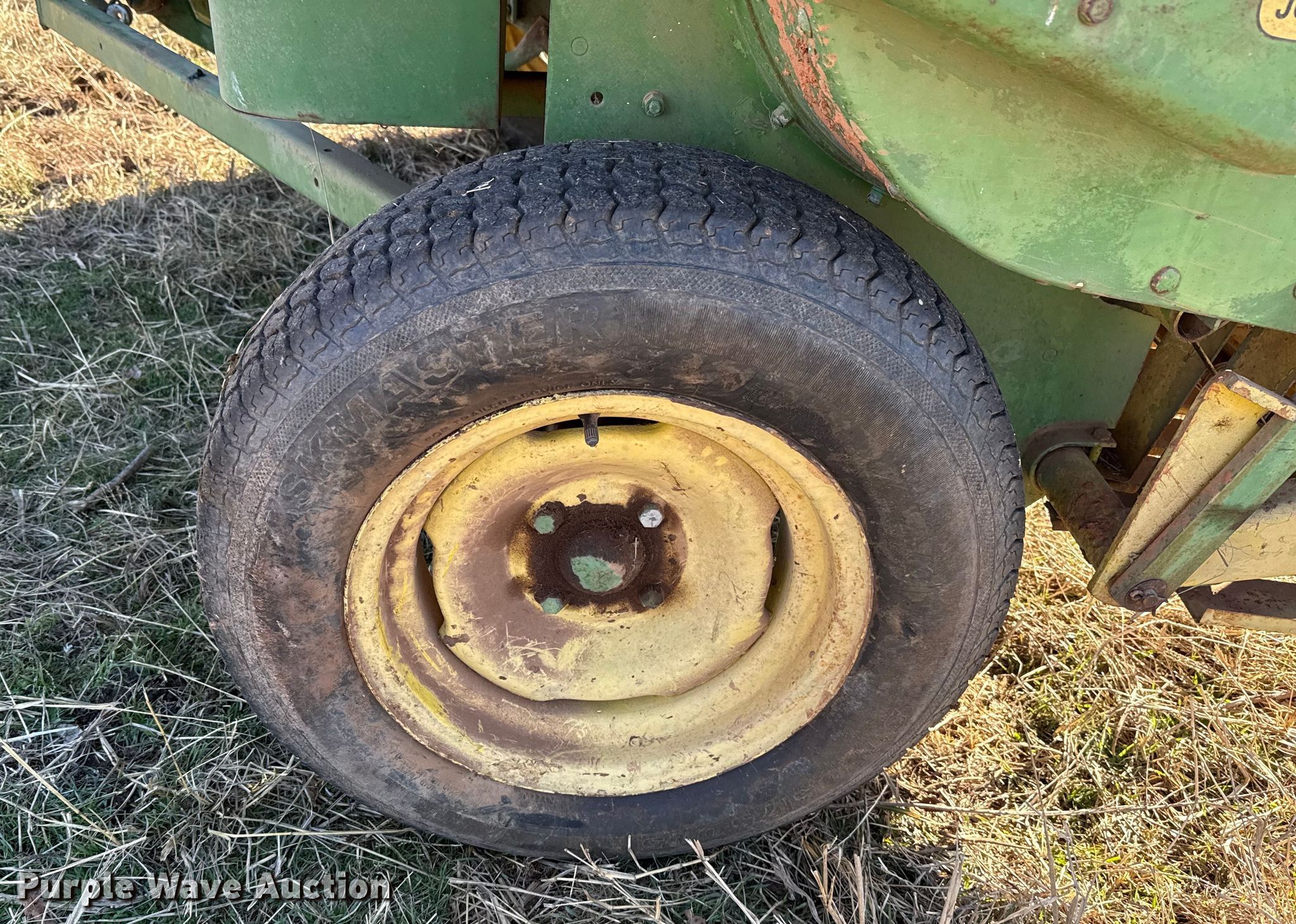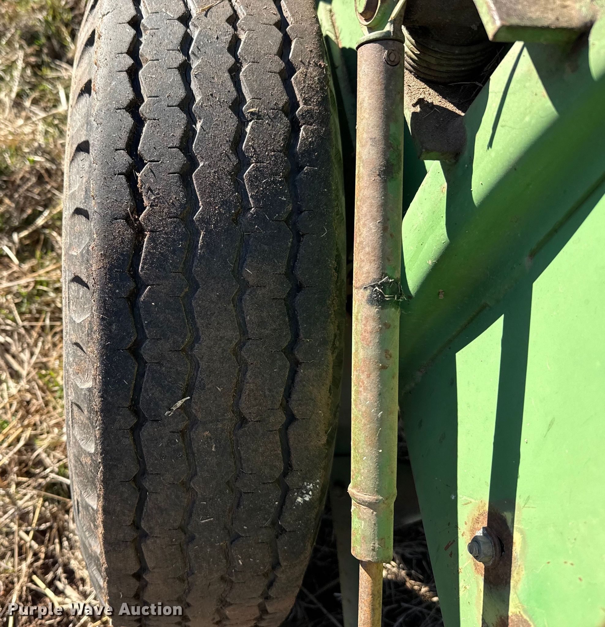John Deere 224T small square baler. Serial: 014743E. Features PTO: 540, Pickup width: 52', Small square bale size: 14" x 18", Knotters Quantity: 2, Twine tie, Wire tie, Bale chute. Tires Size: ST205/75D15. Stillwater, OK 74074