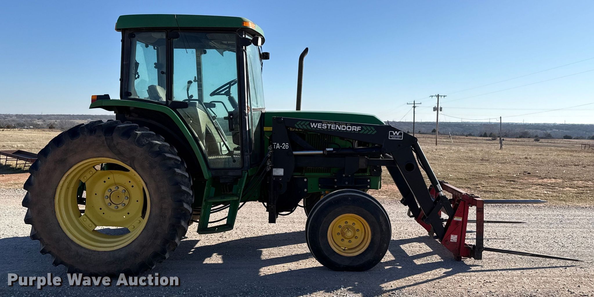 Purple Wave is selling a used Tractor in Oklahoma. This item is a John Deere 6405 tractor with the following: Hours: 2,396 on meter