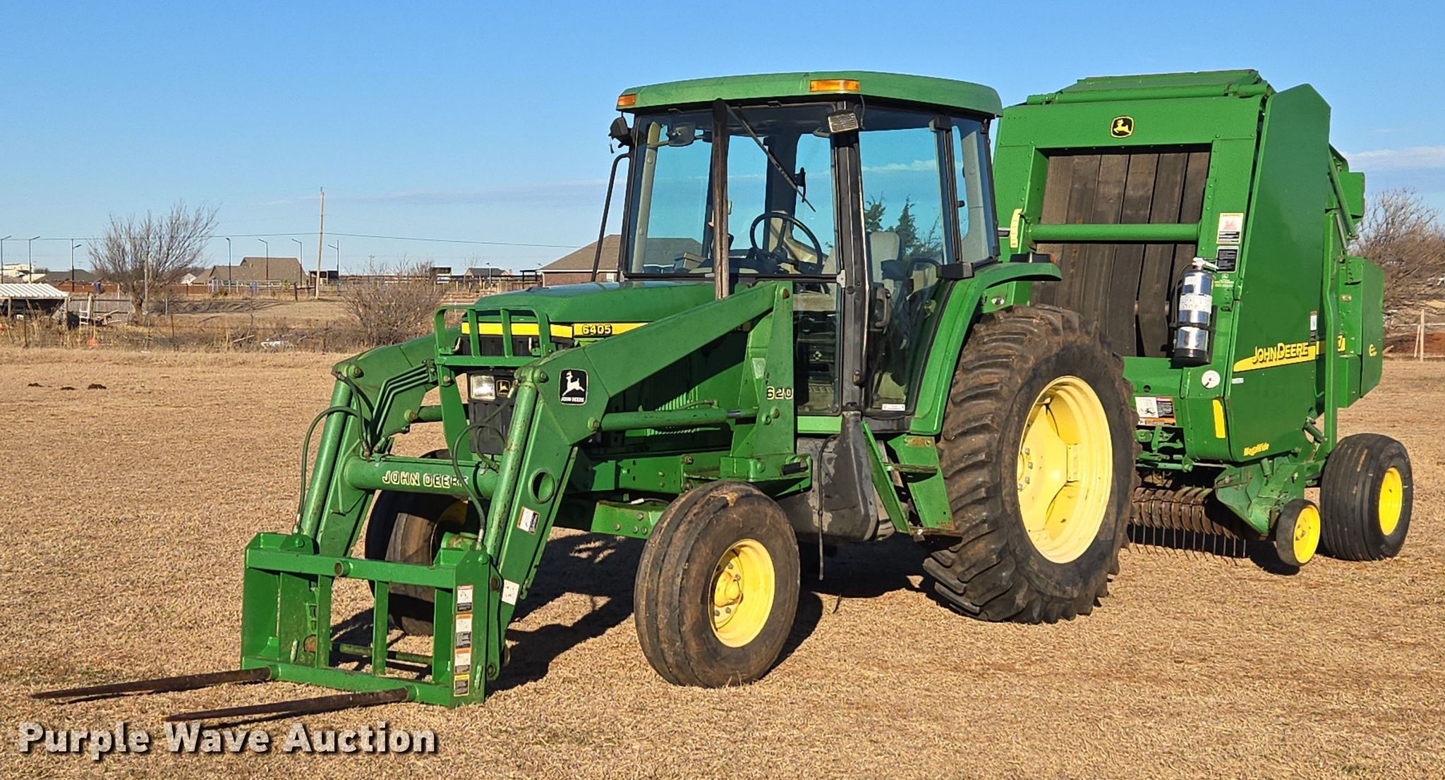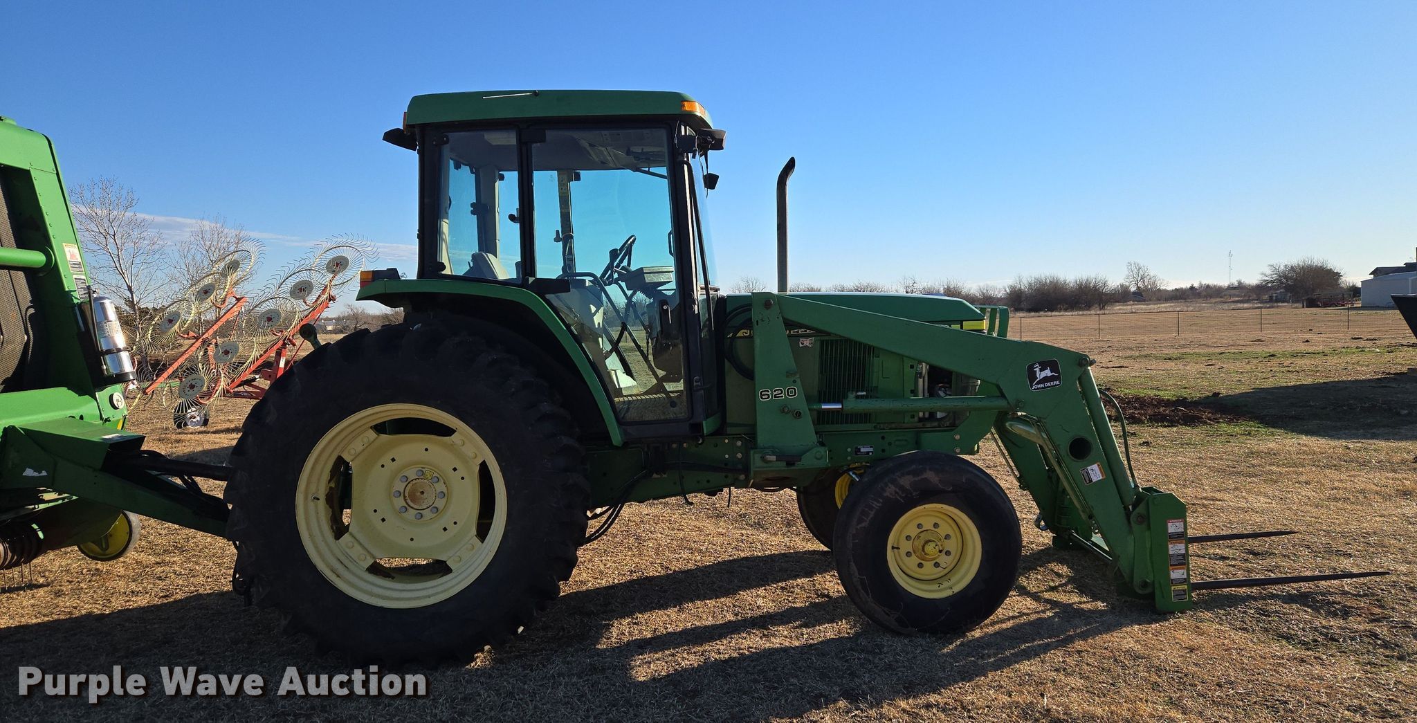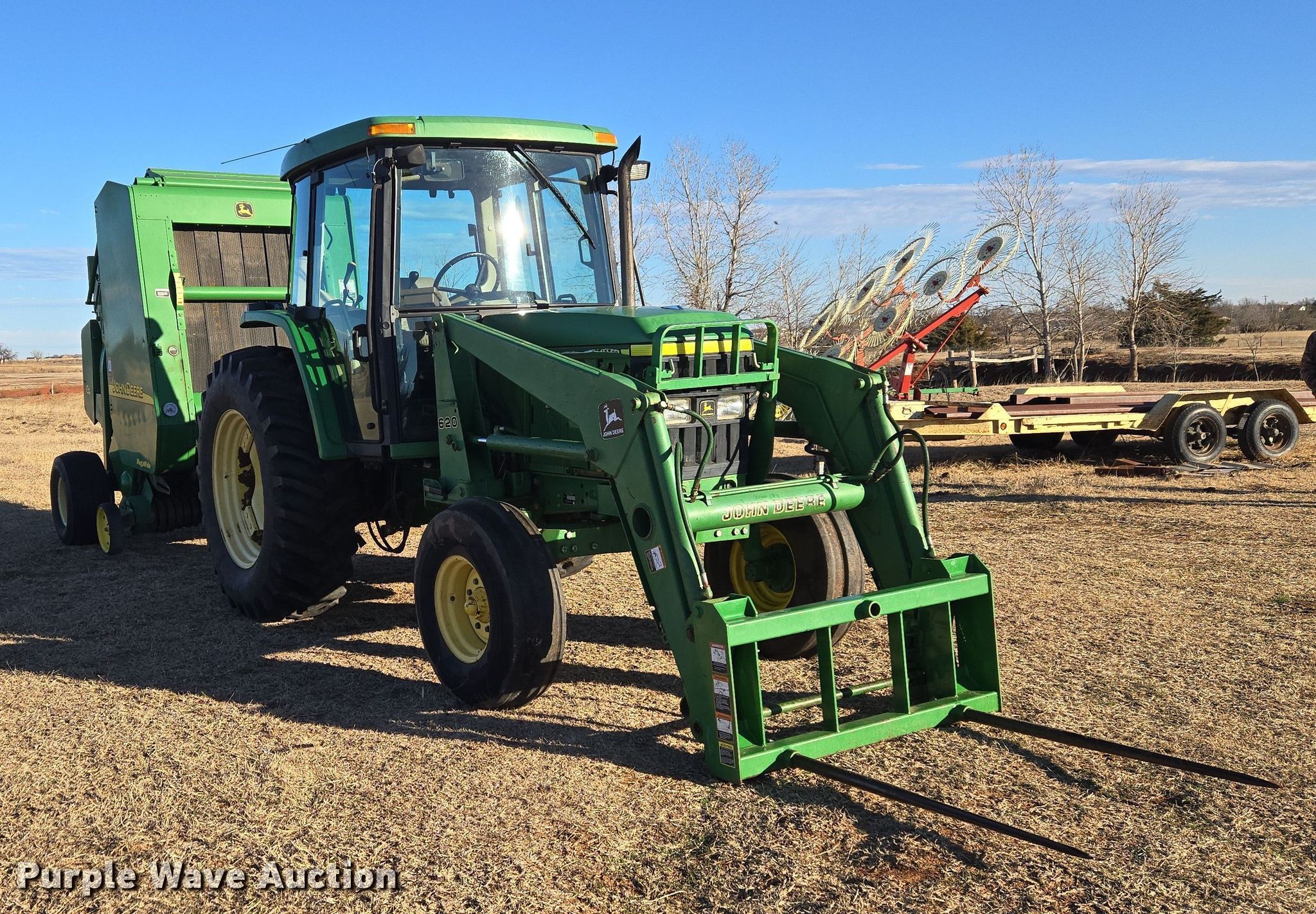 Purple Wave is selling a used Tractor in Oklahoma. This item is a 2001 John Deere 6405 tractor with the following: Hours: 6 on meter, Hours: Unknown, Serial: L06405H299416