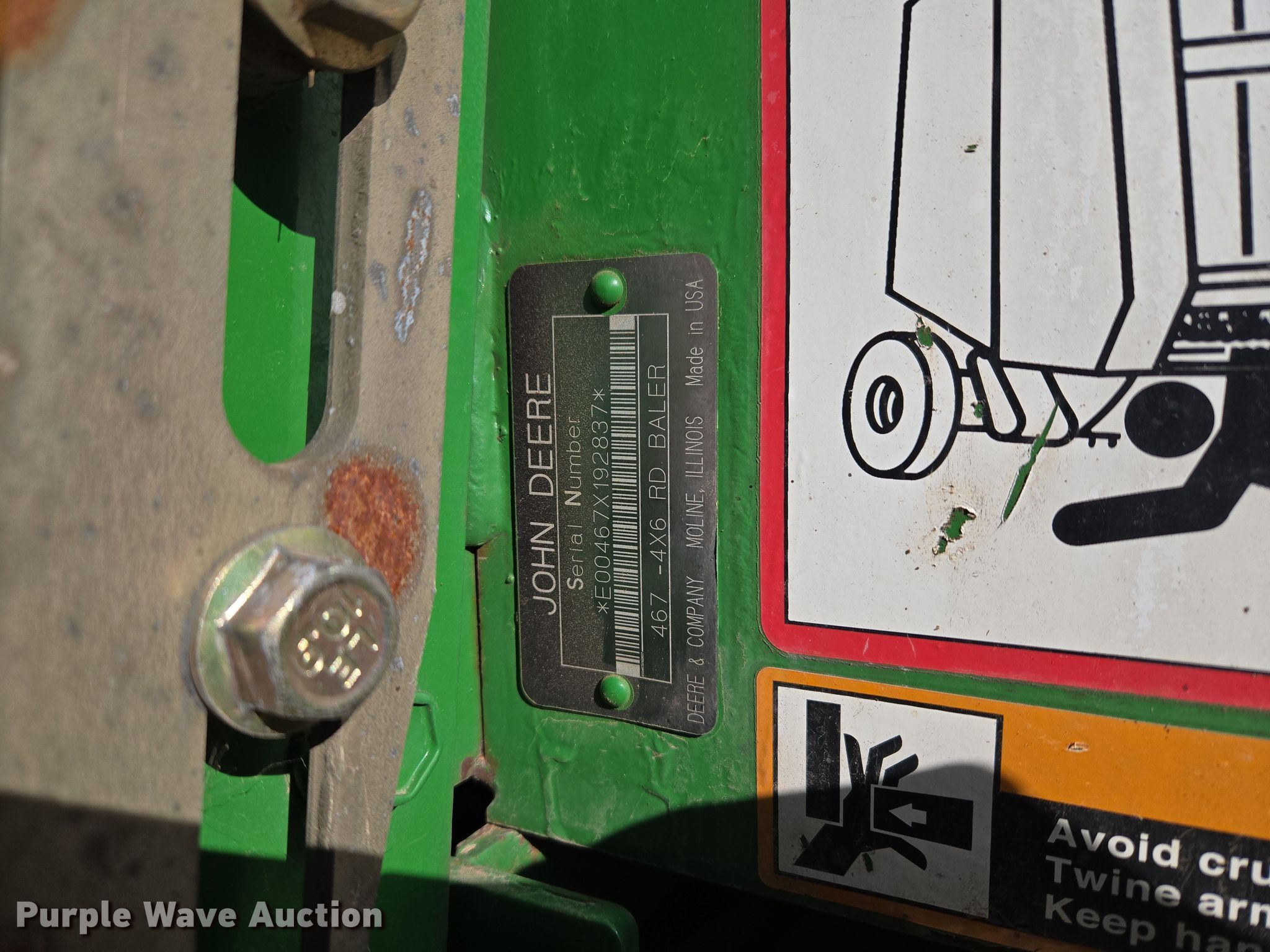 Purple Wave is selling a used Round Baler in Oklahoma. This item is a John Deere 467 round baler with the following: Serial: E00467X192837