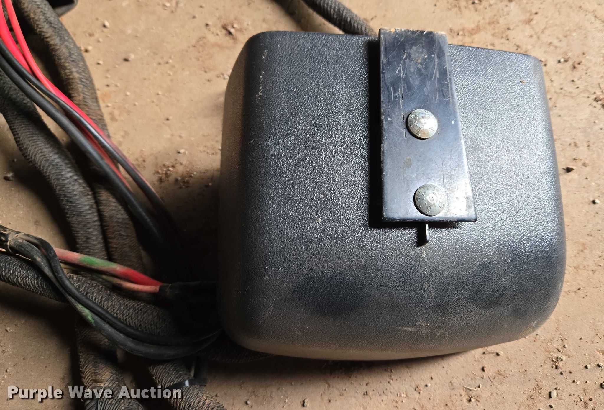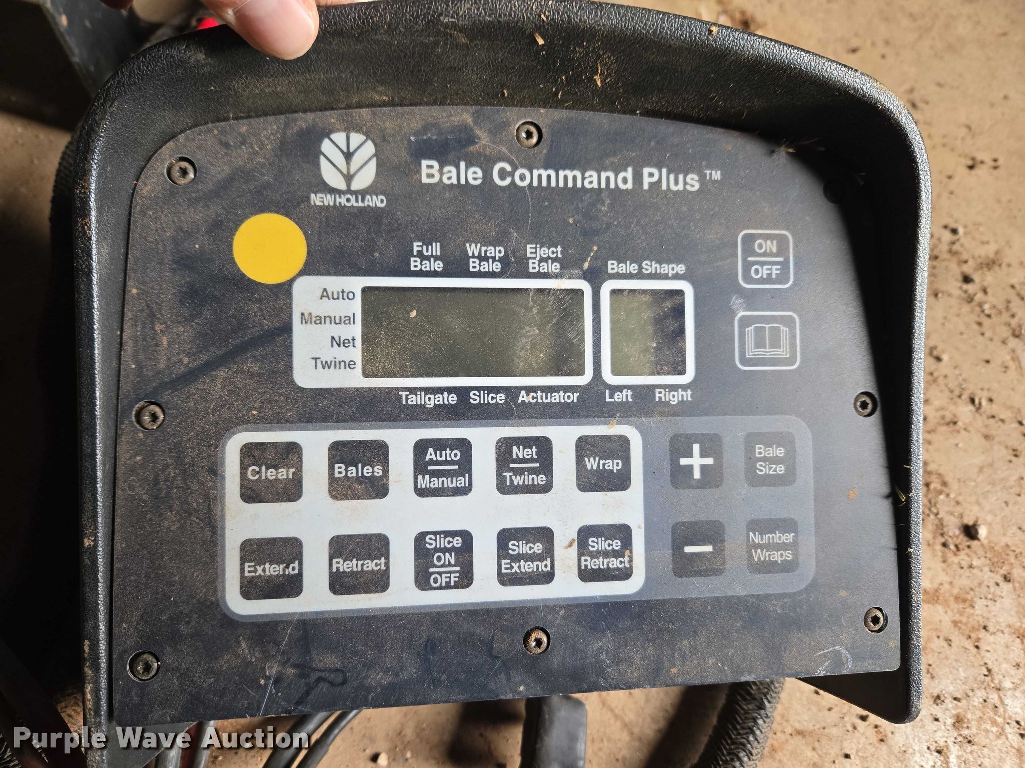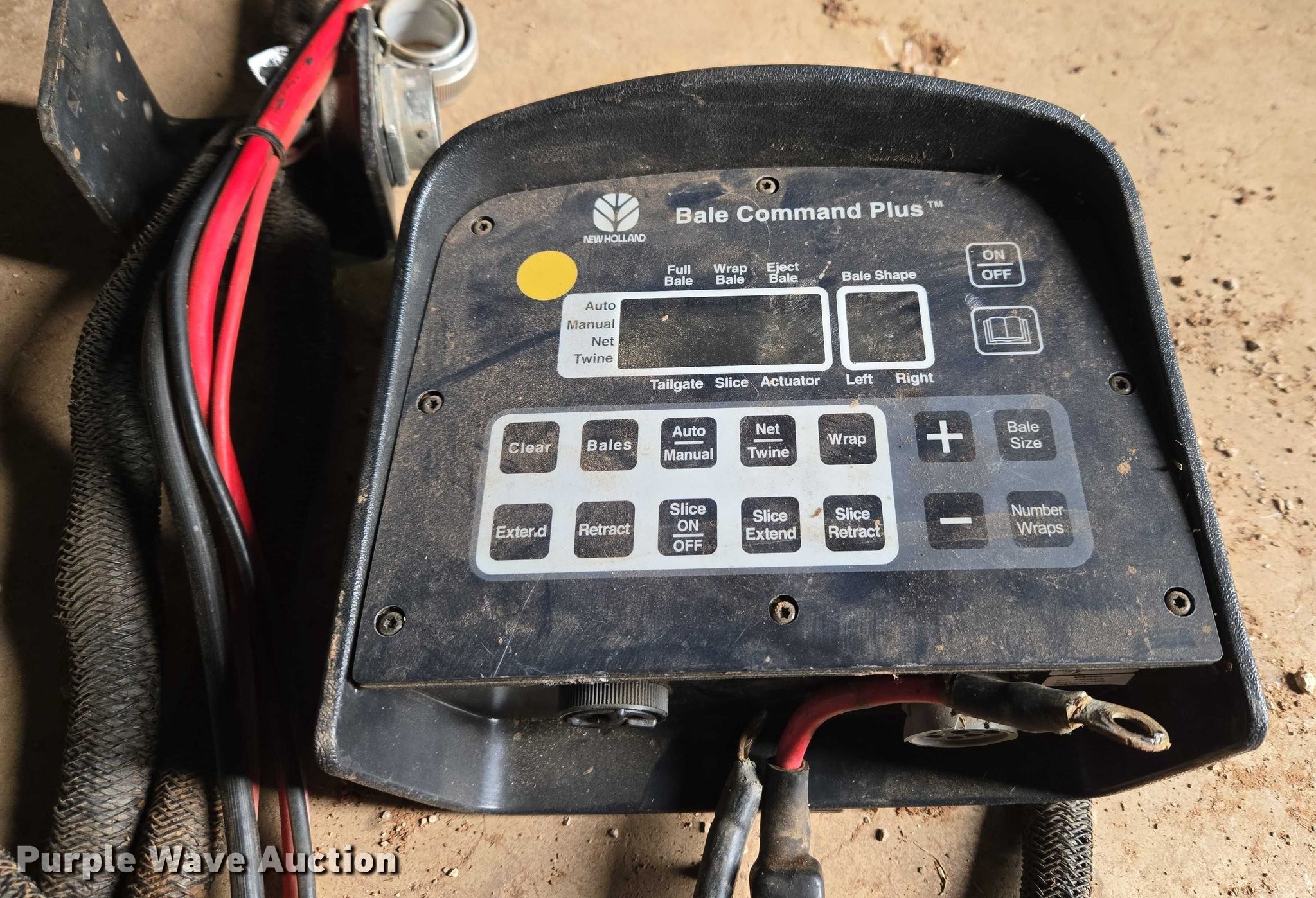 New Holland BR7090 round baler. Serial: Y8N036452, Insurance Salvage Unit Claim #: 5-815207. Features PTO: 1000, Monitor New Holland Bale Command Plus, Gauge wheels Size: 4.80-8, Pickup width: 7' 5", Bale size: 5' x 6', Net-wrap, Bale ramp. Tires Size: 480/45-17 IMP. Notes Fire damage, PTO half shaft missing, Non-operational unit. Oklahoma Farm Bureau Insurance. Douglas, OK 73733