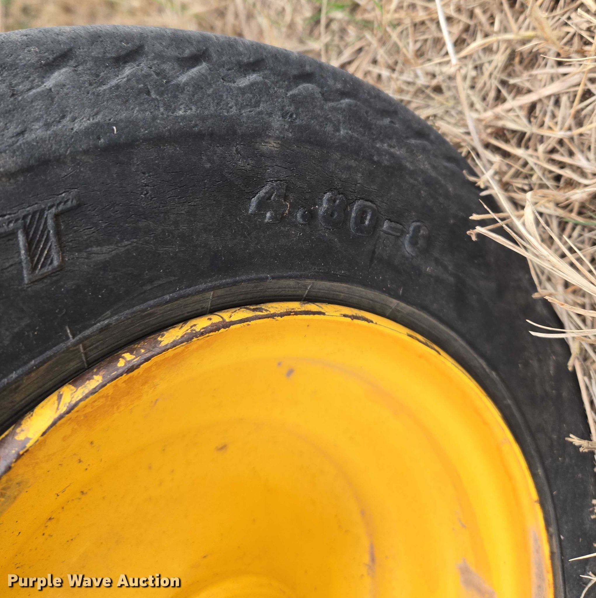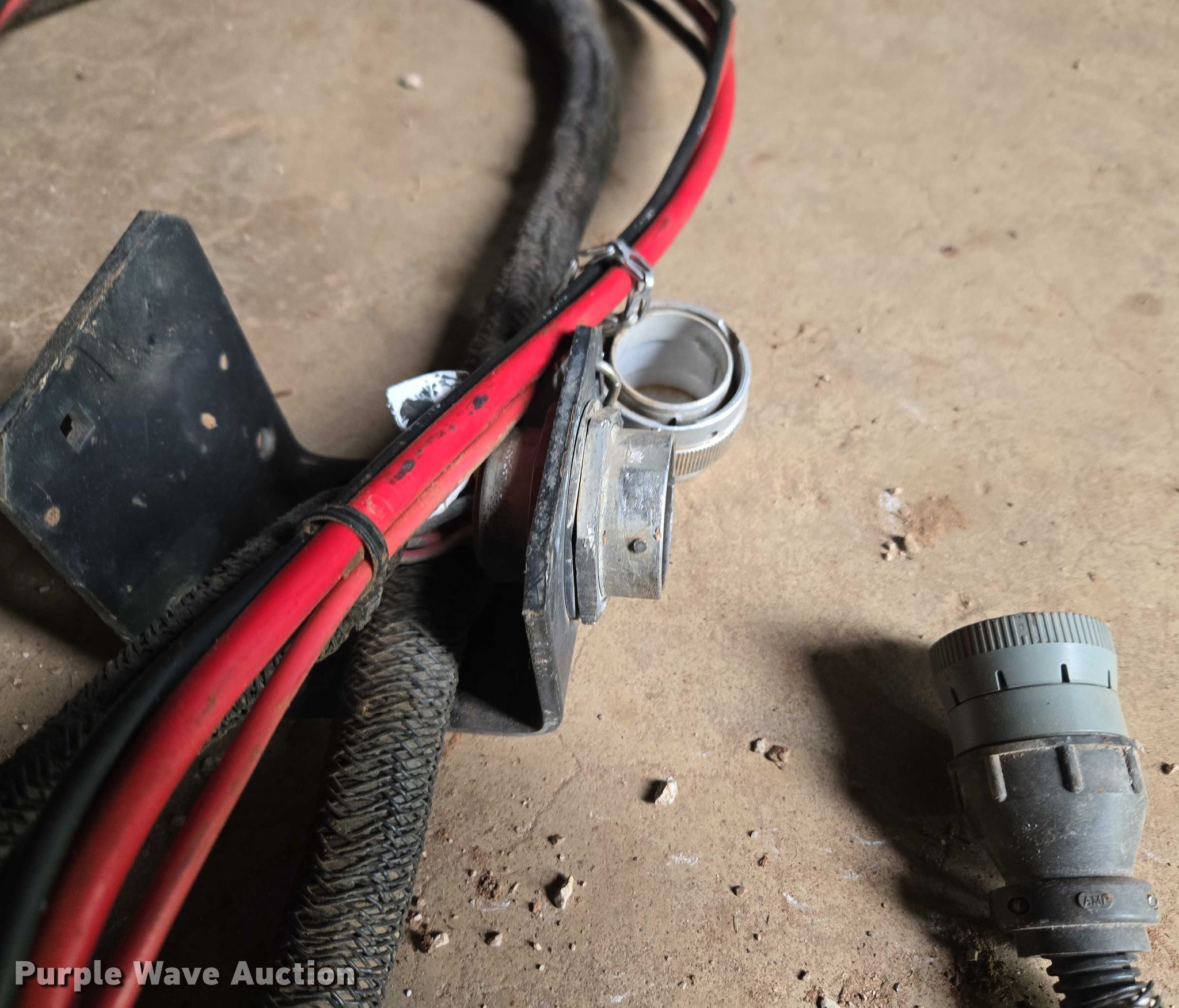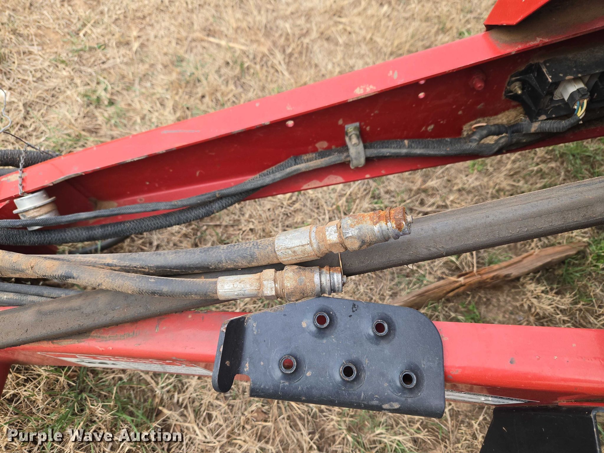 New Holland BR7090 round baler. Serial: Y8N036452, Insurance Salvage Unit Claim #: 5-815207. Features PTO: 1000, Monitor New Holland Bale Command Plus, Gauge wheels Size: 4.80-8, Pickup width: 7' 5", Bale size: 5' x 6', Net-wrap, Bale ramp. Tires Size: 480/45-17 IMP. Notes Fire damage, PTO half shaft missing, Non-operational unit. Oklahoma Farm Bureau Insurance. Douglas, OK 73733