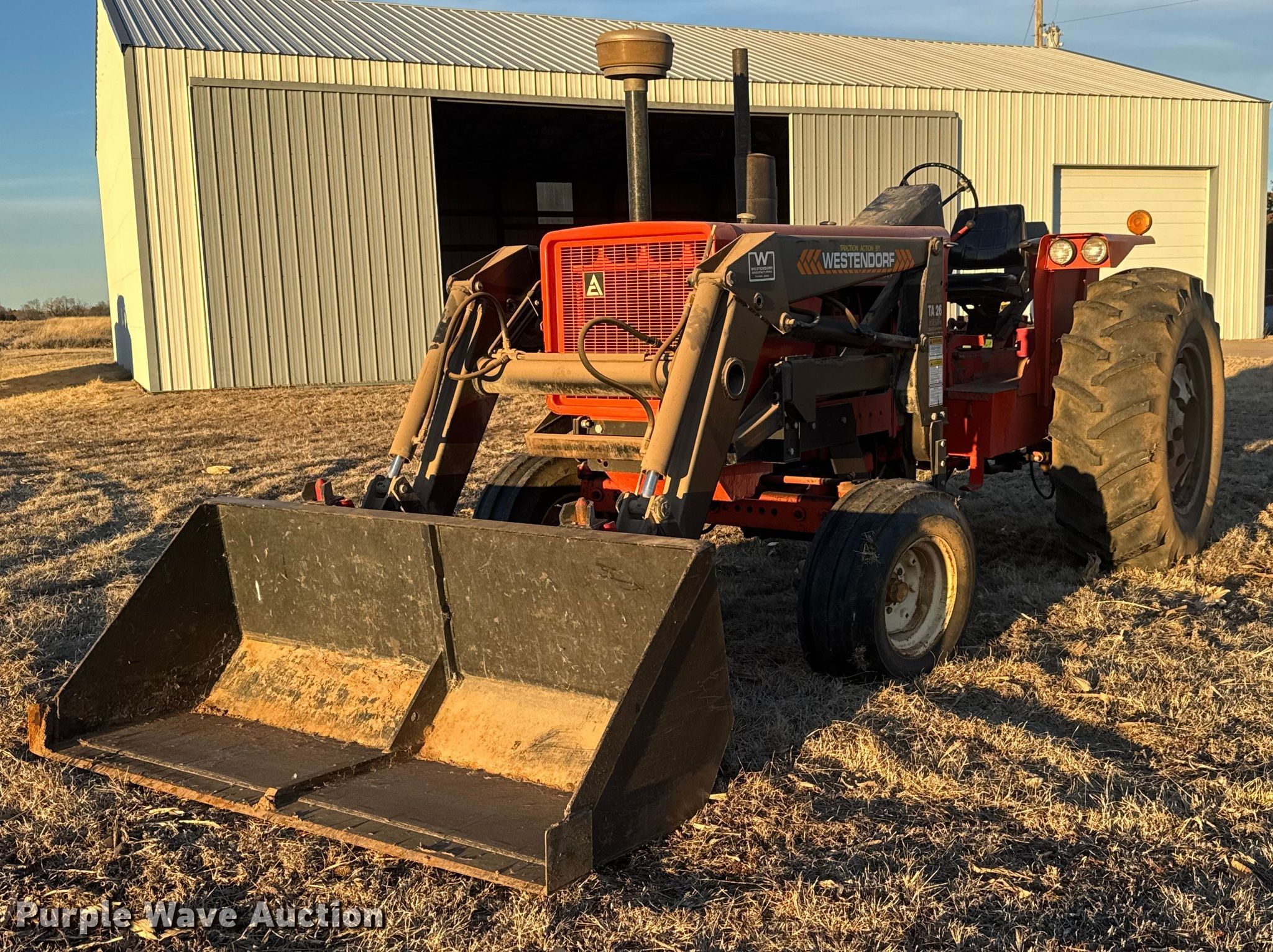 1975 Allis-Chalmers 185 tractor. Hours: 3,981 on meter, Serial: 1857203D. Engine Allis-Chalmers 2800, Serial: 4023216, Cylinders: 6, Fuel type: Diesel. Transmission Power director, 8F - 2R. Features PTO: 540, Three point, Hydraulic remote sets Rear: 2, Loader Westendorf TA 26, Controls: Two-lever, Bucket Width: 73".. Tires Front: 9.5L-15, Rear: 18.4-30, Wheel weights: 2. McDonald Services. Goddard, KS 67052