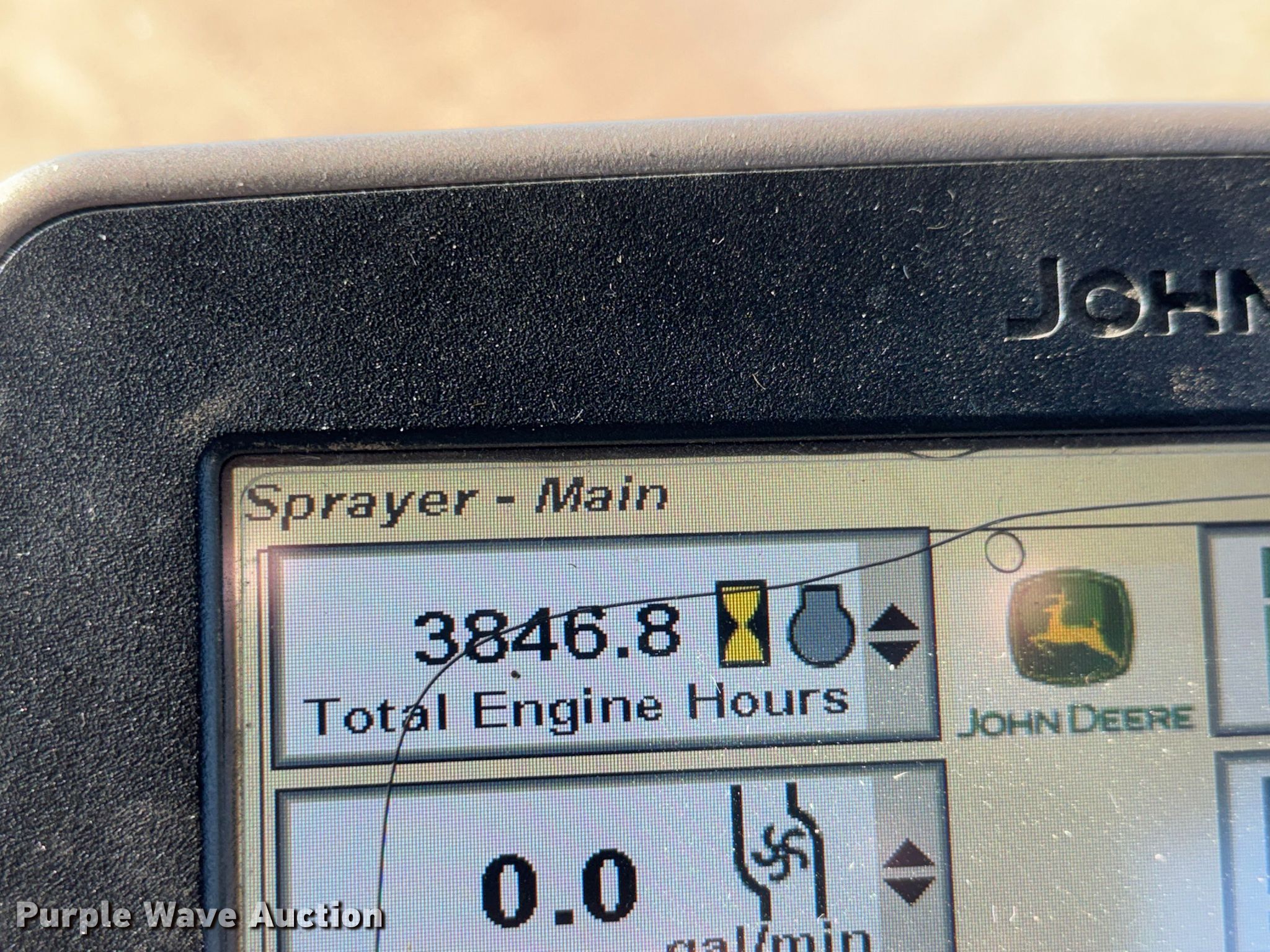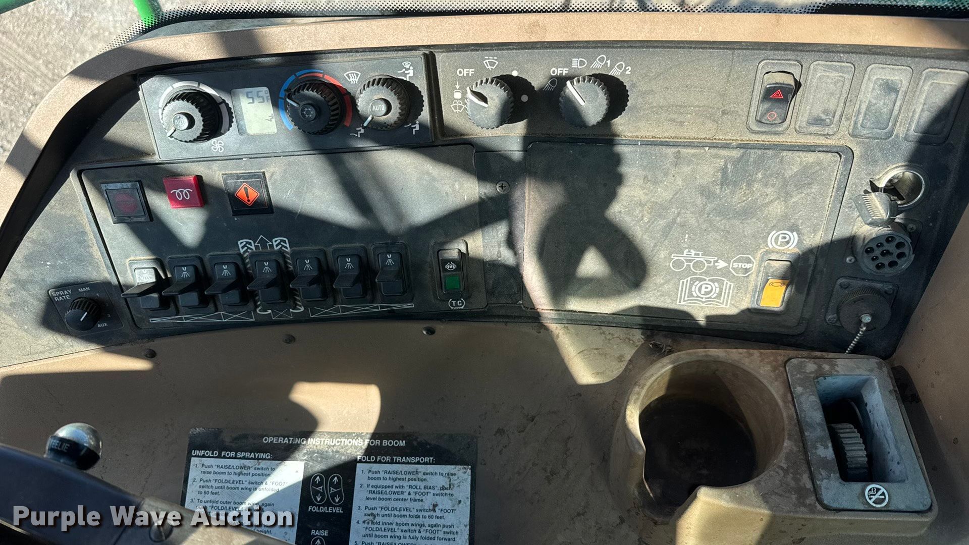 2009 John Deere 4730 sprayer. Engine hours: 3,849 on meter, Spray hours: 1,385 on meter, Serial: N04730X005896. Engine John Deere 6086HN053, Serial: PE6086L083181, Displacement: 6.8L, Cylinders: 6, Fuel type: Diesel. Transmission Hydrostatic. Operators station AC, Heat. Features Hydraulic ladder, Solution tank Capacity: 800 gallons, Type: Stainless Steel, Chemical eductor Type: Poly, Foam marker, Rinse tank, Clean water tank, Boom Width: 90', Hydraulic boom fold, Hydraulic height control, Automatic height control, Nozzle Spacing: 20", Nozzle bodies: 5-way.. Tires Size: 380/90R46, Row crop tires. Notes GPS Monitor not included, Vandalism damage, Owners manual, Unknown operating condition of Hydraulic ladder, Boom, Automatic height comtrol, Parts missing. Wellington, KS 67152