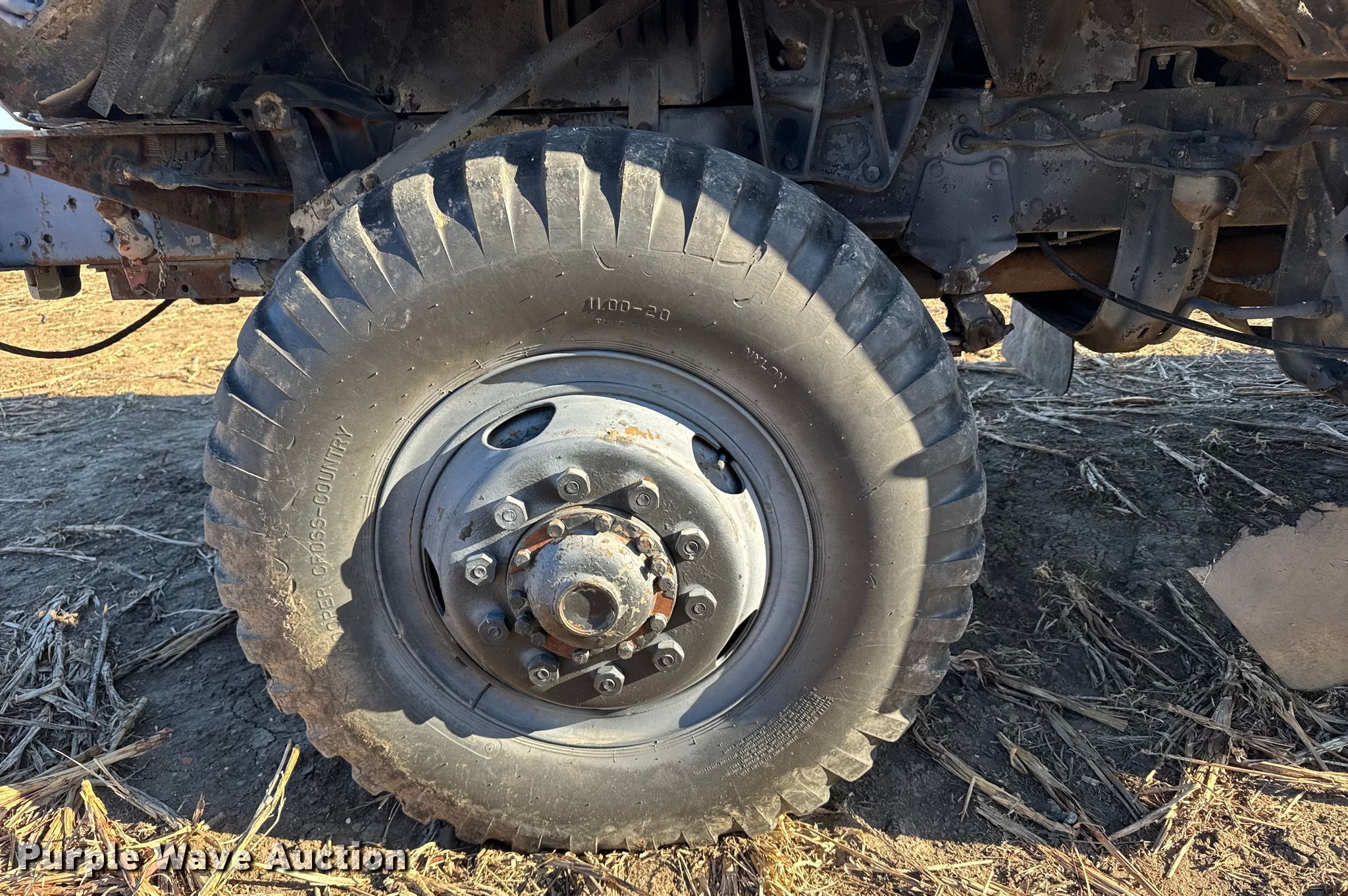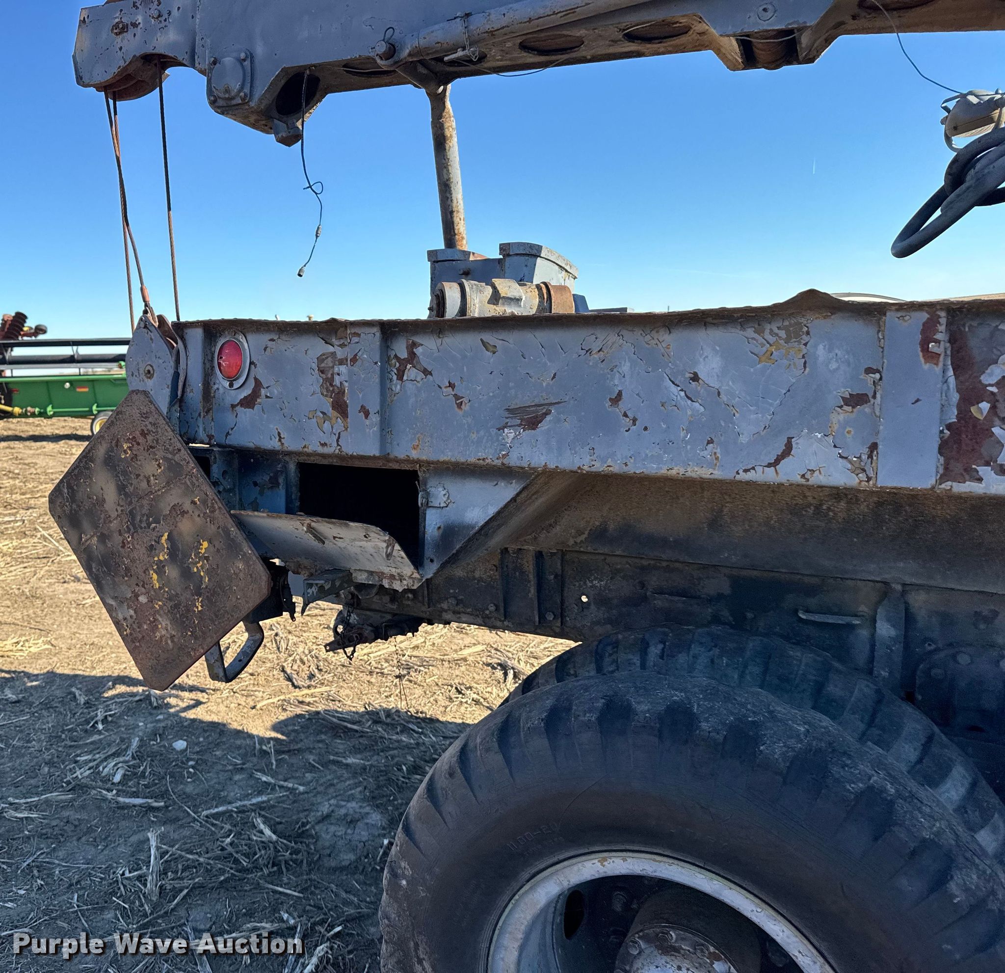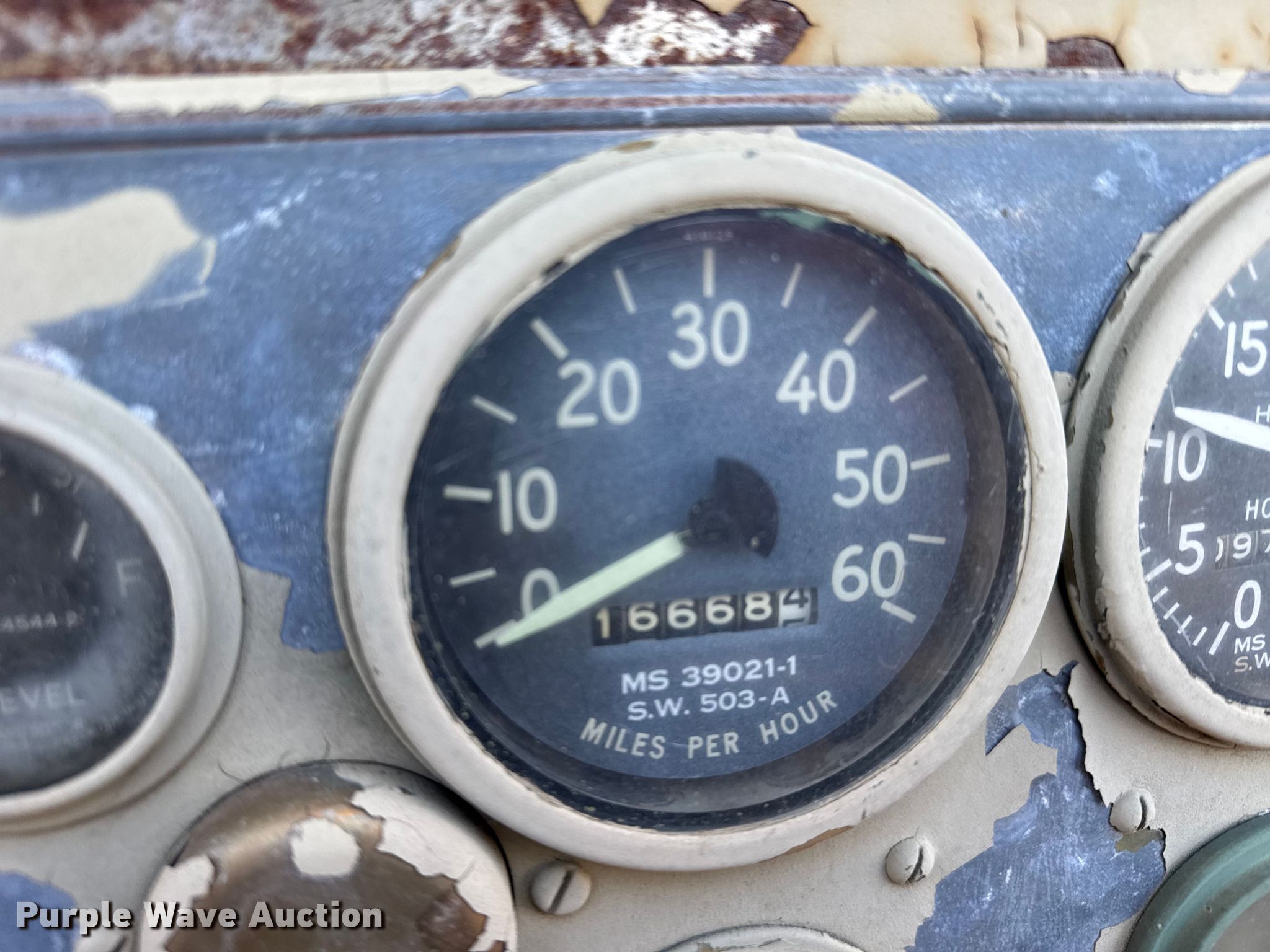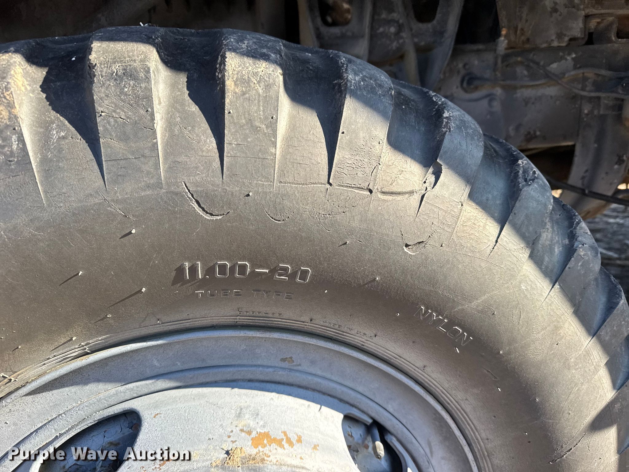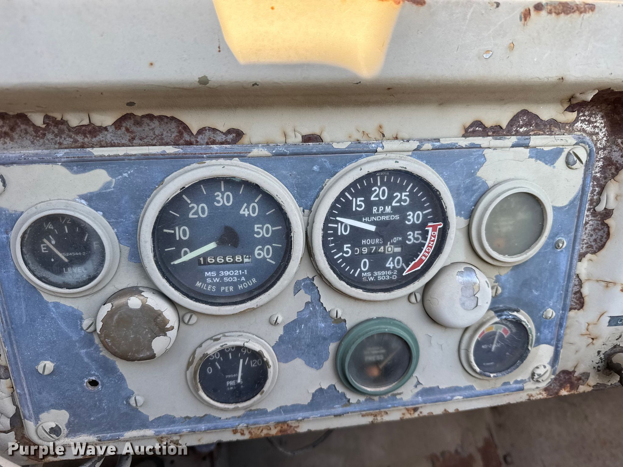 1953 IHC M62 tow truck. Miles: 16,668 on odometer, Hours: 974 on meter, VIN: 2954IHC. Engine Cylinders: 6, Fuel type: Gas. Transmission Manual, Speed: 5. Chassis Four wheel drive, Axles: Tandem, Suspension: Spring, Brakes: Air over hydraulic, PTO. Features Bed Wrecker bed, Length: 14', Width: 96", Wrecker boom: Hydraulic Rotator, Capacity: 20,000 lbs, Front winch Capacity: 20,000lbs, Rear winch Capacity: 45,000lbs.. Tires Size: 11.00-20. Notes Batteries not included, Fuel system issues, fuel tank disconnected Plastic auxiliary tank included, Unknown operating condition of rotator. Kansas antique title. Title distribution may be delayed up to 14 days from verification of funds. J. C. Finney Co.. Beloit, KS 67420