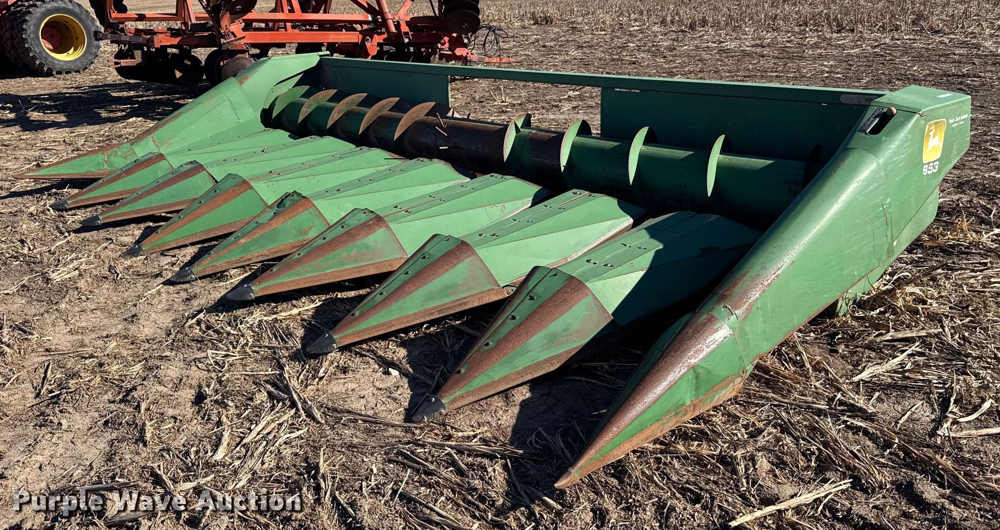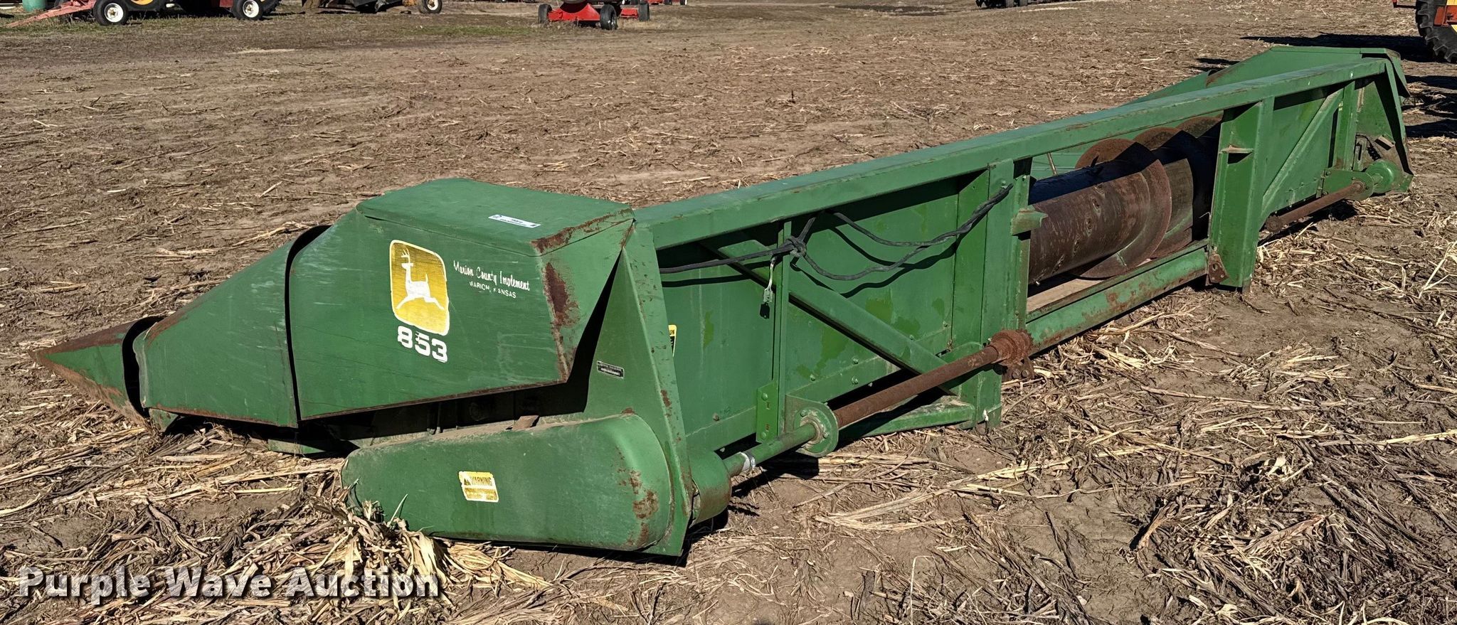 Purple Wave is selling a used Corn or Row Head in Kansas. This item is a John Deere 853 all-crop head with the following: Serial: 347401H